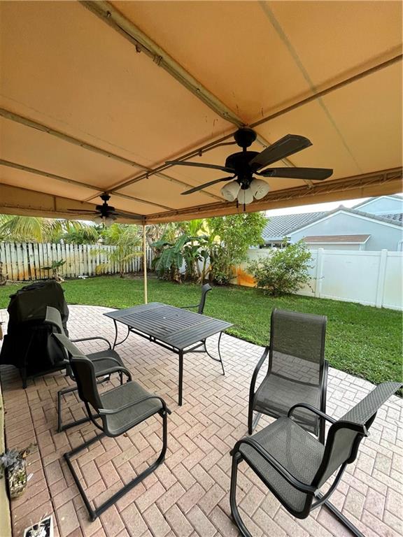 This elegant single family home boast 4 large bedrooms 2 & 1/2 bath and 2 car garage. Largest model in highly desirable family-oriented Kensington subdivision. Enter foyer through your double door and to the right is your formal dining room and to the left is your formal living room. One glance at the towering ceiling in both living and dining room offers rich natural light and certainly provides for a much cooler home. Kitchen has a gorgeous island with granite countertop and stainless-steel appliances. Having the wet bar and the defined family room create that perfect balance for casual setting. Step out to the patio and enjoy the big backyard which has plenty of room for a pool. Ceilings are too high? no worries, the home has all impact windows so no need for ladder during hurricane.