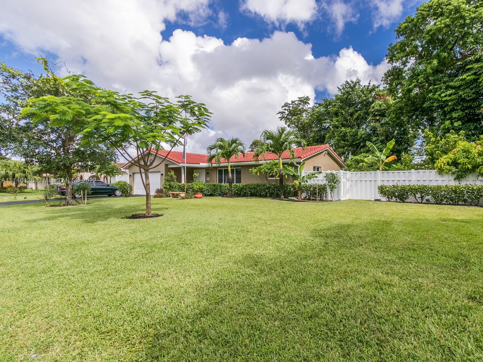 Beautiful Single Family Home in the highly desirable area of Ramblewood. NO HOA! This house is the pride of its owner. Freshly painted inside, no carpets, ceramic and laminate floors, A/C and Water Heater 2020, impact windows 2015, Gutters, washer and reface pool 2021, flat roof 2019, Pool pump, dryer, flag pole and Impact front door 2017, shutters, PVC white fence 2019, water sense toilets 2018, dimmers lights. Lots of fruit trees, large enclosed patio, pool, split floor plan. Close to restaurants & shopping include The Walk & Coral Square mall. Very central Coral Springs location close to major highways and public schools & transportation.
