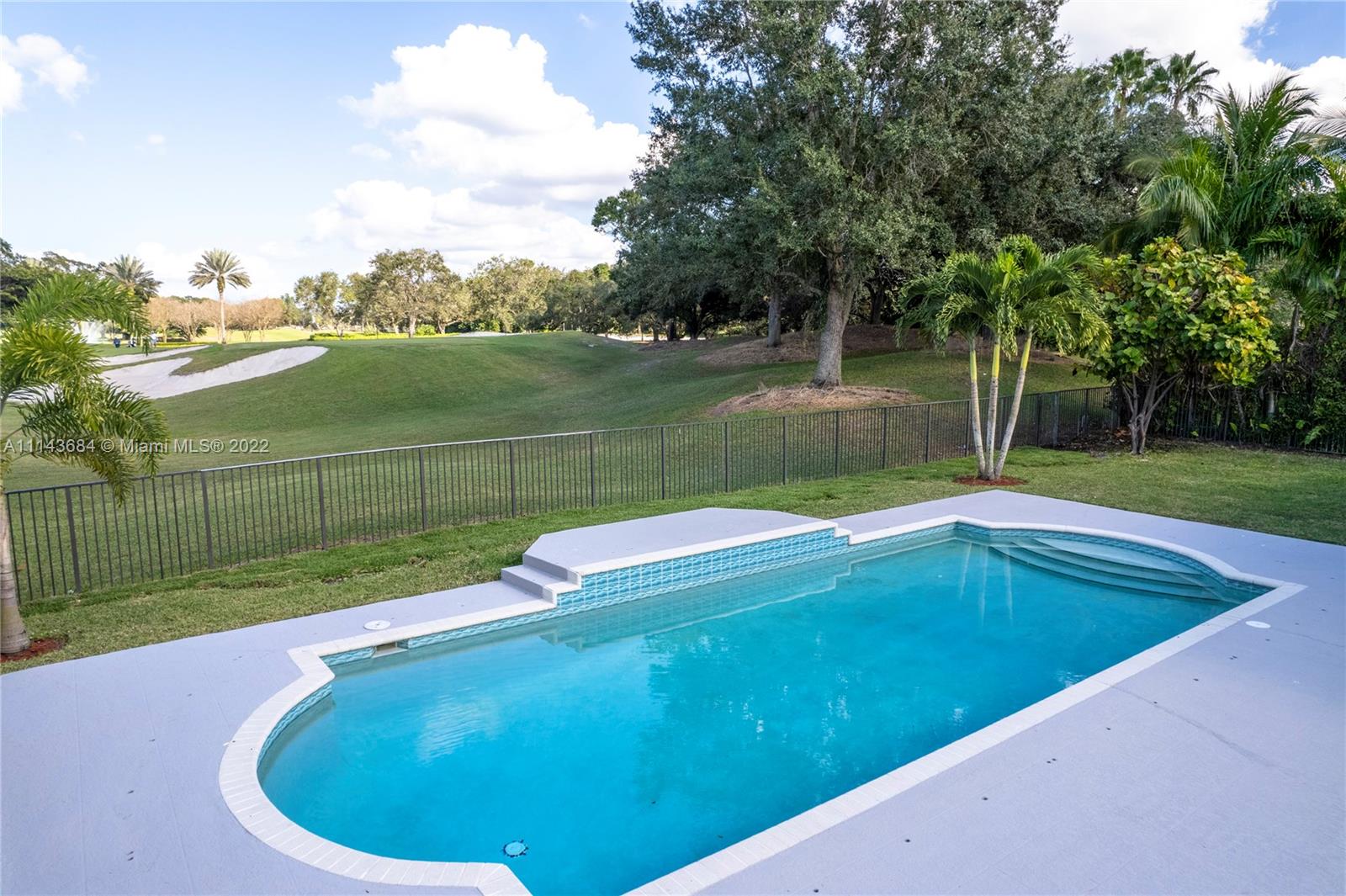 This Spectacular Spacious Updated Golf View home inside the Weston Hills Country Club overlooks the 11th Green on the Tour Golf Course and is located on a cul-de-sac. This home features 4 bedrooms, 4 1/2 Bathrooms PLUS an office AND a 3 car garage on an oversized fenced lot with a very large pool/patio area. BRAND NEW ROOF, NEW WATER HEATER, NEW STAINLESS STEEL DOUBLE OVEN, NEWER WASHER AND DRYER, NEW TRASH COMPACTOR, and NEW DISHWASHER. All windows have accordian shutters. There is modern white/grey marble floors throughout the main area of the home with high volume ceilings. The open high ceilings with a triple split floor plan is a perfect setting with a lots of space. This home will not last! Please text listing agent or call. Open house will be held Saturday and Sunday 1-3.