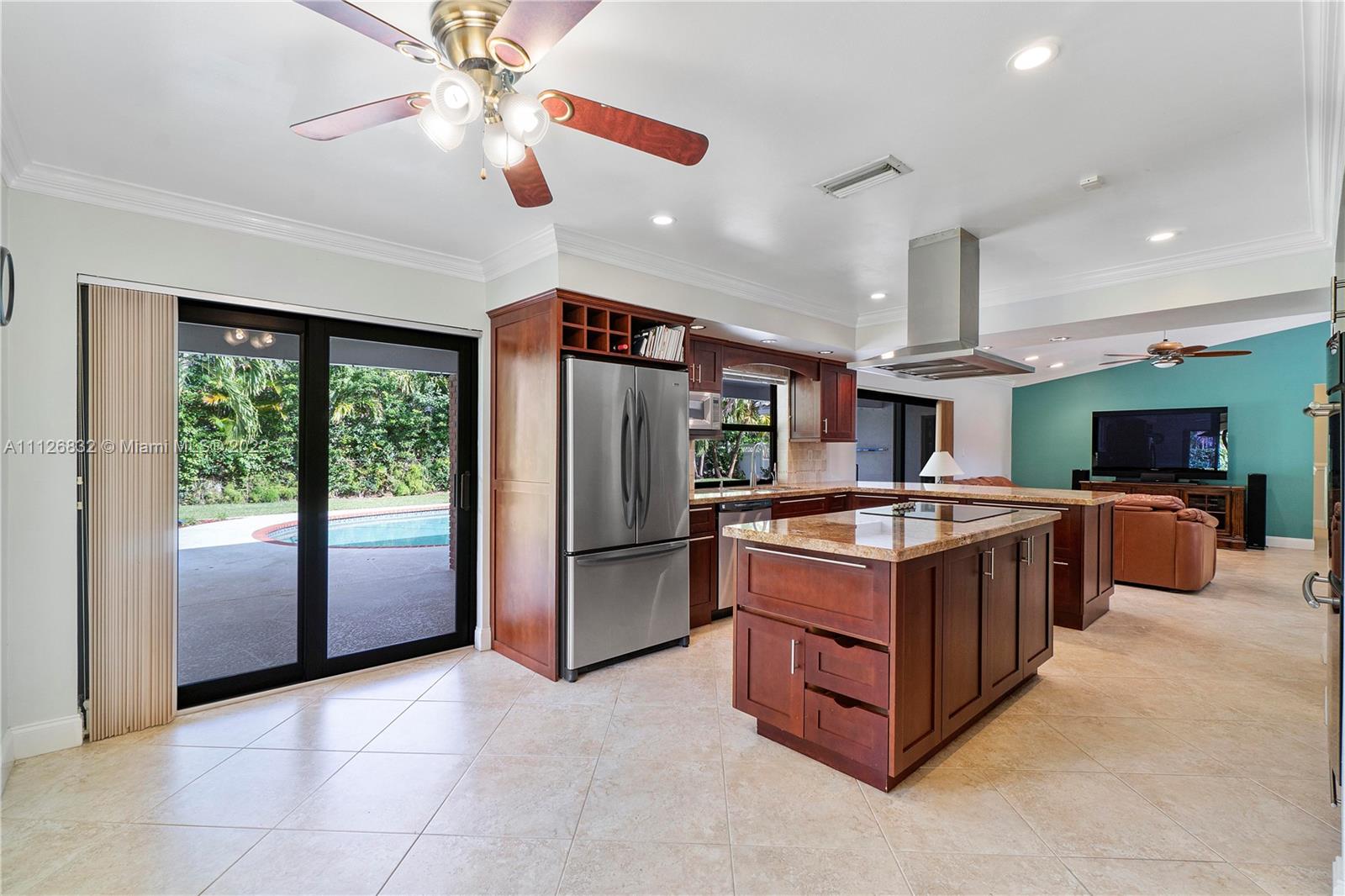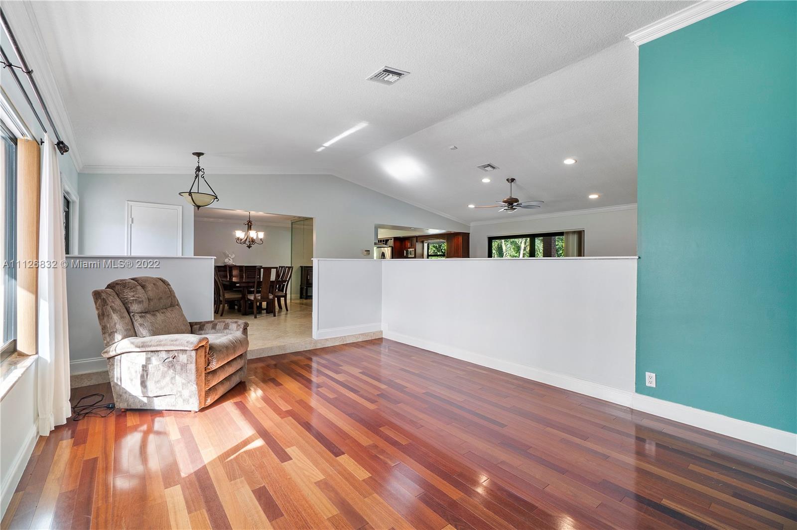Beautiful home in highly desirable Shadow Wood neighborhood on 1/4 acre lot! Enjoy the serenity with mature trees, lakes and walking paths! Features Impact windows, entry & sliding doors! Beautifully updated kitchen with lots of cabinets, granite counter tops, island style cook top, double wall ovens, microwave and stainless steel appliances. Formal dining room, formal living room with engineer wood floors, all bedrooms with laminate floors & built-in custom cabinets in closets. All living area with large diagonal tiles. Exterior features circular driveway, meticulous landscaping, privacy fenced backyard, freestyle pool with access to cabana bath and an extended patio area, great for grilling & outdoor entertainment! Great schools, Mall and highways all in close proximity! NO HOA!!