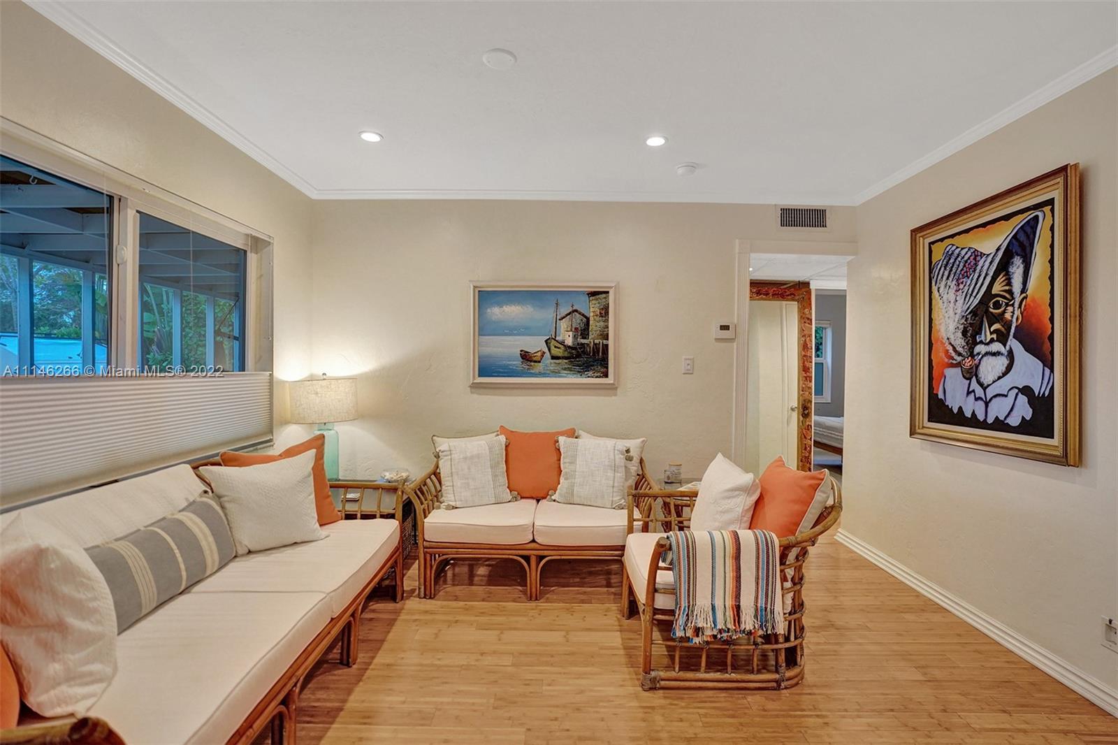 Wow! This is a true Florida home! Beautifully updated 4 bedroom 2 bath single family home with 1 car garage in hidden gem area Holland Sub! The home features Bamboo flooring in the main living areas. Kitchen has white cabinets, wood counter tops, pebbled back splash, Island and stainless steal appliances. Living area and Family/dining area w/shelving! Huge master suite w/updated master bathroom. Sizable secondary bedrooms w/carpet. Updated second bathroom! Impact windows & doors throughout! Roof 2014! Newer plumbing & electrical! Screened in front porch! Sizable backyard w/tropical feel and storage. Close to major highways, restaurants, beaches and tons of entertainment.