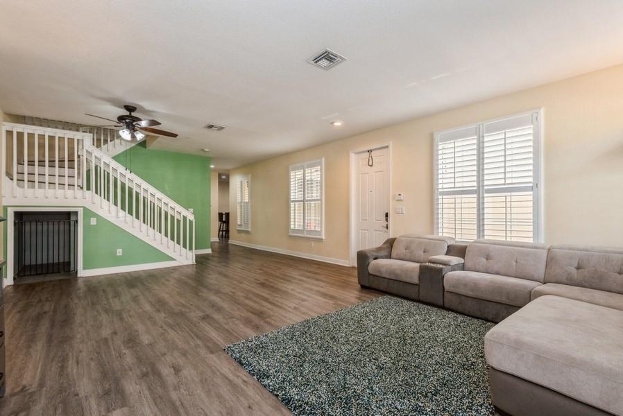 4 bedrooms, 3 bathrooms with a loft, desired location, a place to call home. This spacious home boasts, hurricane impact glass windows /doors and a custom kitchen with Granite counter tops, stainless steel appliances, and extra cabinets. Plantation shutters on all windows and so much more. Murphy bed included in guest room/office downstairs. Many amenities including a fitness center and community pool. Good proximity to highways, restaurants and shopping. Pet-friendly community.