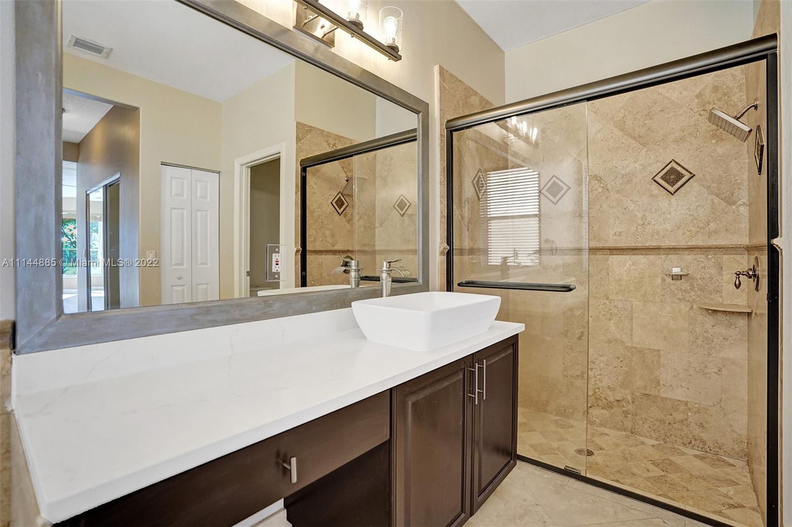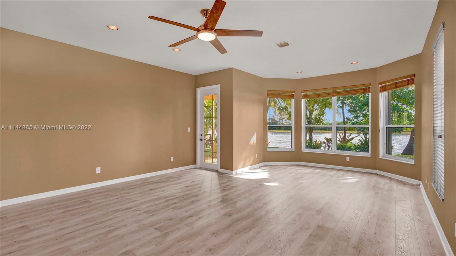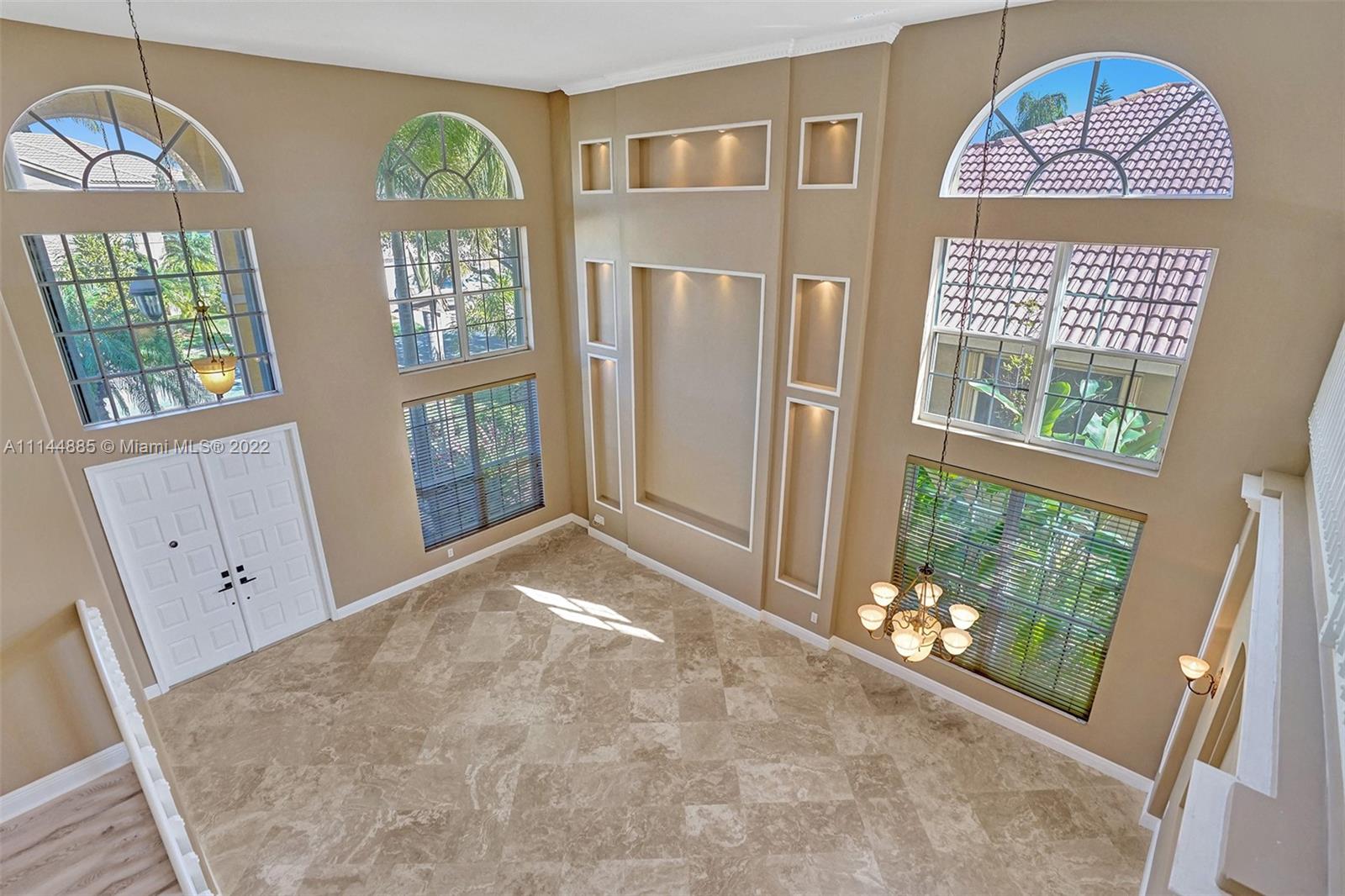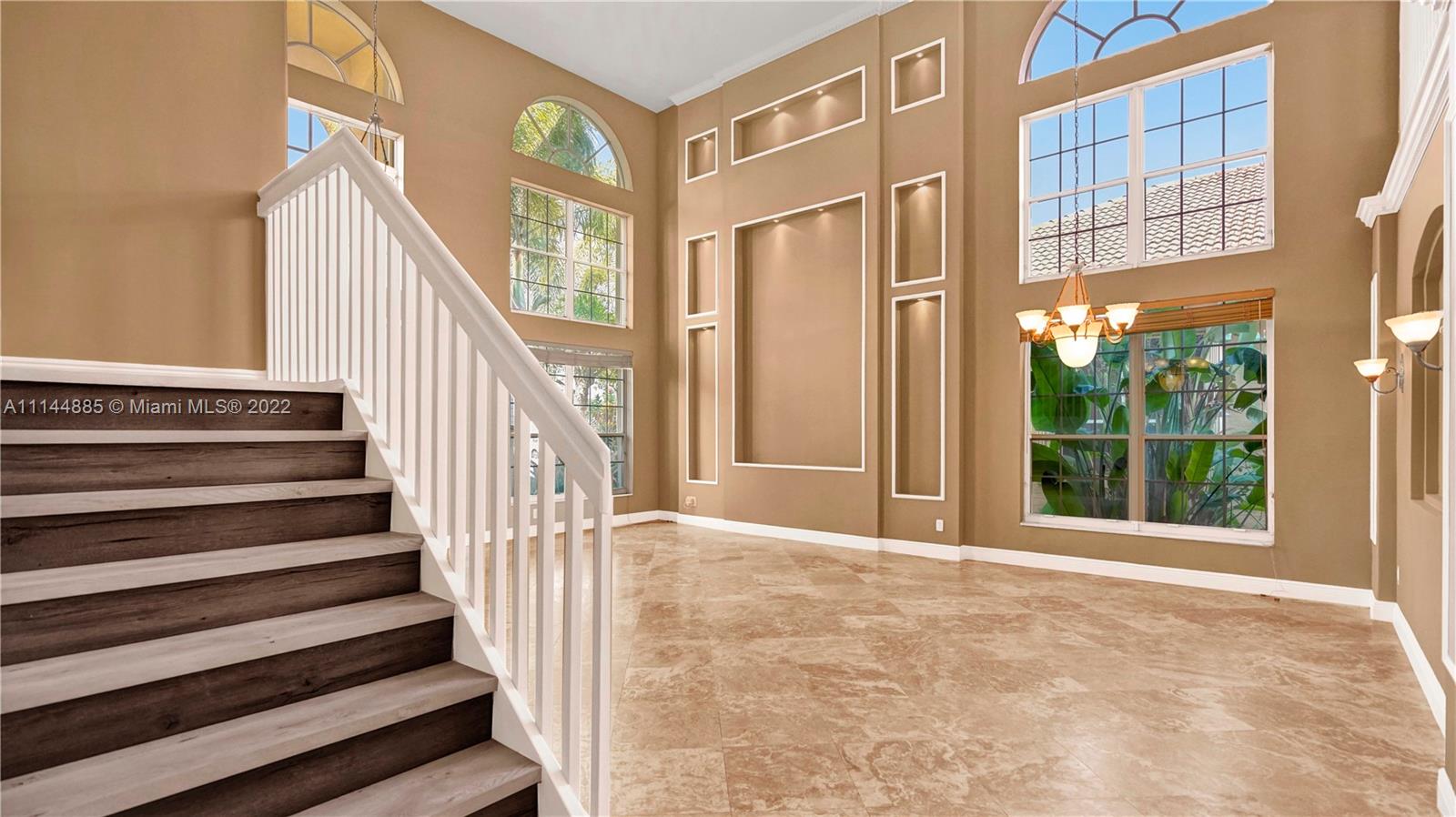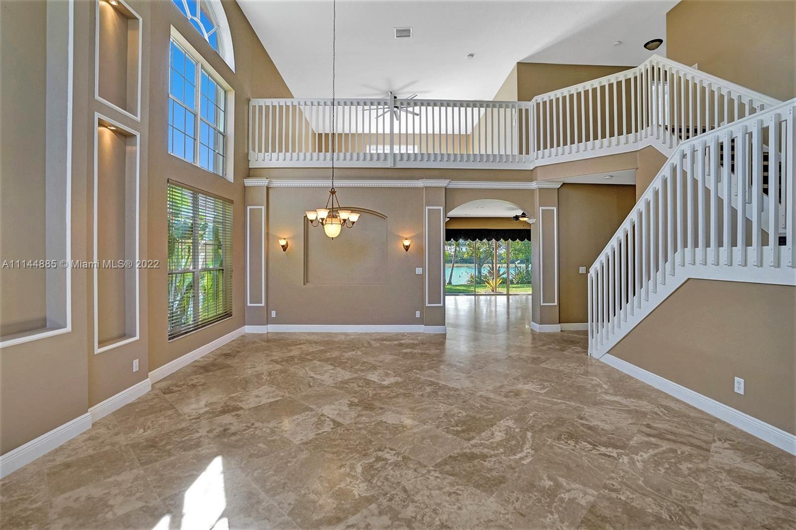 Spectacular Waterfront home that greets you with 23ft Vaulted Ceiling, Grand windows, Lighted Accent wall and Travertine floors! Beautifully upgraded to include fresh paint, Recessed lighting, Brand New Flooring, lighting fixtures, Ceiling fans, Washer/dryer and Water Heater! Includes large Loft and 1st floor Master bedroom. Every room except one, overlooks the lake! All bathrooms remodeled with Marble/Quartz countertops, Travertine/Porcelain tiles, Vessel sinks and Wood vanities. Entertain guests in the open living areas and spacious kitchen that features Slate appliances, Granite countertops, wood cabinets and Breakfast nook. Relax in your own tropical oasis, with picturesque lake views and sunsets from the covered patio or balcony. Do not miss the opportunity to own this stunning home!