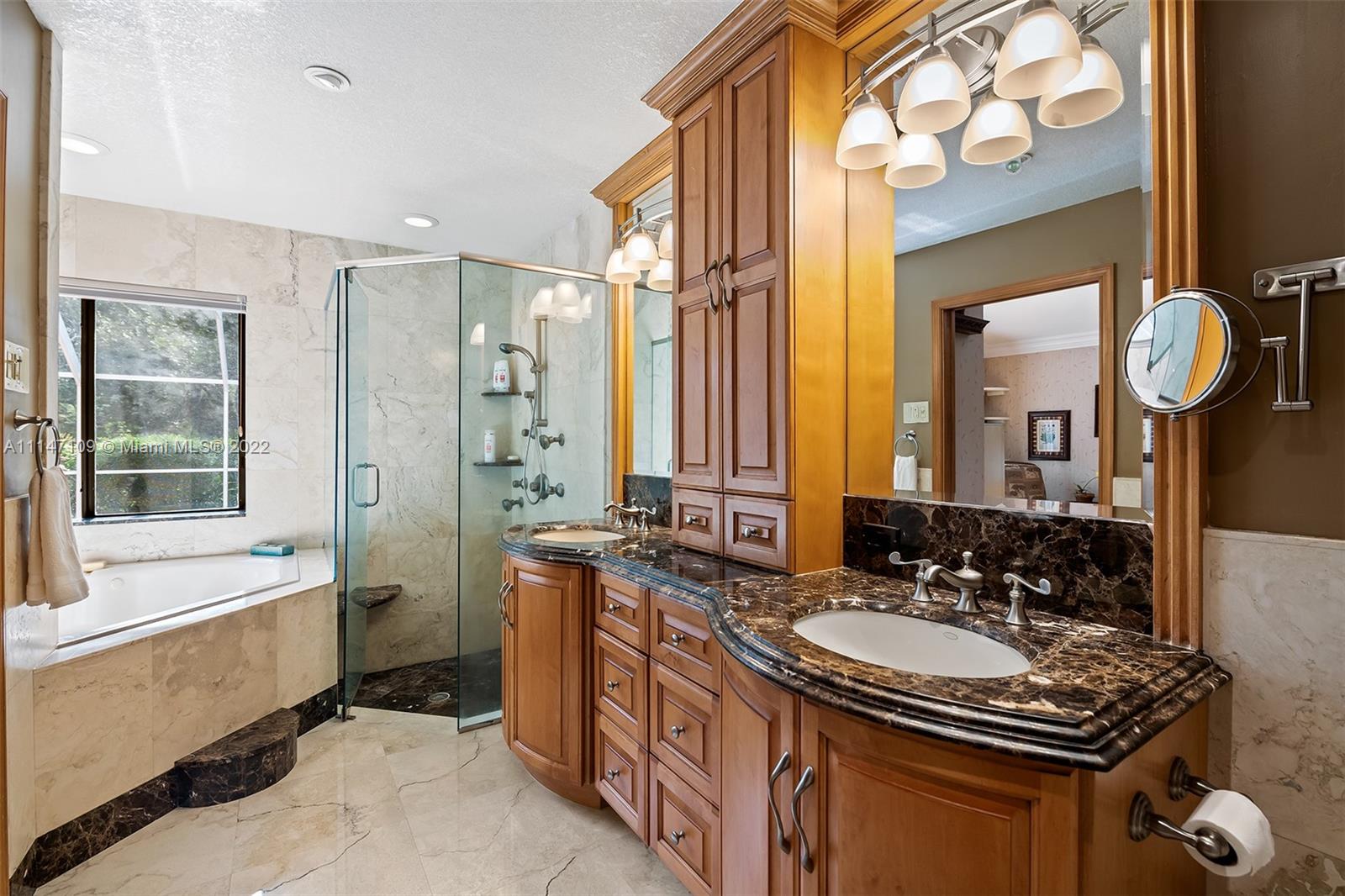 This tranquil and secluded 4 bed 3 bath home is a literal sanctuary, dominated by live oaks & slash pines creating a private oasis on over a quarter acre! Enjoy a split floor plan with volume ceilings & space for entertaining in the formal living room or family room. The master bed includes a marble encased bathroom & spa, perfectly situated to soak among bubbles with a peaceful view of the forest. The kitchen is modern & efficient with granite countertops & SS appliances. In addition, the guest bed has a cabana bath for your convenience. The home includes impact windows & accordion shutters throughout. Walk outside to a lushly landscaped backyard with trails that lead to Tree Tops Park, Pine Island playground & 174 miles of interconnected trails for biking, hiking & horseback riding.