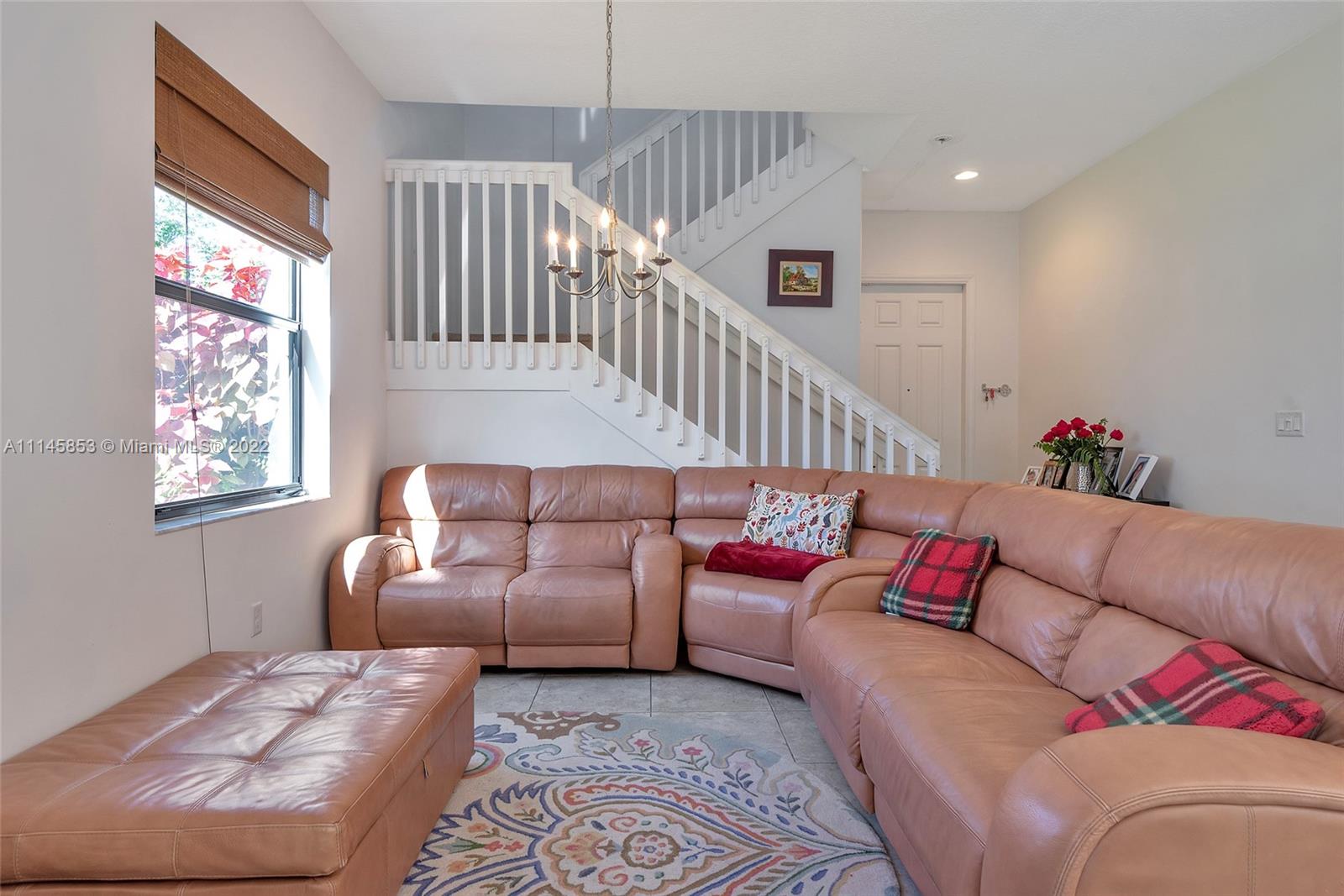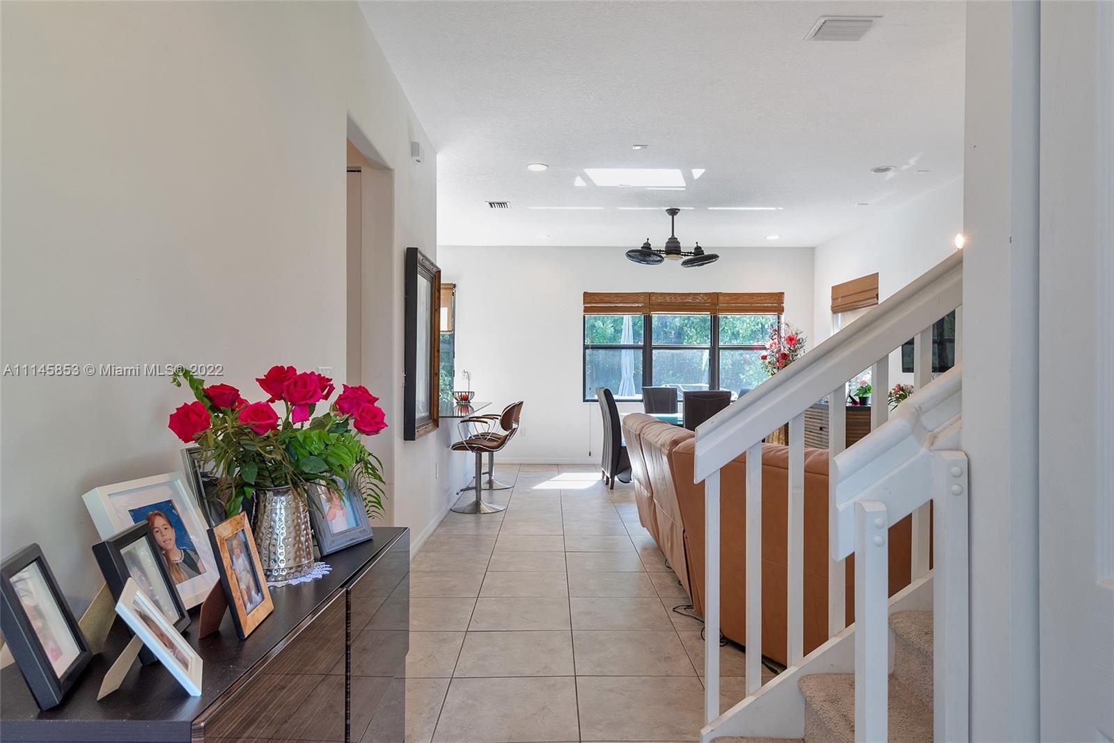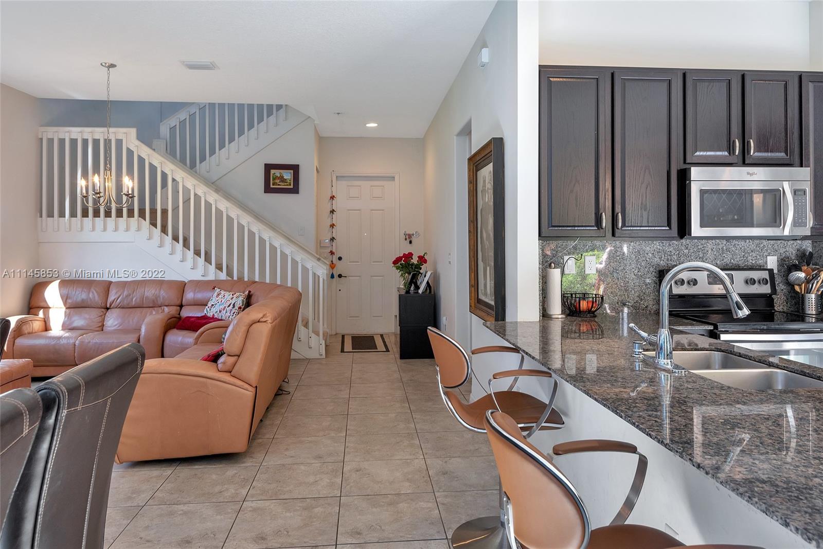 Come fall in love with this charming house completed in 2014 located in Waterview, Miramar, FL. The property is located in a gated community close Miramar High School, main roads (Turnpike, University Dr & Pembroke Rd) featuring 3 Bedrooms & 2.5 Bathrooms, 1700 SQFT of living area, 10 Ft Ceilings, located on the biggest lot (6000 SQFT approx) of Waterview with lots of privacy and room for kids play area next to house, stainless steel appliances, wood cabinetry, granite countertops, beautiful window treatment, 1 car garage & a brick driveway for 2 cars. Possible enclosure and enough space for splash pool. Waterview offers 24 hours security & pool. Furniture negotiable but not included in price.