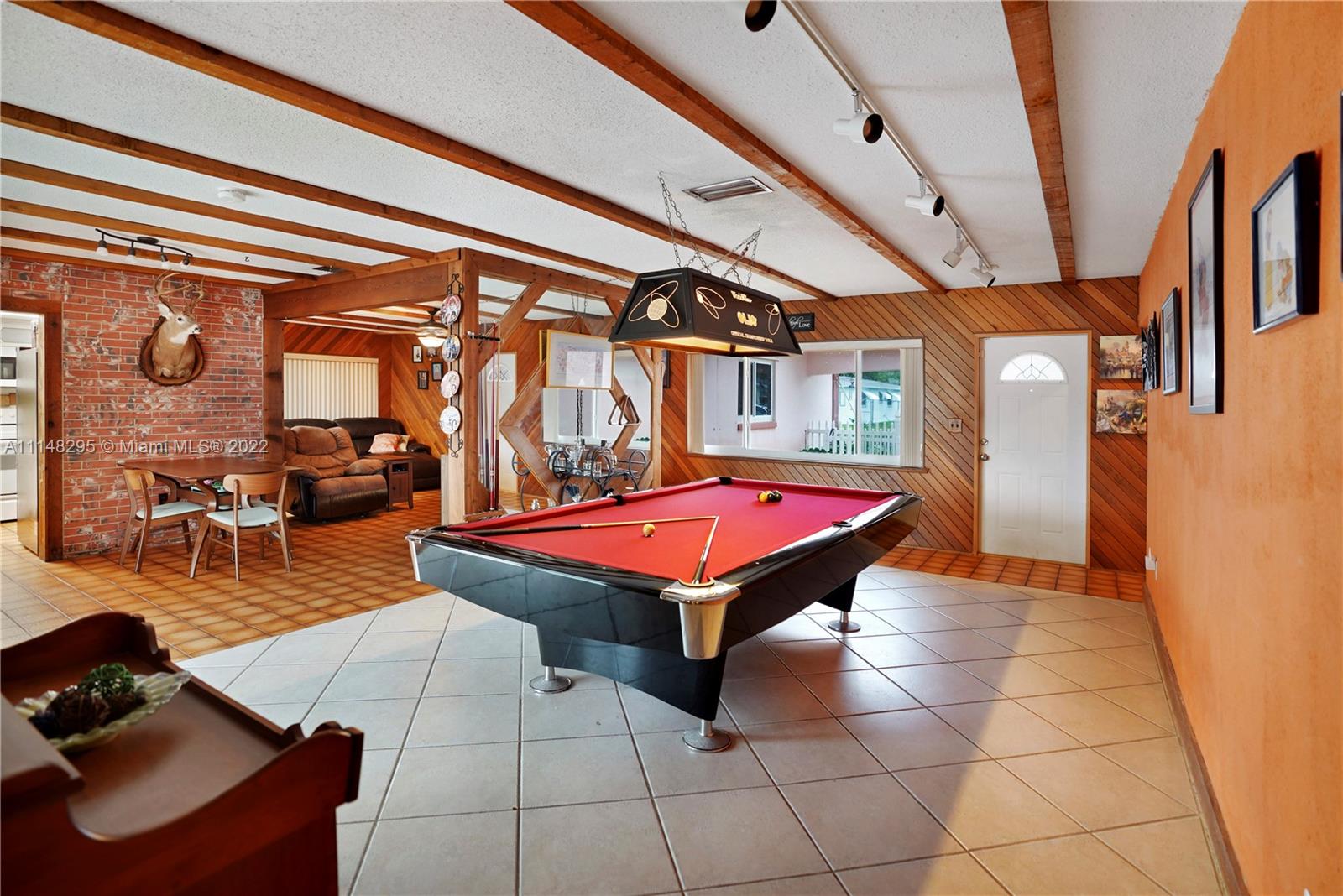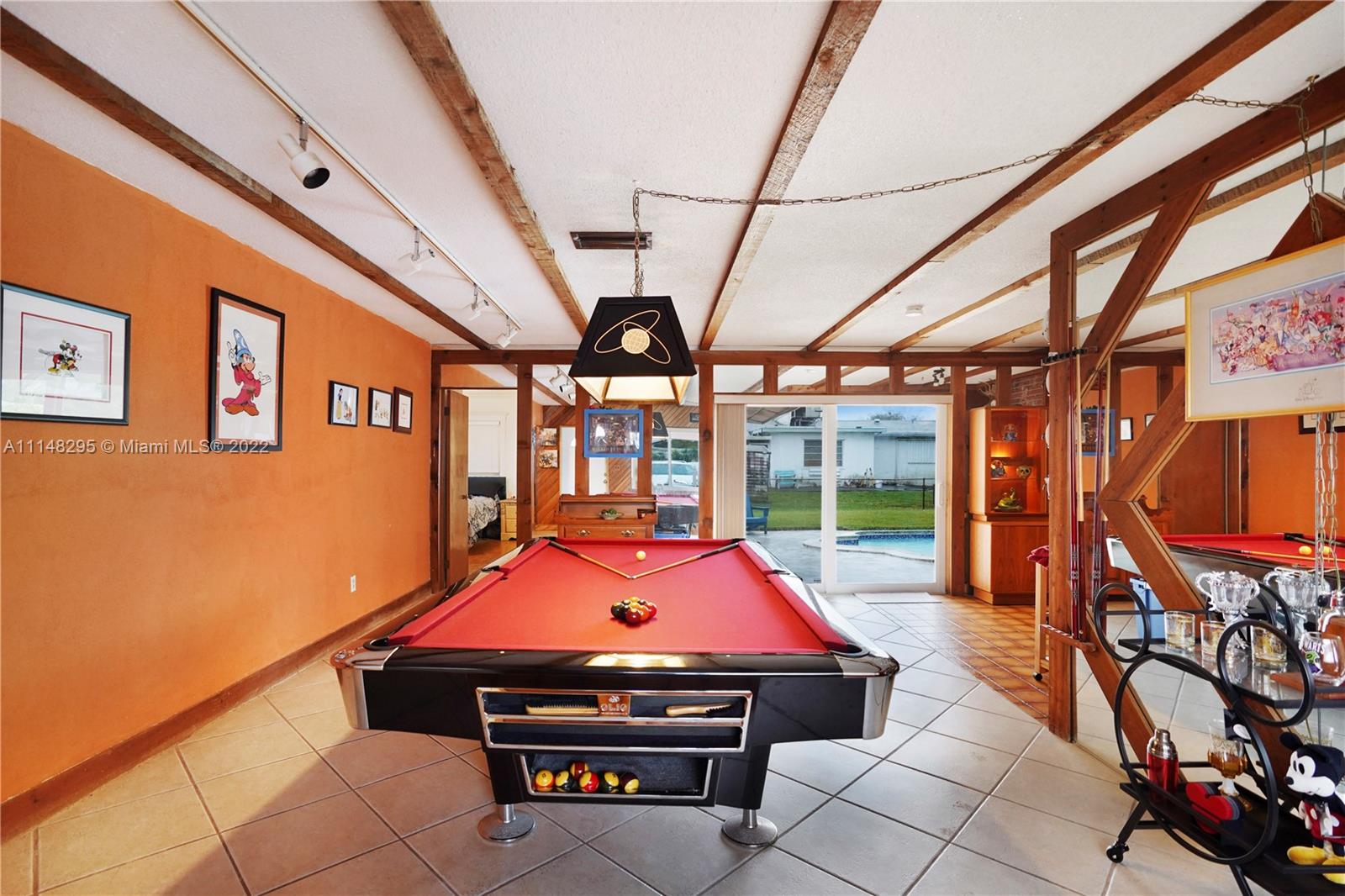Rarely available in this area! This single family, three bedroom, 2 bath pool home has a two car garage, a 10,000+ square foot corner lot, a new roof and impact windows! Enjoy shooting pool with custom billiards table and light. The circular driveway has room for plenty of visitors. Conveniently located close to all major highways, The Hard Rock, Broward College, parks, schools, shopping, and dining.