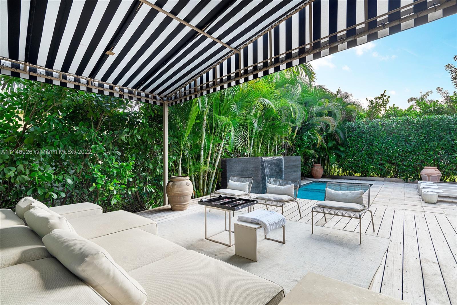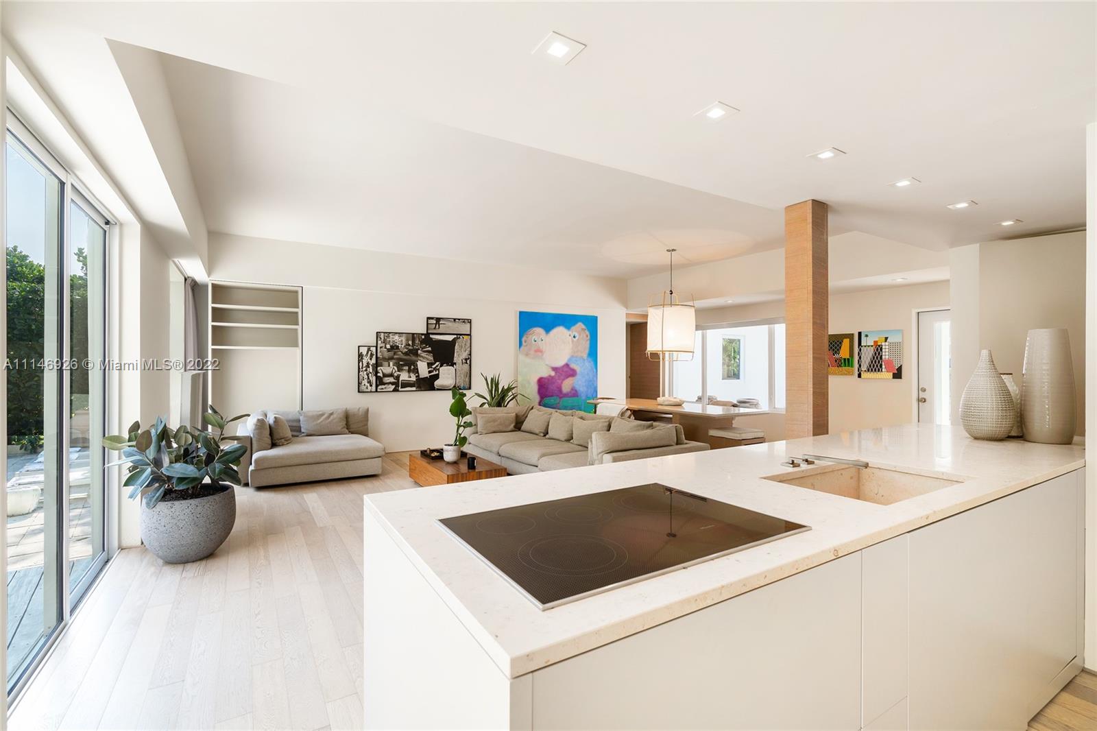 Enjoy modern finishes in this renovated 3BR/3BA Villa in the heart of Miami Beach. Features include: Italian oak floor or Marmorino, cooking island kitchen with stainless steel appliances, open living/dining area, principal suite with direct access to the outdoors, home automation lighting system, large backyard w/ heated saltwater pool with cascade waterfall, wooden deck, outdoor dining area, lush high hedges for ultimate privacy. This villa offers the best of Italian design and manufacture. Every detail is tailor-made by Italian artisans with a meticulous choice of materials.
