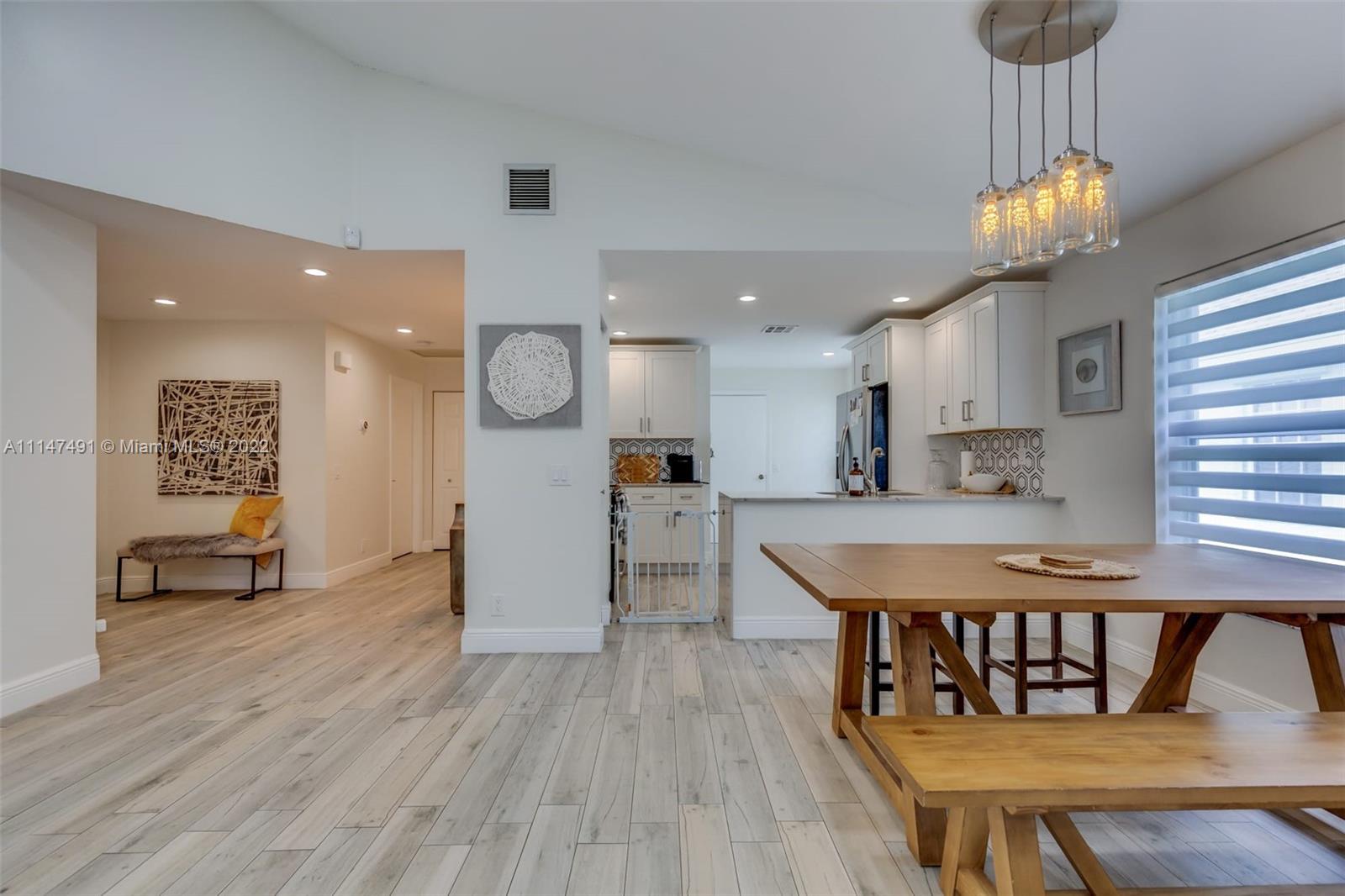 Beautiful turn-key single-family home located in the sought-after Forest Ridge Davie community. The home features a stunning renovated open-concept kitchen with white shaker cabinets, marble backsplash, waterfall countertop and stainless-steel appliances. Updated tile wood plank flooring, vaulted ceilings and recess lighting create a bright and welcoming space. Split bedroom design offers a spacious primary bedroom with walk-in closet, exquisitely finished ensuite bathroom with dual sinks. Energy efficiency has been prioritized with a new washer, dryer and smart thermostat. Outdoor living is elevated with a large, screened-in patio and private fenced-in yard. Conveniently located minutes away from NSU, shopping, dining and highways. Low HOA, amenities include community pool and many more!