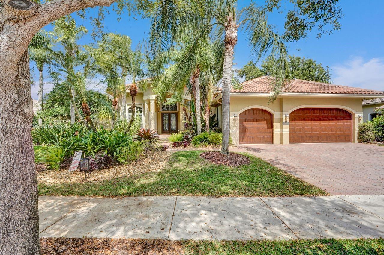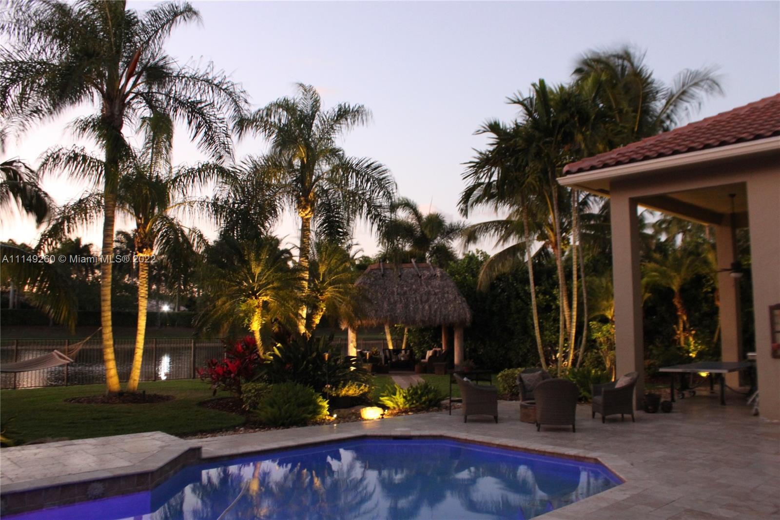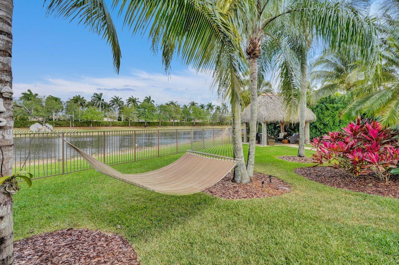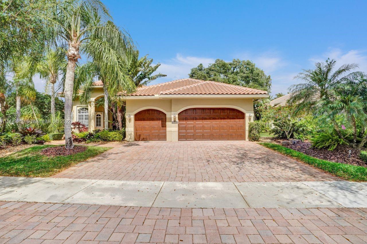 Fabulous 5 bedroom/5 baths home on a 1/2 acre estate in Pelican Landing that shows like a true model home. Grand entry with beautiful lush landscaping. Look no further this home is in impeccable condition with newer roof, updated bathrooms, remodeled gourmet kitchen w/ newer appliances, wood flooring in bedrooms, newer AC, finished garage by Garage Wall with impact door, accordion shutters, plantation shutters and more. Large master suite with his & hers master baths. Majestic raised foyer with views to pool and lake. Huge backyard is a dream come true with newer salt chlorinated pool and spa. Tiki hut overlooking tranquil lake views with sunsets. Premier community in Weston. Will not last! some furniture stay and No appraisal contingemcy.Kichen remodeled 2017. New roof 2017.