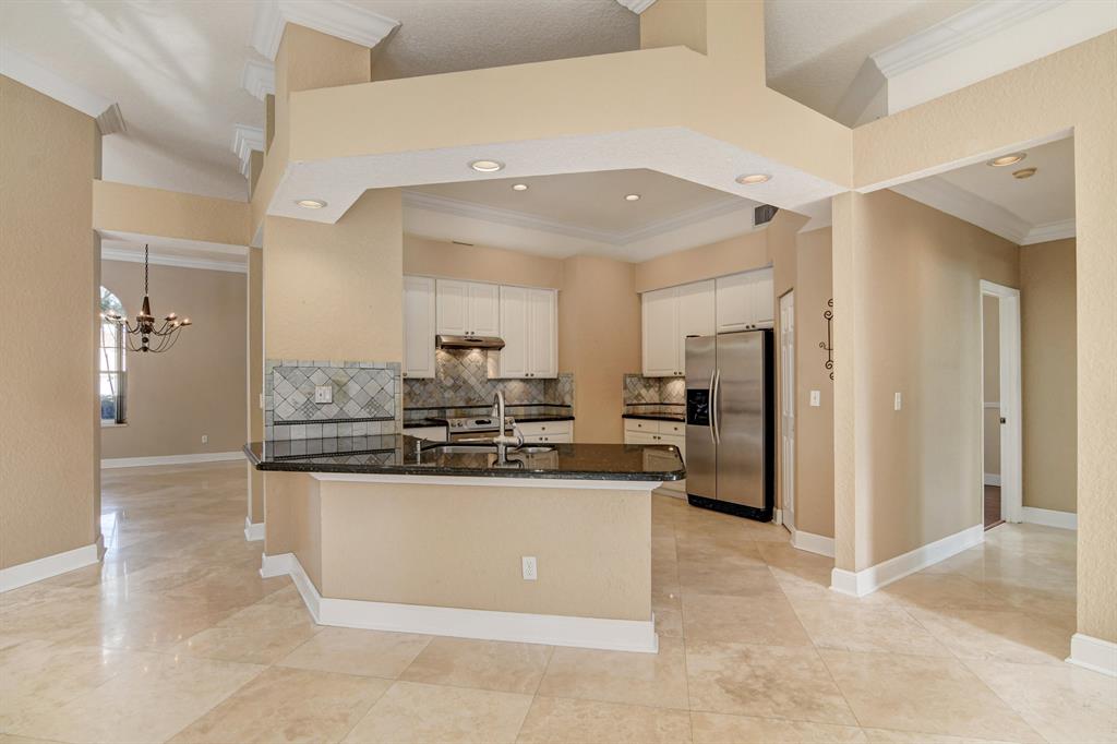 Well-appointed single-story home located in the beautiful neighborhood of Boca Vista Estates. This bright 4-bedroom 3-full bathroom home features gorgeous Saturnia marble flooring in all the main areas and floating wood flooring in bedrooms. The kitchen features newer stainless-steel appliances, walk-in pantry, and granite countertops. The open kitchen extends into the family room and informal dining with views of the tropical backyard and pool area which is fenced in for privacy. The primary suite features French doors opening to the garden, pool, spa and covered paver patio, 2-walk-in closets and an ensuite primary bath with 2 vanities, water closet and separate bath and shower. Access the tropical garden, pool and spa from the family room, living room and primary bedroom.