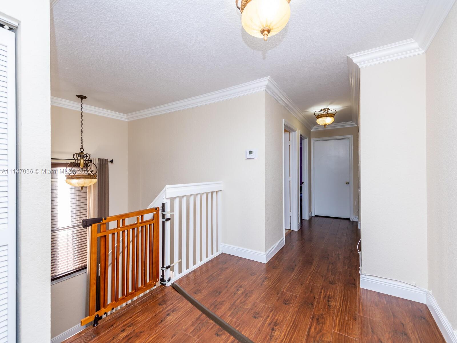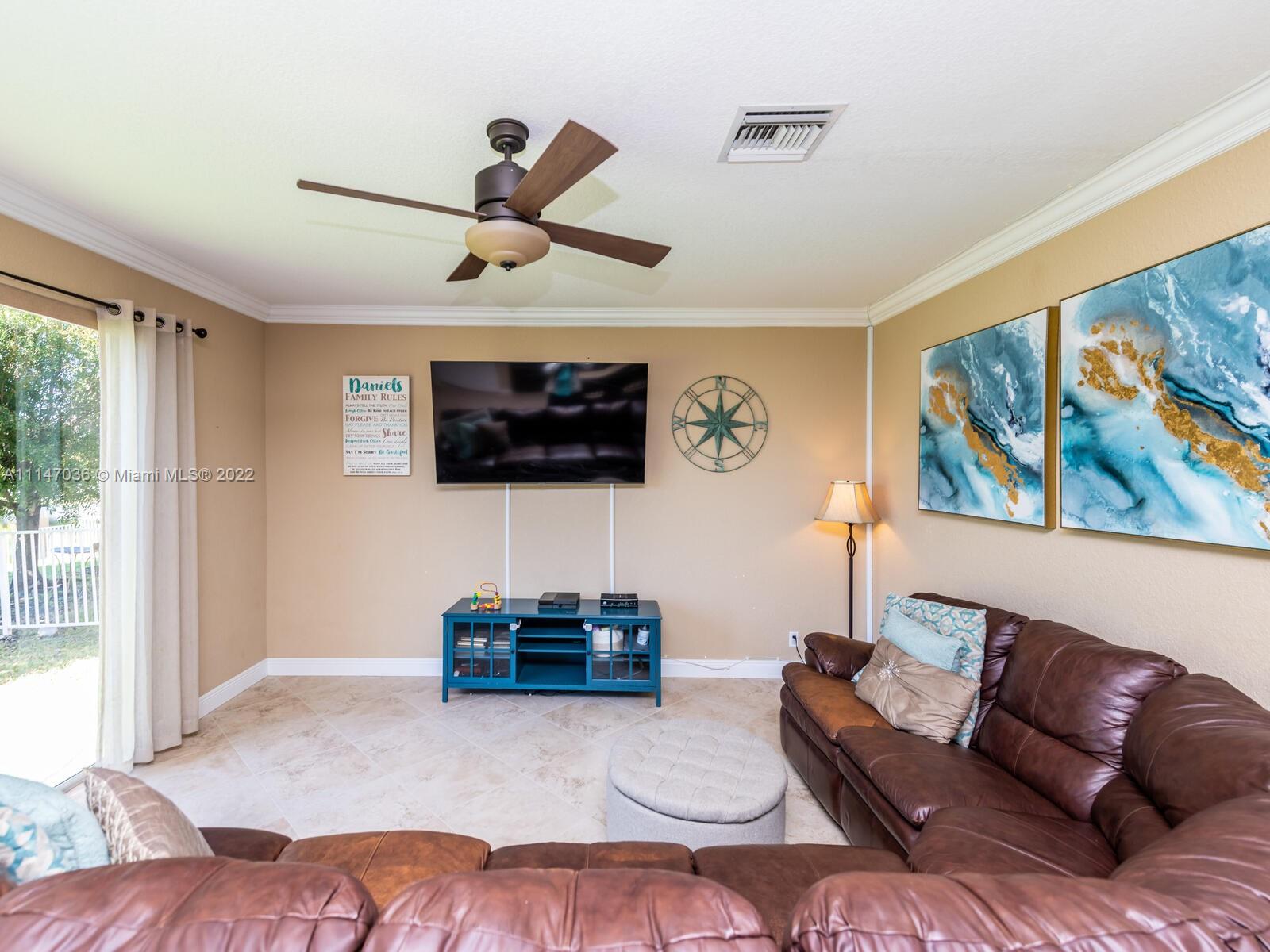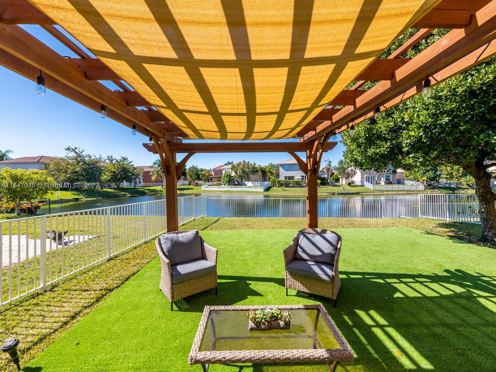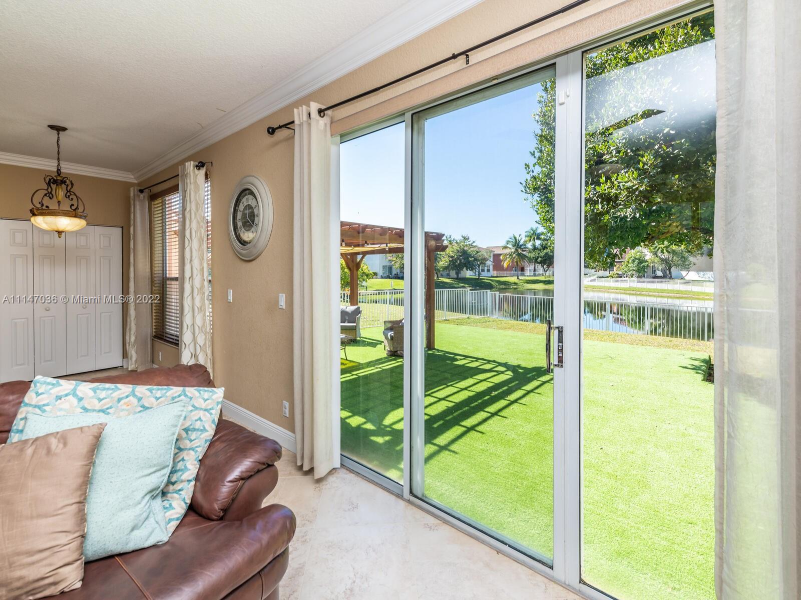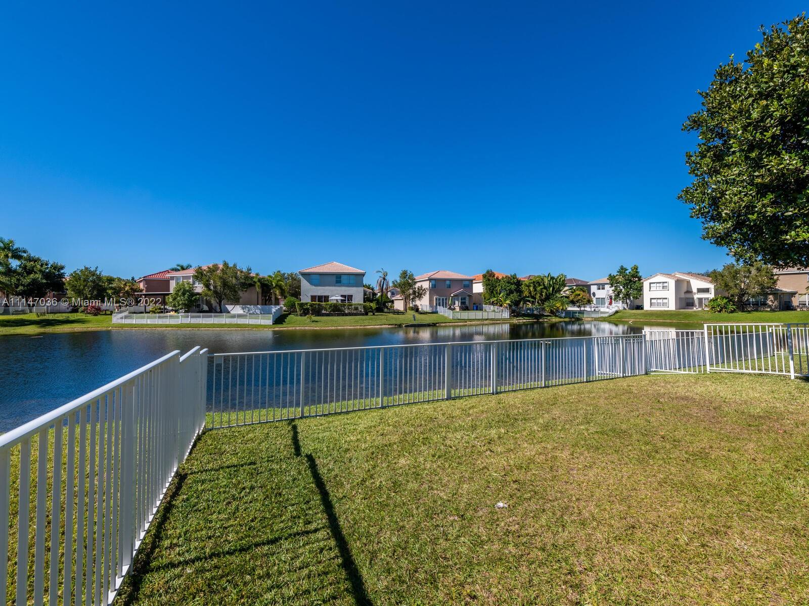 Come see this gorgeous home in West Miramar in the Silver Shores Gated community. Home features 4 Bedrooms, 2.5 Bathrooms with spacious backyard overlooking the lake. Backyard is fenced and has artificial turf for kids to play. Upstairs is updated with beautiful laminate floors in all 4 Bedrooms and bathrooms are nicely renovated with glass sinks. There are two walk-in closets for the Master bedroom. First floor has ceramic floors, updated 1/2 Bathroom and renovated Kitchen with 2 Walk in pantries. Accordion Shutters on all the upstairs windows. A/C 2015 with new motor and UV Light to prevent mold. Water Heater 2012. Community has Club House, Pool and playground. Property is just minutes away from Stores, Parks, schools and Shopping Center. Showings start 1/22/22 at Open House.
