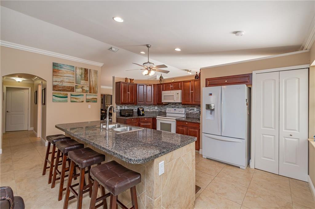 THIS DROP DEAD GORGEOUS HOME IS SITUATED AT THE END OF A CUL-DE-SAC WITH A PANORAMIC VIEW OF THE LAKE. FROM THE MOMENT YOU ENTER YOU ARE GREETED WITH VAULTED CEILINGS, COMPLETE WITH CROWN MOLDING AND A SPECTACULAR VIEW. THIS HOME BOASTS A SPACIOUS SPLIT FLOOR PLAN PERFECT FOR FAMILY GATHERINGS, AN EAT IN KITCHEN, AS WELL AS A GRANITE SNACK COUNTER, AND DEDICATED DINING ROOM AREA. ENJOY THE FLORIDA LIFESTYLE ENTERTAINING ON YOUR OVERSIZED SCREENED AND ROOFED PATIO WATCHING EGRETS, TURTLES AND SO MUCH MORE. ACCORDION HURRICANE SHUTTERS, AND HURRICANE GARAGE DOOR. SEEING IS BELIEVING.