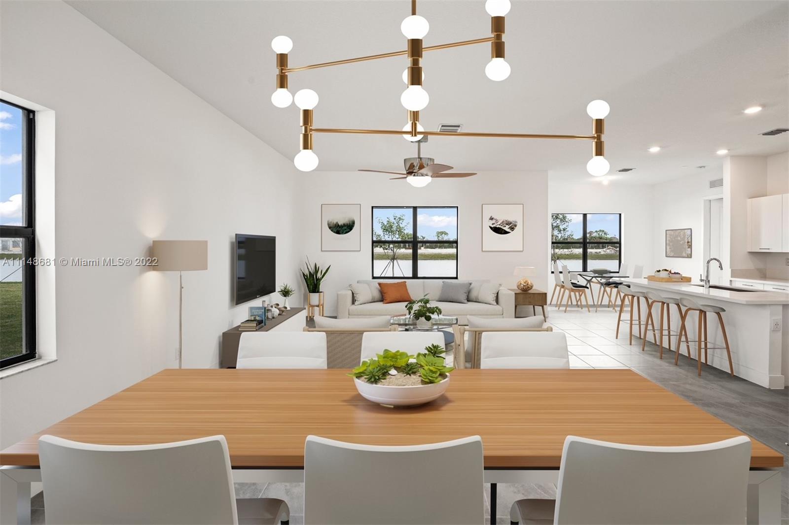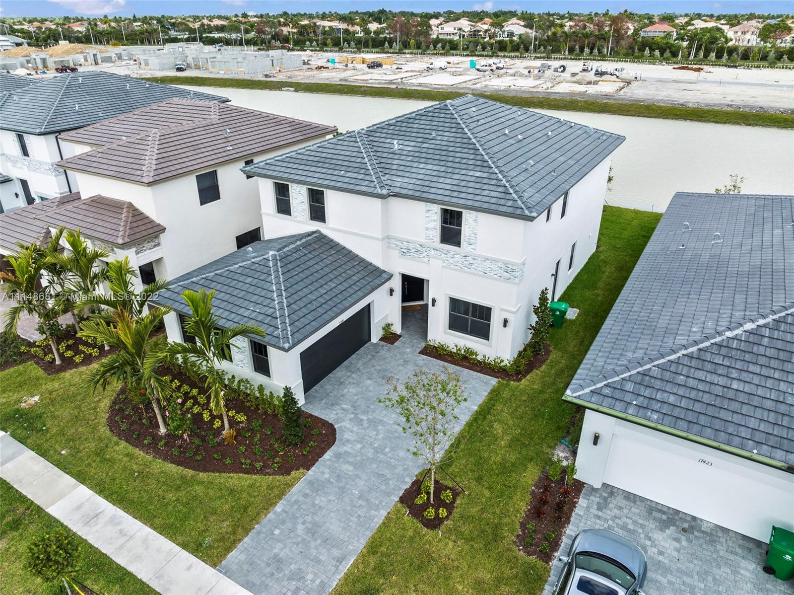 // NEVER LIVED IN -FINISHED \\ new home in Marbella in Miramar. No supply chain issues here! Why wait for home to be built ? The "Plaza" model is 5 bedrooms, 4 1/2 baths PLUS loft/bonus room -includes a private 1st floor in-law/guest suite with own bed, bath, W/D, sitting area, kitchenette and private access front door. Each bedroom has walk in closet and ensuite bath. Prime waterfront lot with exterior modern stone façade located a block from soon to be constructed clubhouse, pool, playground and fitness area. It is a SMART HOME technology system w/RING system, Moen Flo H2O monitoring system. Tile downstairs, quartz counters, stainless appliances. The home faces north and south. This house is ready -to-go.