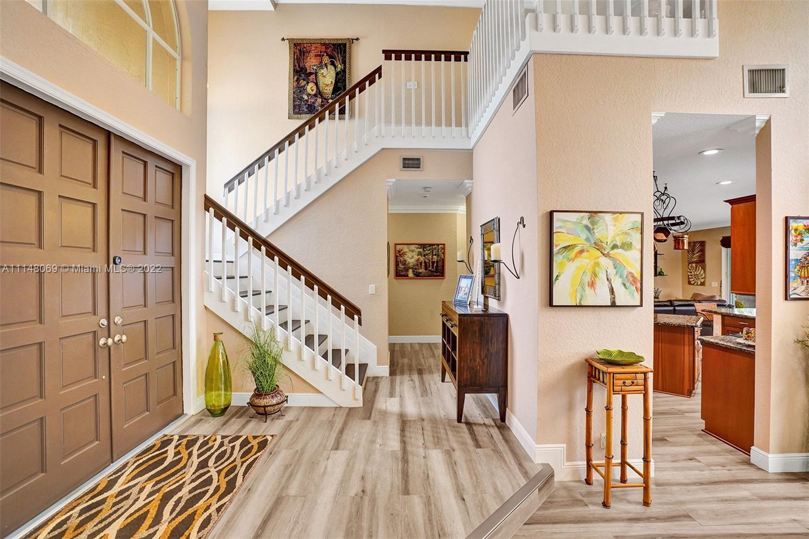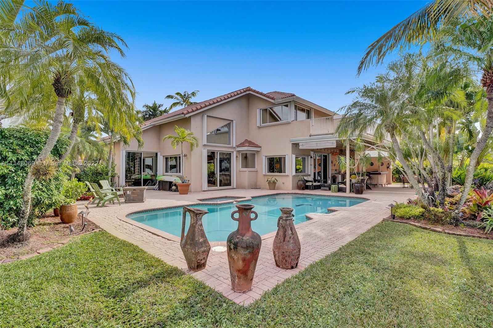 THIS HOME IS EXQUISITE & HAS EVERYTHING A DREAM HOME COULD POSSIBLY HAVE! YOU'LL FALL IN LOVE WITH THE BREATH-TAKING WIDE WATER LAKE VIEW THAT LOOKS MORE LIKE AN OCEAN VIEW & OFFERS THE MOST SPECTACULAR SUNSETS YOU'VE EVER SEEN! THIS HOME HAS IT ALL WITH NEW SPANISH PORCELIN TILE DOWNSTAIRS, UPDATED KITCHEN, CROWN MOLDING, ONE BEDROOM DOWNSTAIRS WITH ENSUITE CABANA BATHROOM LEADING OUT TO THE PATIO, POOL, SPA & OUTDOOR BUILT-IN BBQ & BAR. THREE BEDROOMS UPSTAIRS WITH A PRIMARY BEDROOM & BATHROOM & PRIVATE BALCONY THAT YOU'LL NEVER WANT TO LEAVE! ROOF IS 2006. BRAND NEW OUTDOOR LIGHTING, NEW POOL HEATER & NEW PVC. ACCORDIAN HURRICANE SHUTTERS THROUGHOUT. RETRACTABLE AWNINGS IN THE PATIO AREA. THIS HOME IS BUILT FOR ENTERTAINING & LIVING LIFE TO THE FULLEST!