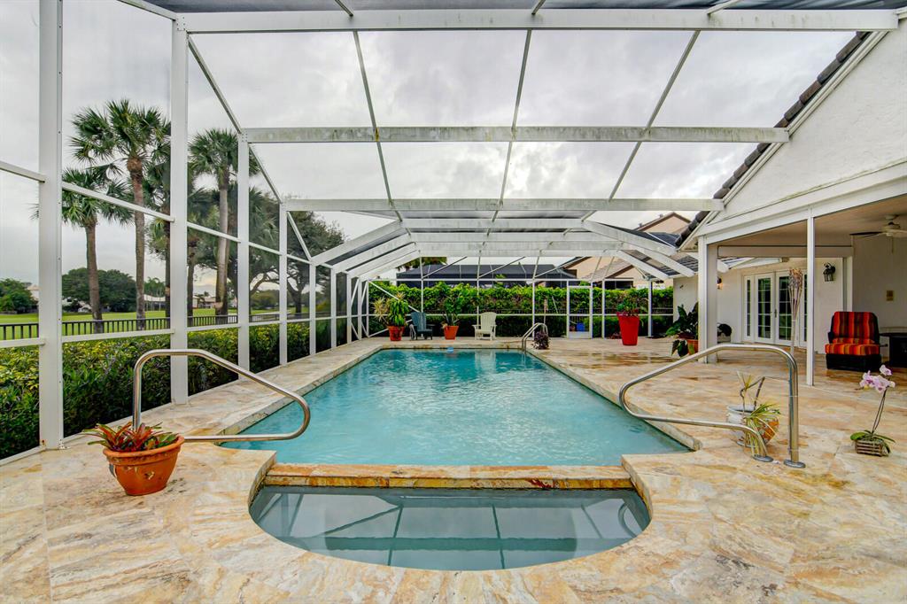 Move right in to this immaculate bright, spacious home! Warm and welcoming with vaulted ceilings and stunning views. 3 bedrooms 3.5 bathrooms. Family room or breakfast nook off of kitchen and a separate dining room. Large southern facing screened patio with resort like pool perfect for entertaining. Beautiful view over pristine golf course. Primary bedroom boasts 2 bathrooms and large walk in closets. All new impact windows and doors 2021. The exclusive Bocaire Country Club is a boutique club of only 239 homes, boasting NO TEE TIMES on a renowned championship GOLF course. Plus Tennis, fitness, social and dining. A rated School district, close to beach, shopping, arts, restaurants, Atlantic Ave and Mizner Park. MANDATORY MEMBERSHIP Fees listed under documents.