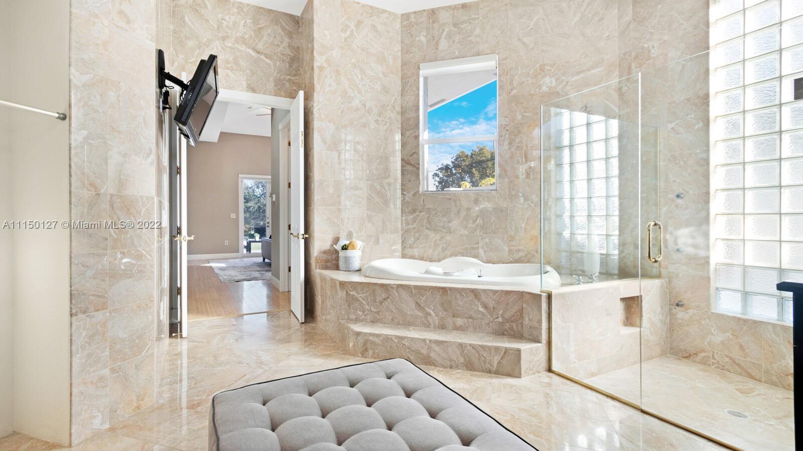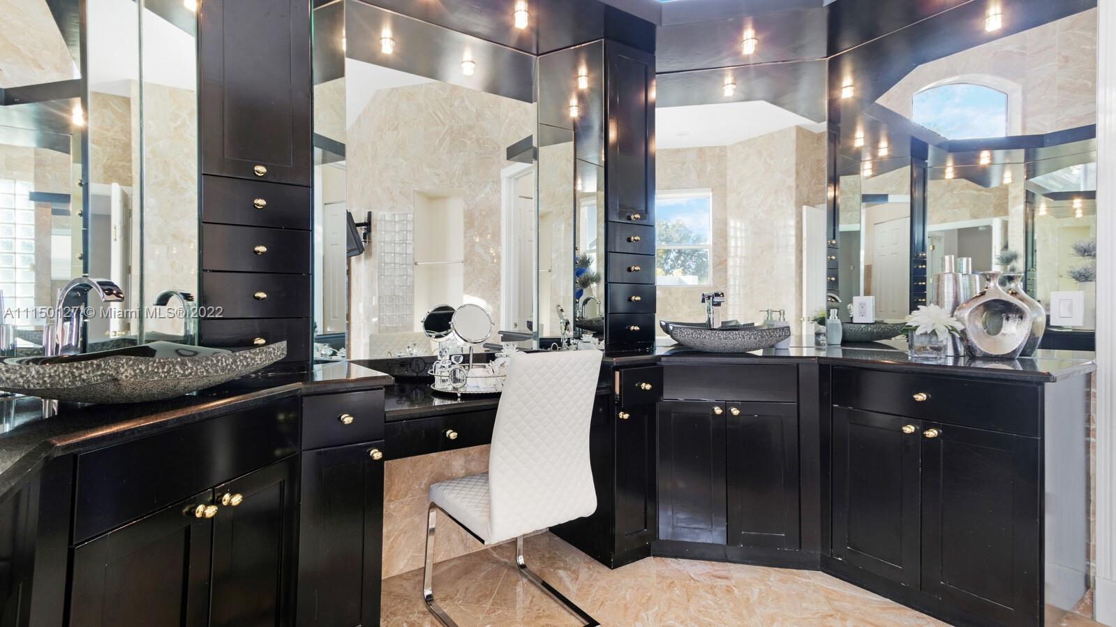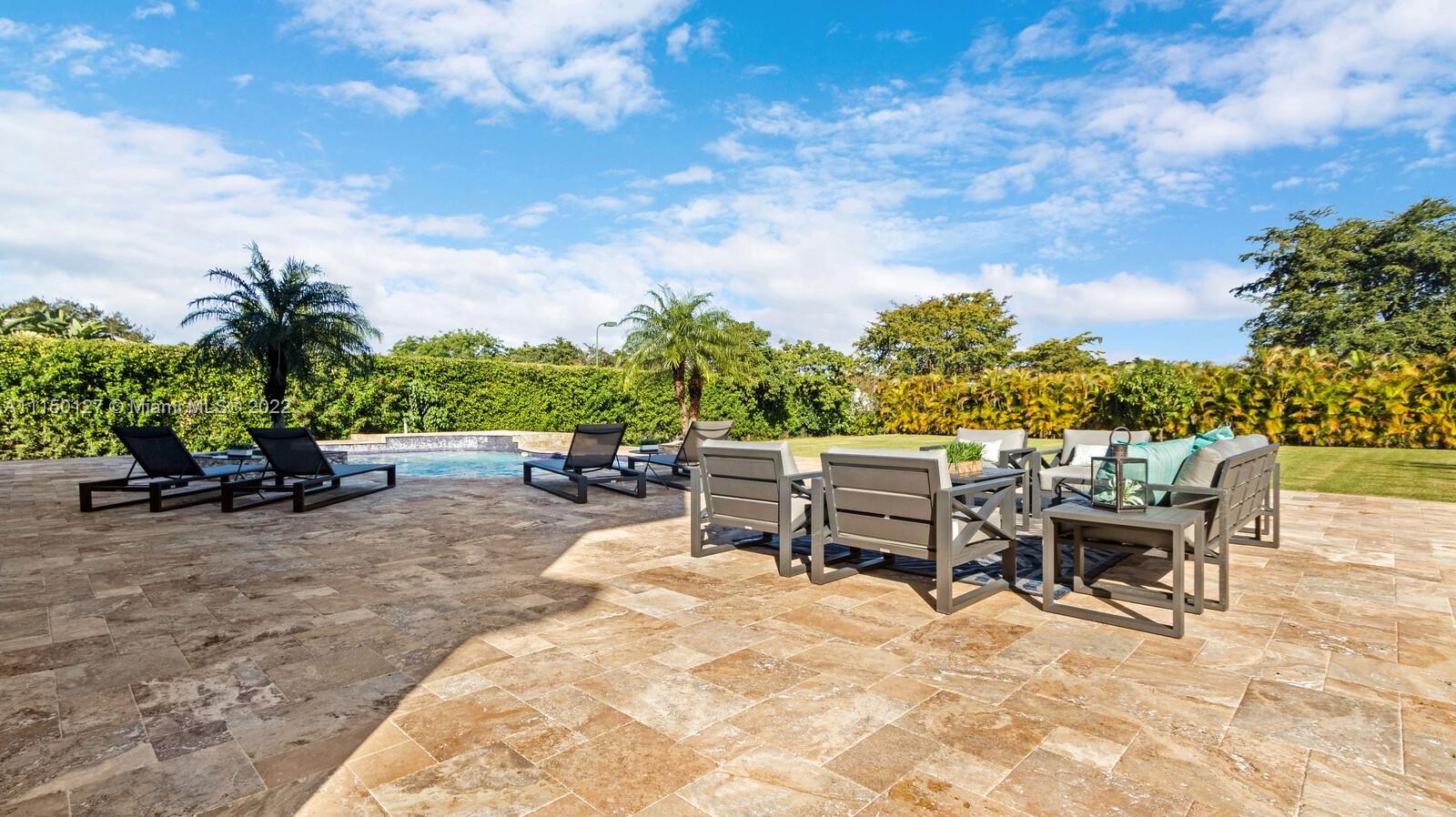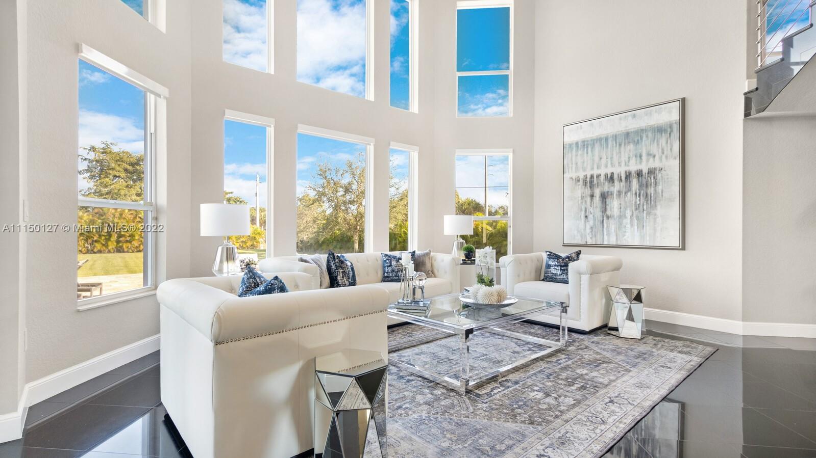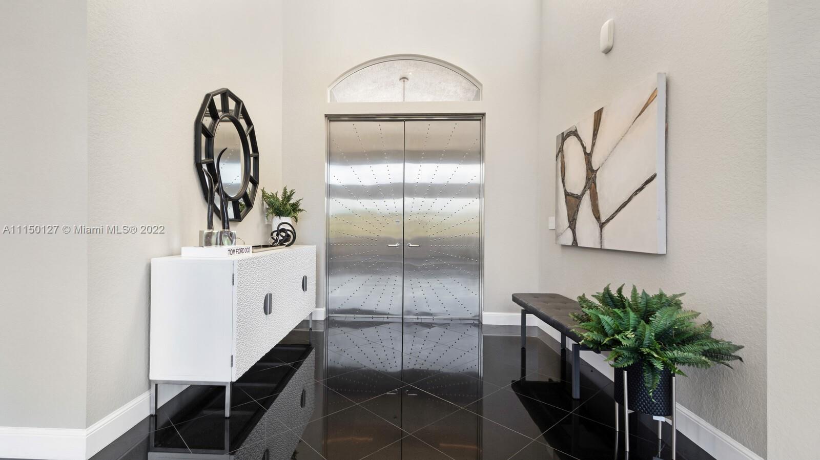 Custom built home including 5 bedrooms, 4.5 baths and a loft area with designer finishes. The entrance to this beautiful home includes a grand porte-cochere, a circular driveway, 3 car garage, and impact windows throughout. The walkway up to the grand double steel door entrance is lush with landscaping. Upon entering you will notice the luxuriously high vaulted ceilings bringing a beautiful flow of serenity. The marble foyer offers a direct view of the expansive backyard and resort style pool. The master suite features an oversized sitting area, walk in closets with built in cabinets, which is located on the first floor. Thermador appliances including a coffee station, walk in pantry, center island with cook-top and hub, double oven, and a bar area. New 2 zone A/C units installed 2020.