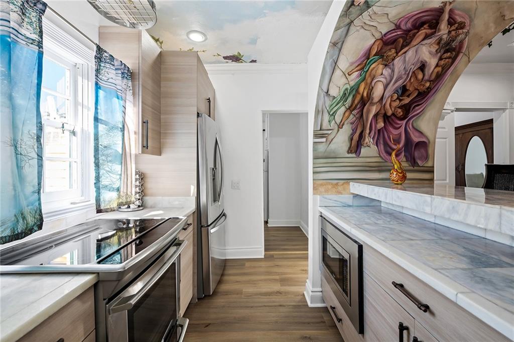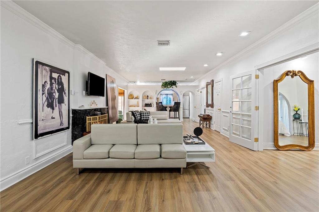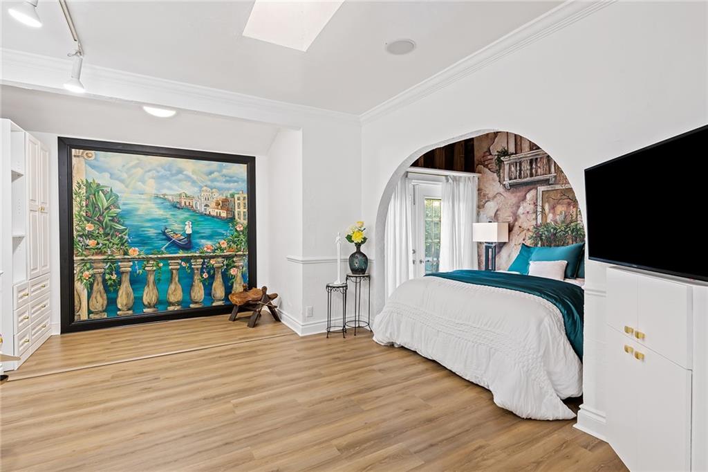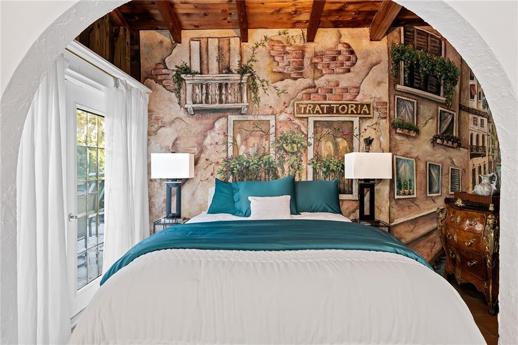 Italian-infused architectural bliss awaits 1 block off Las Olas Blvd in Beverly Heights! Corner lot, waterfront + 7 parking spaces – yes, this is real in today’s hot market! Florida charm meets modern zen w/ Italian murals, arches, soaring ceilings, fresh paint, + select skylights throughout. Cedar-lined enclosed patio w/ 8 sliding glass doors + gleaming Saltillo tile. Marble, tall cabinets + stainless-steel appliances in kitchen. Primary suite w/ 2 original murals, French door exit + ensuite bath clad in classic green tile. Huge walk-in laundry room. A former photography studio, ready for entertaining or an Airbnb! Fully fenced yard w/ extensive wooden decking, hot tub + pops of green. Zoned for a single-family home or two townhomes. Experience it while you can!