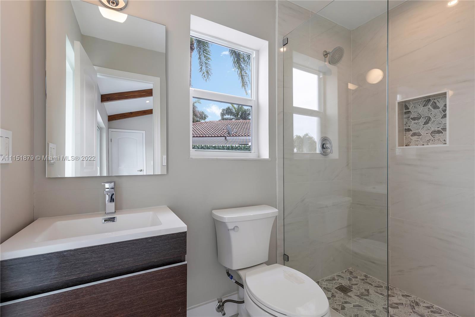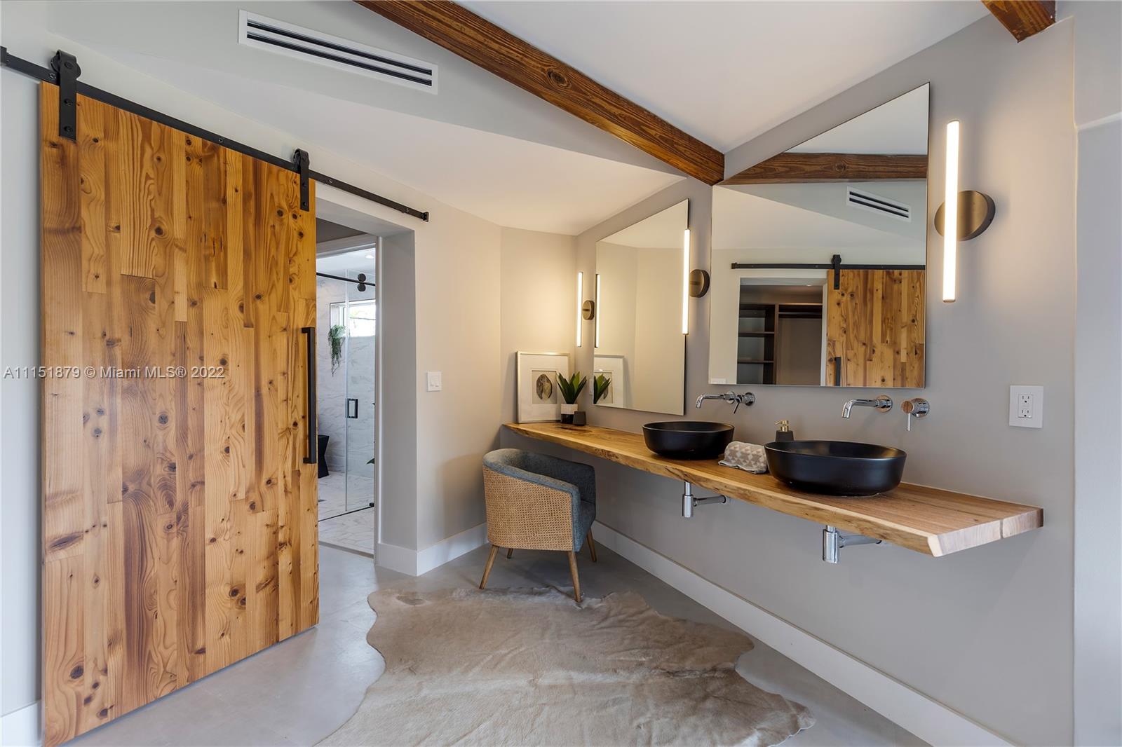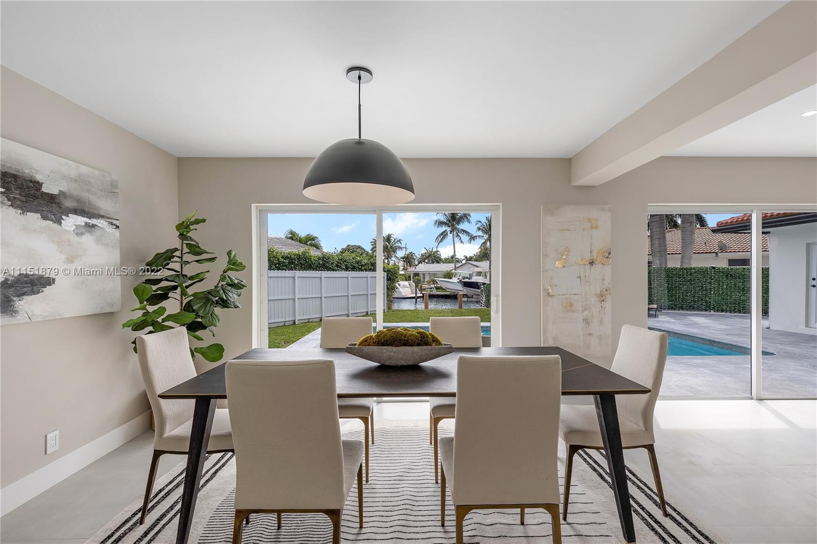Stunning - 5 bedrooms - virtually brand new - designer home on the desirable Bayview Drive. 4 minutes drive to Pine Crest School! This spacious home has it all: large heated swimming pool - private 27 ft dock with easy ocean access - double garage. The home was designed with the boutique-hotel vibe in mind. From it's cathedral ceilings with wood beams, through the live-edge slab vanity-top, to the attractive clawfoot bathtub. Exceptional functionality and privacy with 2 en-suite master bedrooms on the first floor (with a split layout) and 3 bedrooms on the second floor. The home is completely move-in ready with a fully equipped laundry room and fully built-out closets.