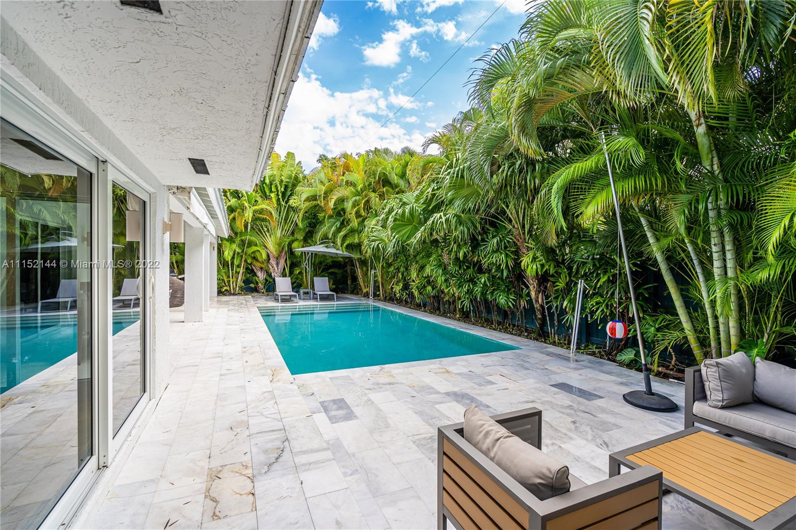 Fall in love with this impeccable and gorgeously remodeled ELEVATED home built in 1989 located in a quiet and elevated street. Beautiful vaulted ceilings with several skylights that fill the house with natural light, combined with wood floor for a complete cozy feeling, 5 bedrooms, 4 full baths, living room, family room and a very spacious kitchen with dining area that opens completely to the pool area. Covered terrace ideal for those who like to entertain next to a heated swimming pool.Custom closets, electric shades in several areas, attic with A/C. Complete impact windows & exquisite landscape that provides full privacy.Won’t last!