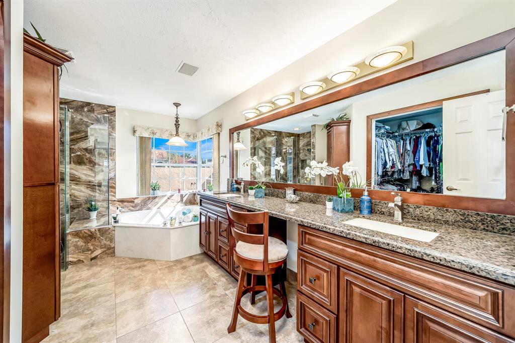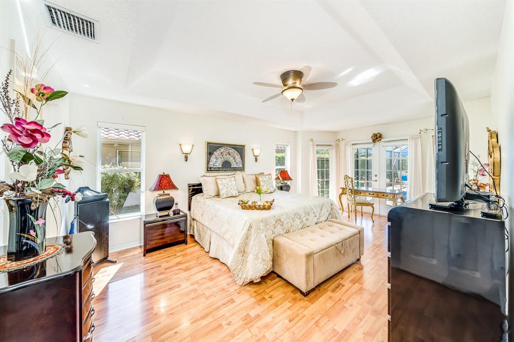 Wow! Mission Bay home with 4 bedrooms, 2.5 baths, 2 car garage, pool home on a large corner lot, located in the exclusive estate section of Cordova Estates. Spacious and open with soaring cathedral ceilings and a split floor plan. Tons of privacy. Large kitchen with granite counter tops, tumbled marble backsplash, tons of cabinets and has a sunny eat in area with pool views plus a large pantry. Family room over looks kitchen. Also features a formal dining and formal living room. Vaulted ceilings, tile flooring throughout living area and laminate flooring in the bedrooms. Master suite has a siting area, French doors that all lead to the amazing tropical oasis private back yard/pool area, a huge walkin closet and a super updated master bathroom. Large inside utility/laundry room.