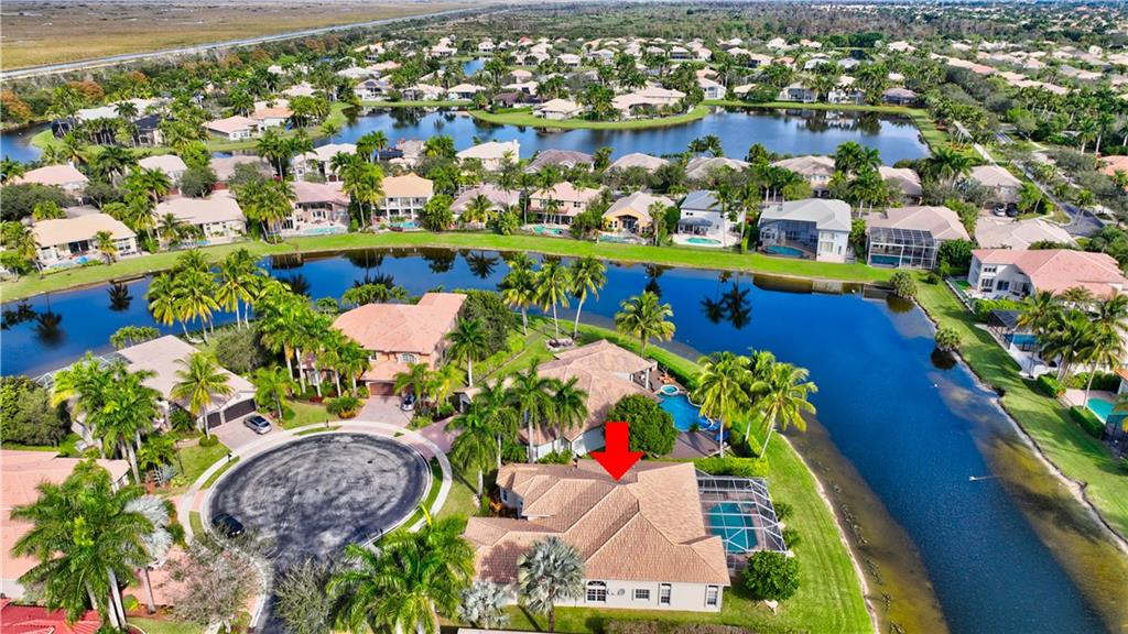 A MUST SEE! Spectacular LARGE LAKE FRONT CUL DE SAC LOT! Upon entering you will be greeted with floor to ceiling windows with a wonderful view of the oversized screened pool area and beautiful lake. VERY BRIGHT AND LIGHT, oversized COVERED PATIO like, great for entertaining with full cabana bathroom. EATING IN Kitchen with granite counters, large island, stainless steel appliances. Main suite with separate office space/sitting area, pool and lake views, customized walk in closets and large bathroom. 24 hour manned gated community, olympic size pool, spa, fitness center, tennis courts, play area and club house. Close prox. to Burt Aaronson S. County Park. A rated schools. All meassu. are approx. based on tax roll inf. OPEN HOUSE FRIDAY/SAT./ SUNDAY - 1pm to 4pm - MUST SCHEDULE TO ATTEND.