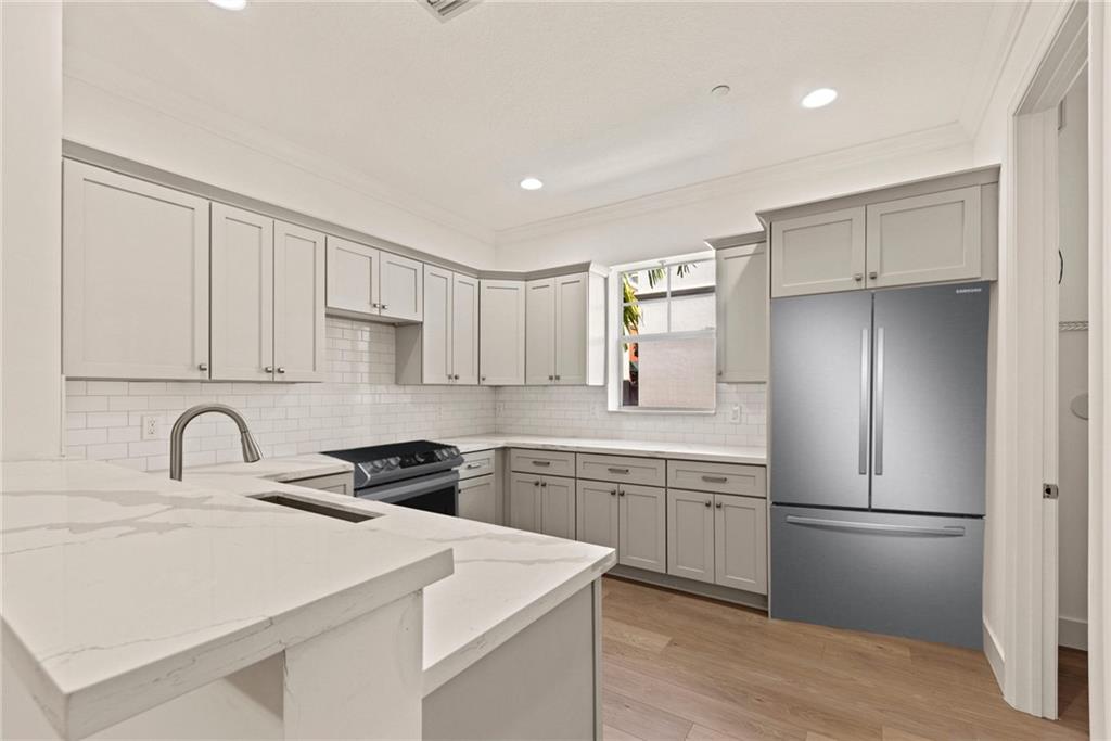 Completely remodeled 3 bedroom townhouse with en suite bathroom for each room plus a powder room is modern and updated.Some photos have been virtually staged.Located in east Fort Lauderdale you can walk and bike to stores, restaurants or the beach 1.5 miles away. New wood look luxury vinyl flooring is waterproof and durable.Designer kitchen features grey,shaker style cabinets,large stainless sink,brand new insinkerator and calacatta quartz countertops with a white subway tile backsplash.Dining options include counter seating plus dining area.Large laundry room off kitchen has a pantry.All bathrooms feature custom tile inlays,new toilets,new faucets and light fixtures.Impact windows.Fully gated complex has security.Community pool.Appliance order could not be fulfilled due to Covid. AC 2018
