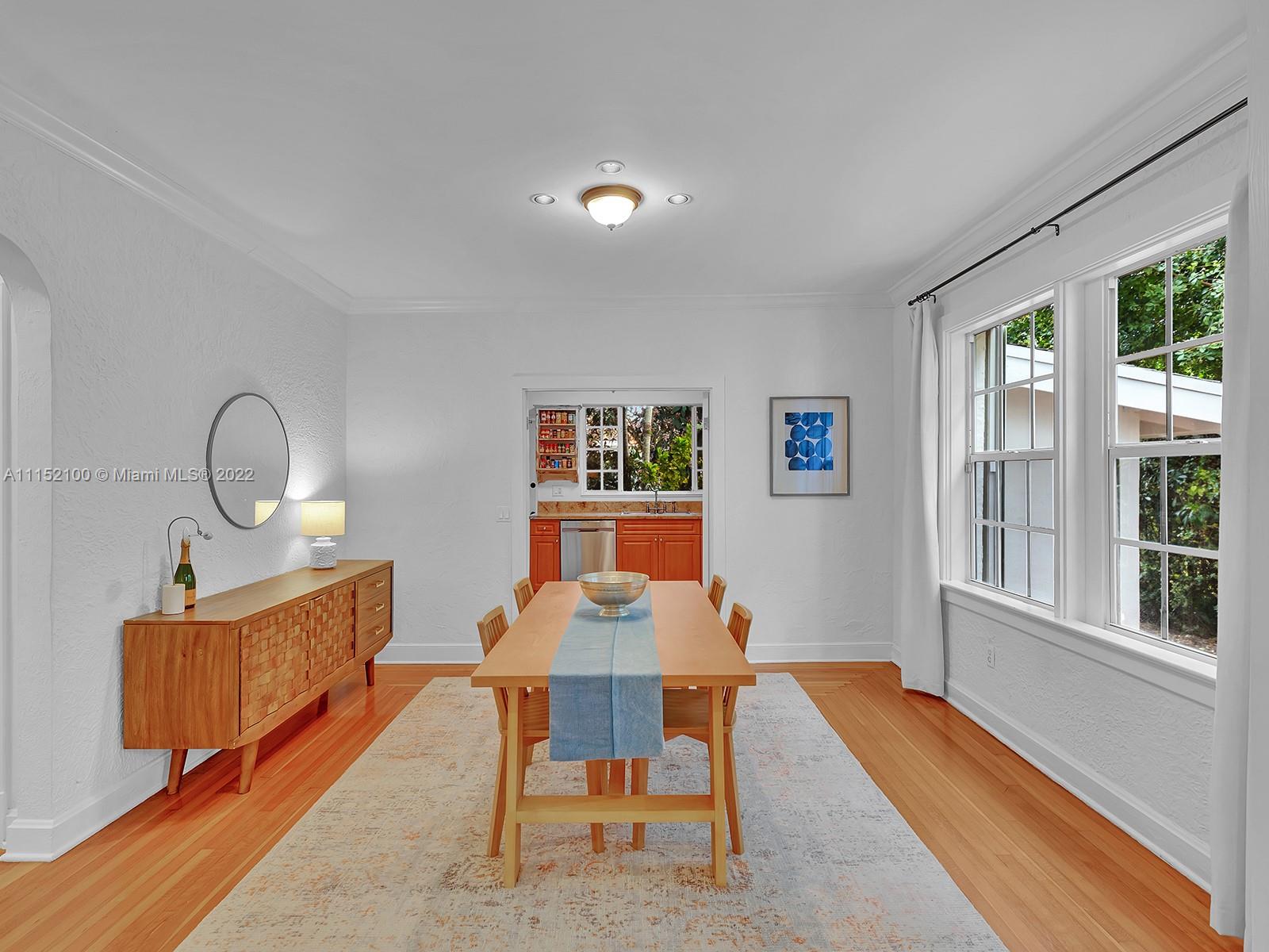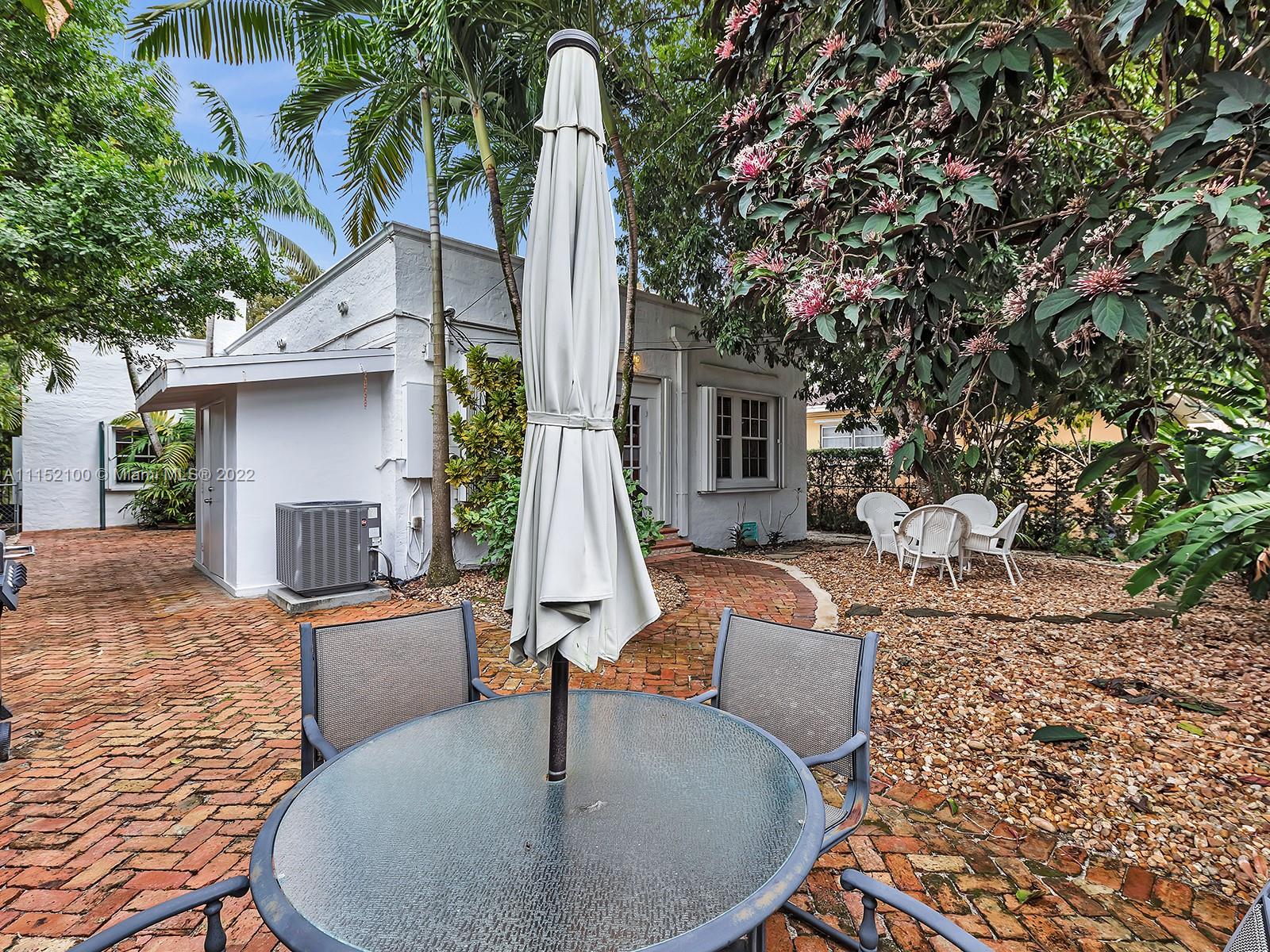 Enjoy this perfectly maintained Old Spanish in North Gables , exuding grace & comfort. Upon entering , walk into a sunroom, with walls of windows . This large lite & brite home has two bedrooms / One Bath home with a separate den/office and features a wood burning fireplace, hardwood floors, high ceilings, tankless water heater, closet built ins & a charming brick garden with a generous back yard . All windows are either impact or have shutters. Short drive to Downtown Coral Gables, Venetian Pool , Biltmore Hotel , Restaurants and shopping as well as the airport .