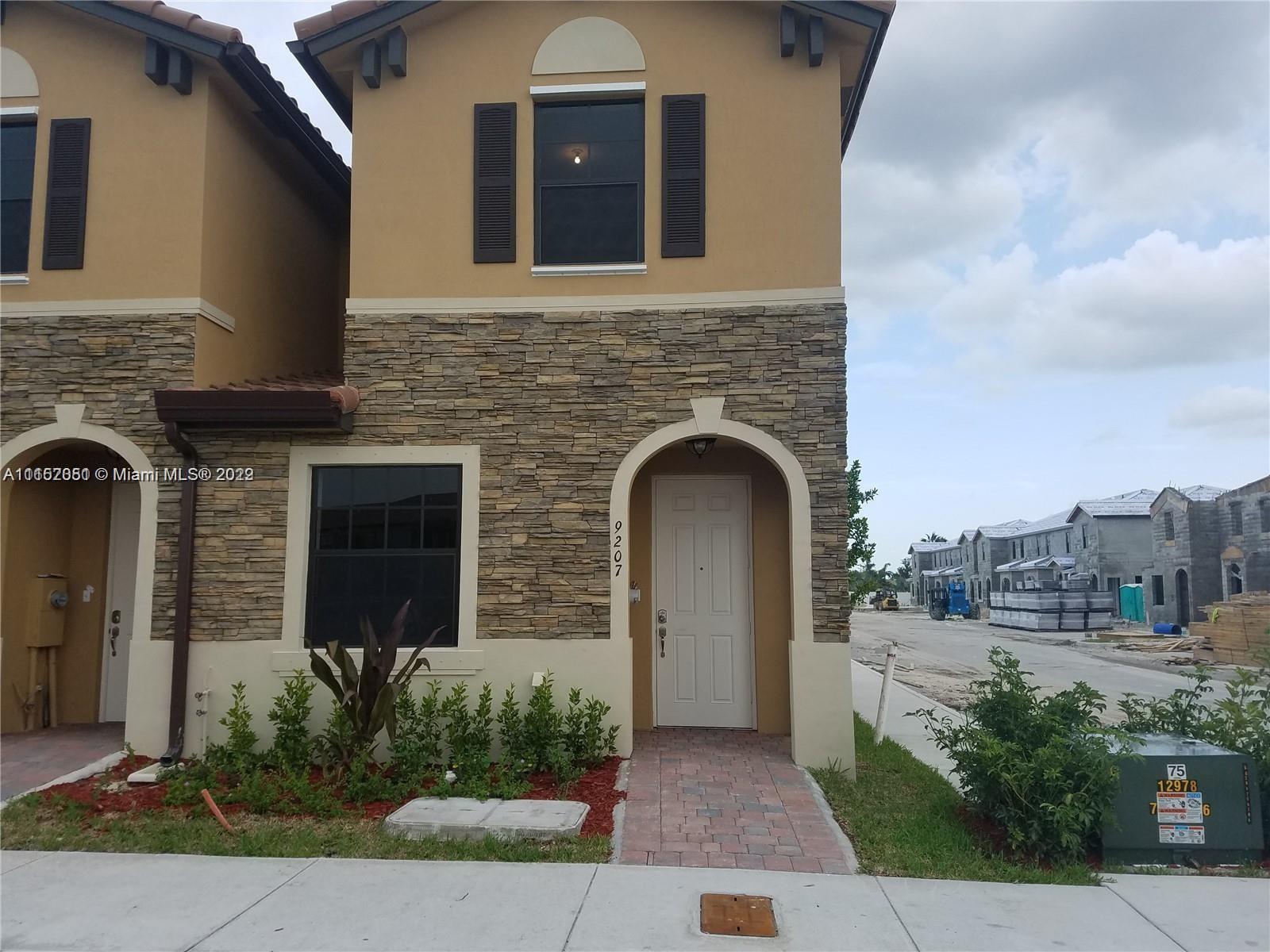 Mediterranean-inspired Villa 3be/2.5ba with private fence yard, NEW Community BONTERRA!! One of the most desired location in Miami, This CORNER unit brings Stainless Steel GE Appliances, Dark wood cabinets 36”, tile main floor and luxurious carpet upstairs, washer & dryer in 2nd floor, dramatic 9’1” ceiling, High speed structured wiring throughout, construction with energy saving features that will lower your bills, Very bright and spacious corner unit with 4 extra windows and backyard access, 2 assigned parking plus 4 extra around the property, private patio to entertain family and friends, offering easy commuting access to nearby restaurants, shopping and schools, enjoy the clubhouse and amenities, resort-style swimming pool, live in this family-oriented new gated community