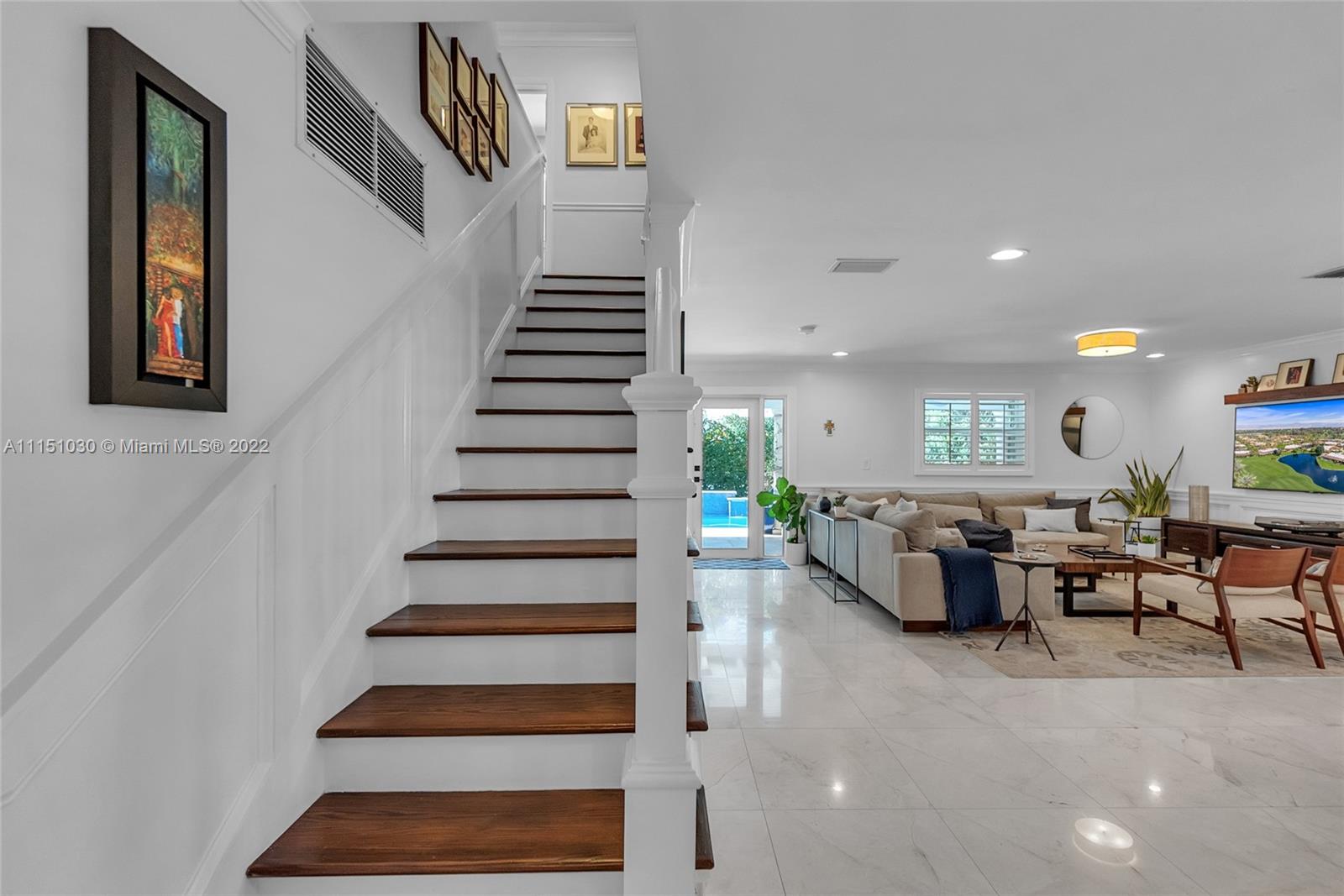 Perfect family home in prime SGables, quiet tree-lined street location! Impeccable turnkey 4bd/2.5 bath, 2 Story home is truly a gem. Boasting an open floor plan w/2,352 sqft under AC & 2,700 sqft total (per owner). Ground floor has a fantastic layout, featuring wainscoting in dining, living and parlor/office w/built-ins. Kitchen features quartz countertops, SS appliances, & prep island. Wine cooler/bar area complete this great space for entertaining. Garage has been converted to a playroom & gym. Covered patio & pool. Upstairs you will find 4 bd, 2 full baths, & laundry. Marble floors on the 1st floor, wood upstairs. Impact windows & doors, partial accordion shutters, 2 ACs, & on demand water heater. Security gate, lighting, & brick driveway. Located in SunsetElemDistrict. OPEN 1/30 1-330