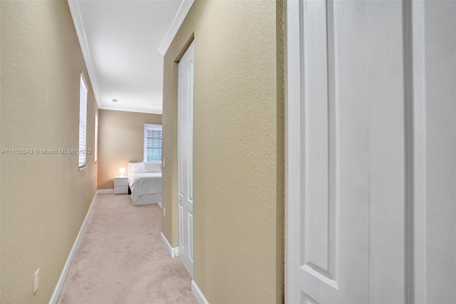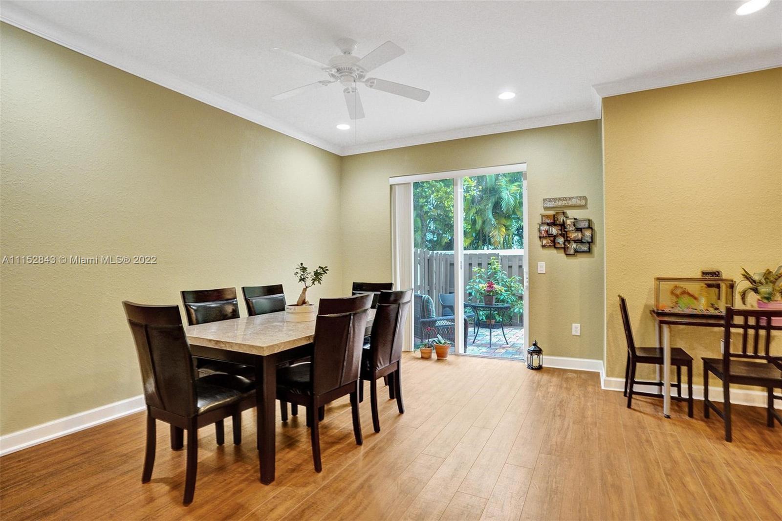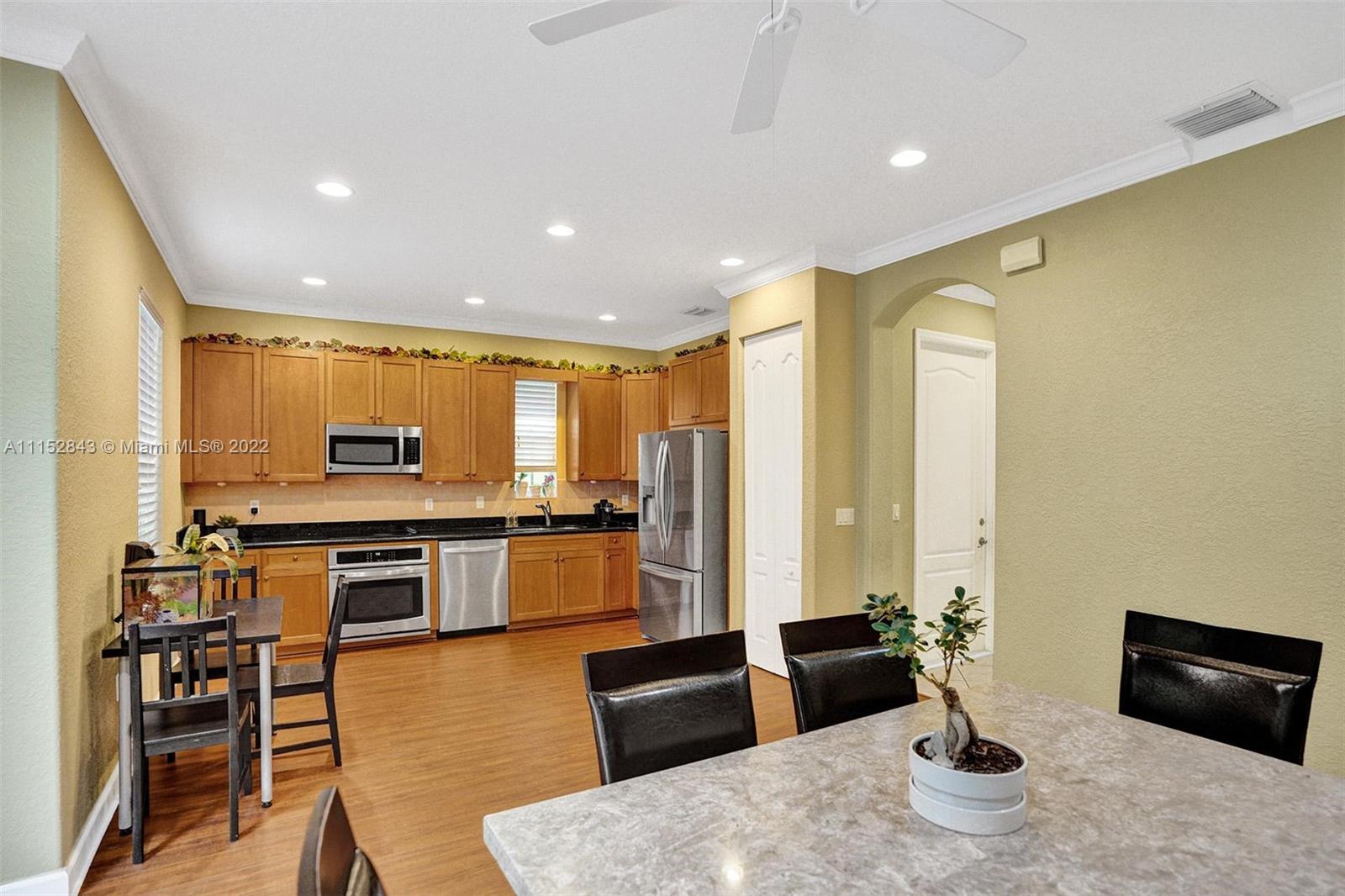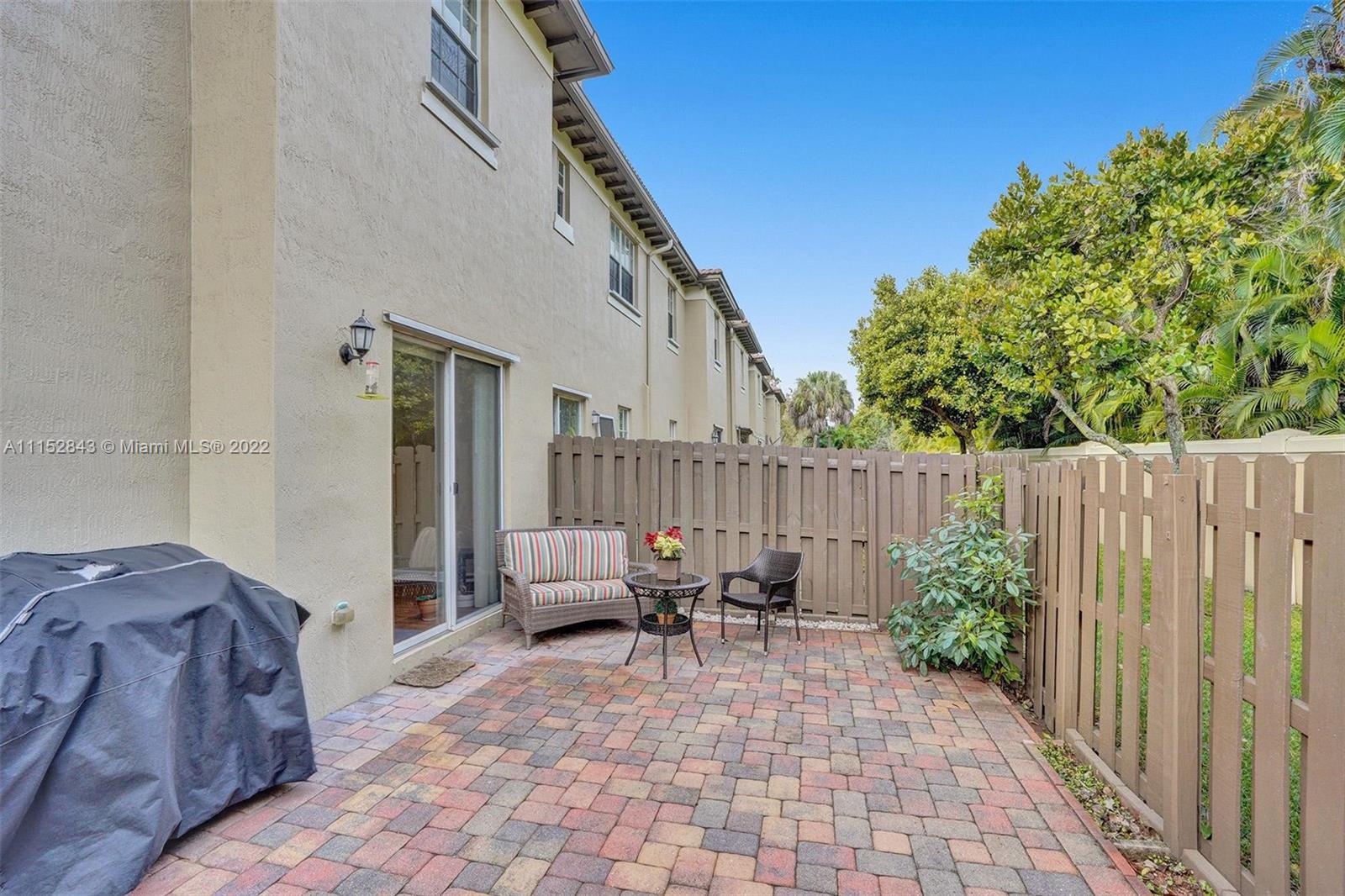 Clean 3 bedroom 2.5 bathroom corner home with crown molding in this quiet boutique community. Granite countertops, 2 large walk-in master closets, master bath has separate shower, double sinks, and a large soaking tub. It also has a 1 car garage, driveway space for 1 and additional guest parking. The HOA fee includes front exterior landscaping, pool service, common area maintenance, basic cable and alarm system. Cimarron amenities include the community pool and playground and is also zoned for A-rated Schools in Davie. Community repainted in 2021.