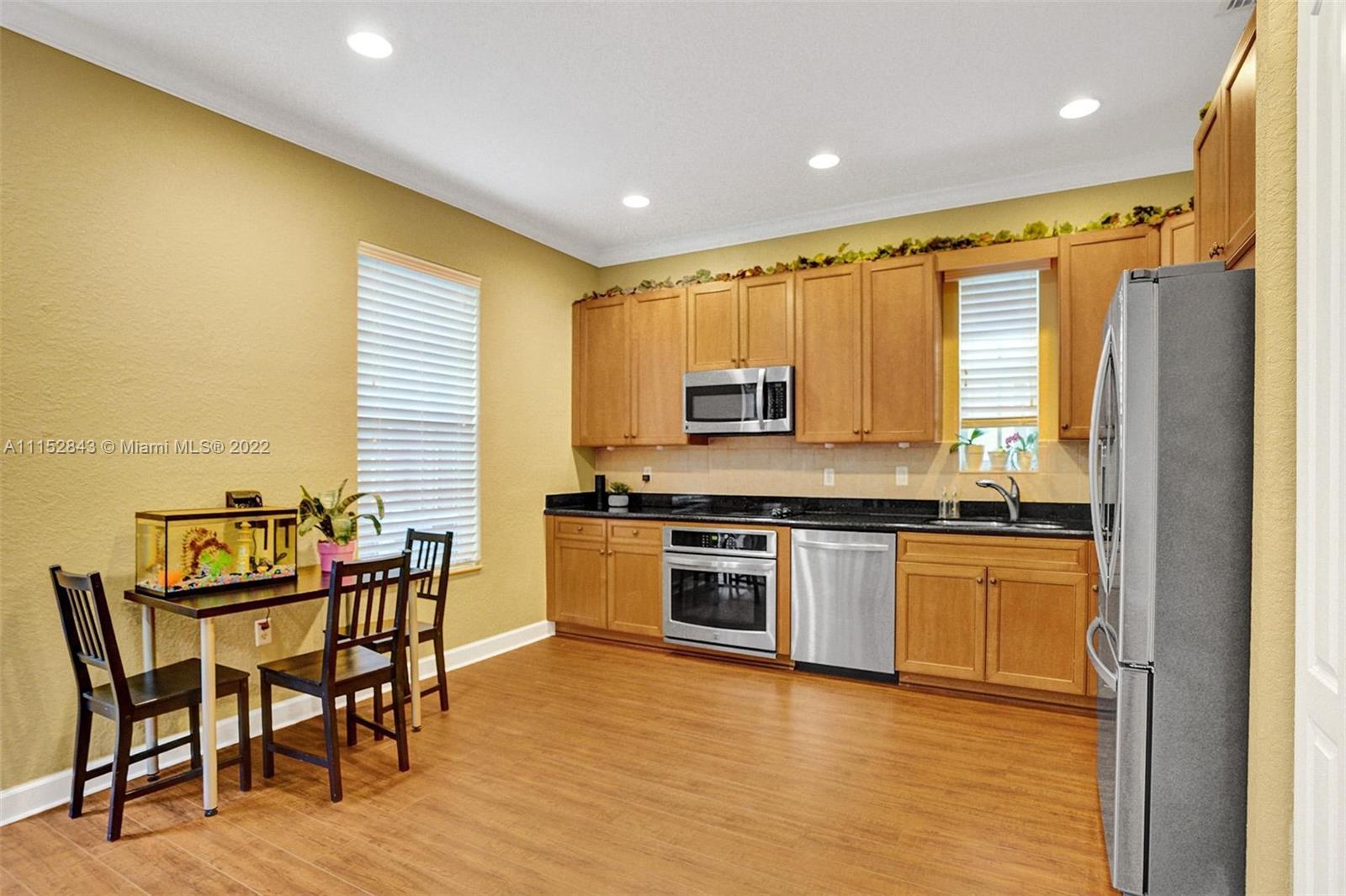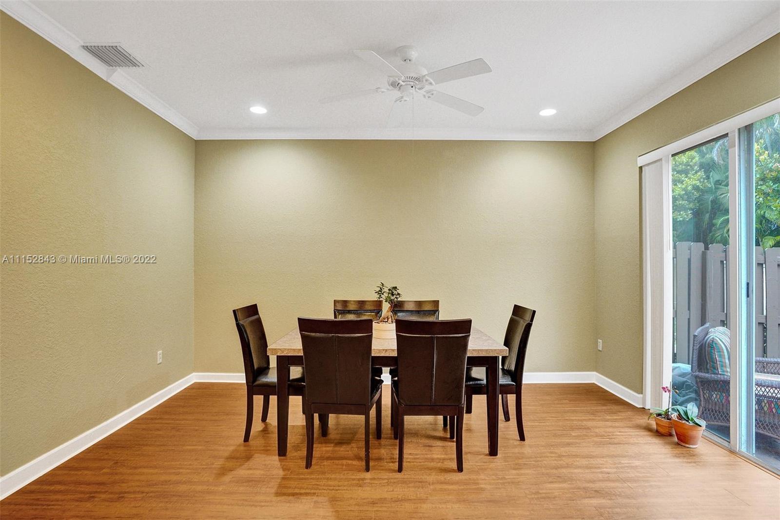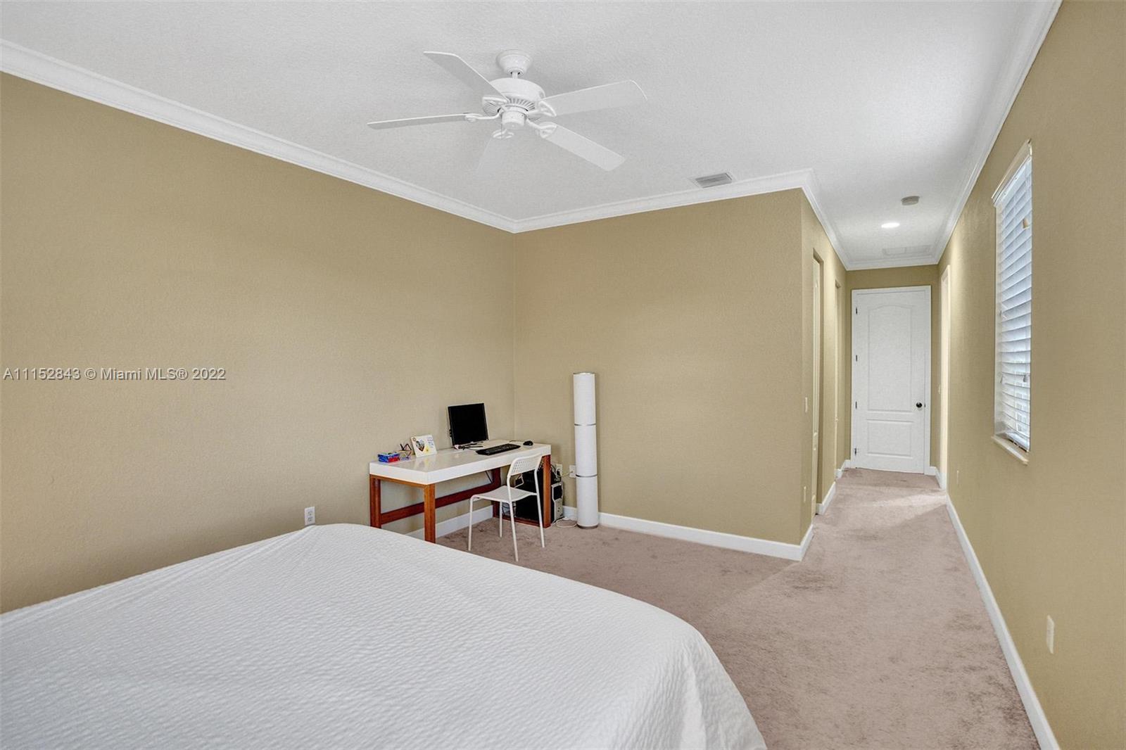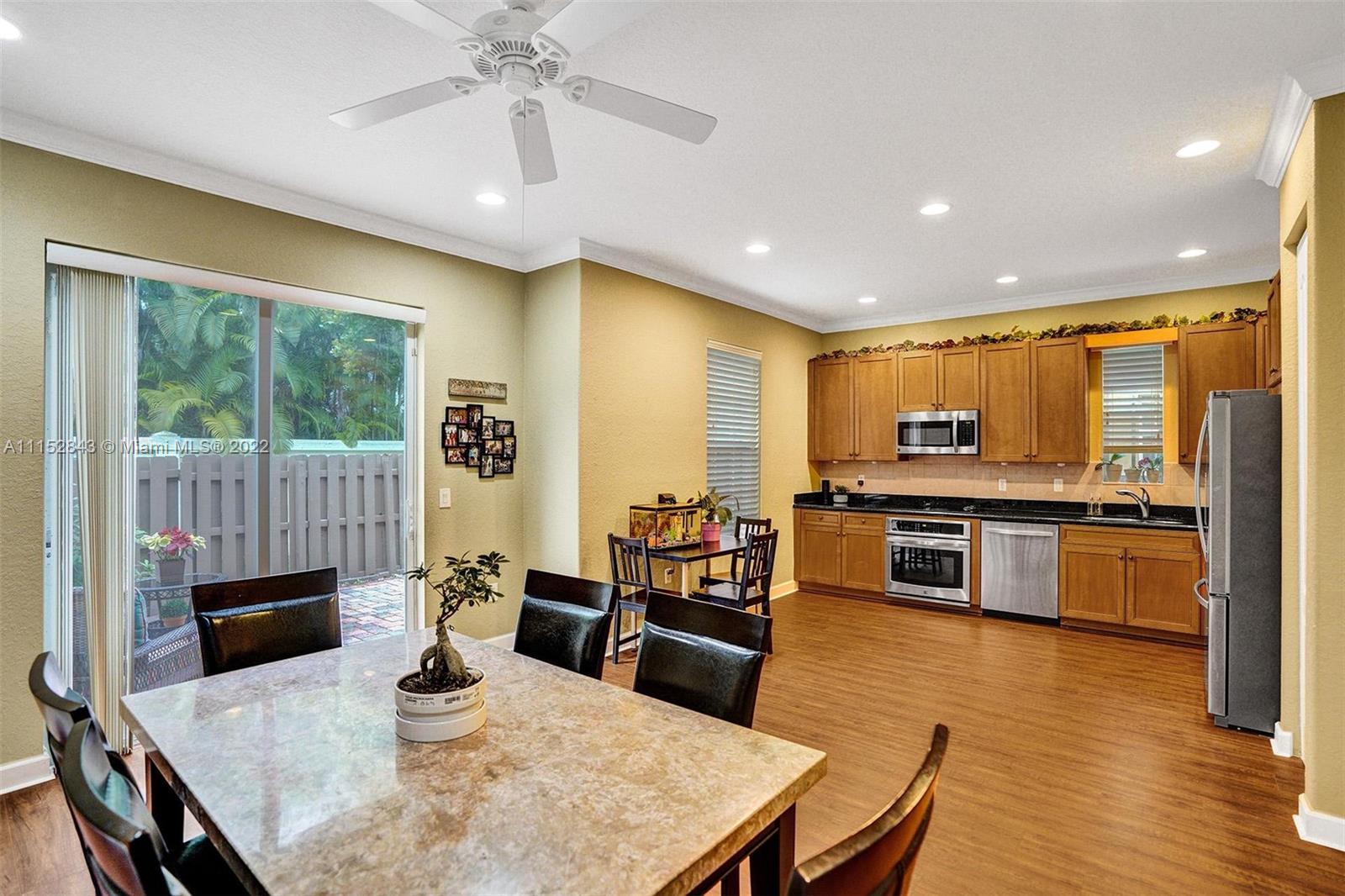 Clean 3 bedroom 2.5 bathroom corner home with crown molding in this quiet boutique community. Granite countertops, 2 large walk-in master closets, master bath has separate shower, double sinks, and a large soaking tub. It also has a 1 car garage, driveway space for 1 and additional guest parking. The HOA fee includes front exterior landscaping, pool service, common area maintenance, basic cable and alarm system. Cimarron amenities include the community pool and playground and is also zoned for A-rated Schools in Davie. Community repainted in 2021.