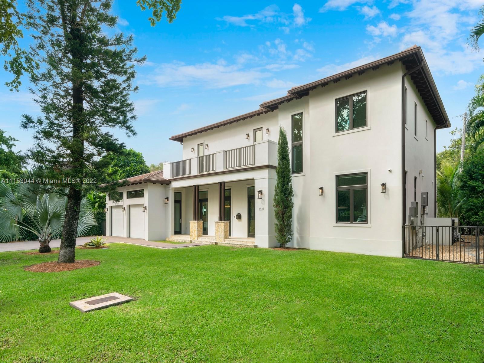 Gorgeous two-story modern estate located in the heart of Coral Gables. This recently built 2020 home offers a spectacular open concept flrplan, featuring exquisite finishes & details including high ceilings & beautiful white marble & wd flrs throughout. Discover expansive formal living & dining rms leading to a custom gourmet kitchen w/stunning cabinetry, Subzero & Wolf appl, gas stove & spacious family rm overlooking the serene outdrs. Lavish Master suite located upstairs, offering balcony & private terrace w/custom designed putting green, WIC & spa-like bath w/ floating tub & shower. Find ample rm to entertain w/ large covered terraces, summer kitchen, & glowing pool w/ deck jets. Additional Features: imp windows/drs, all bedrms are en-suite, laundry rm, 2-car gar with space for lifts.