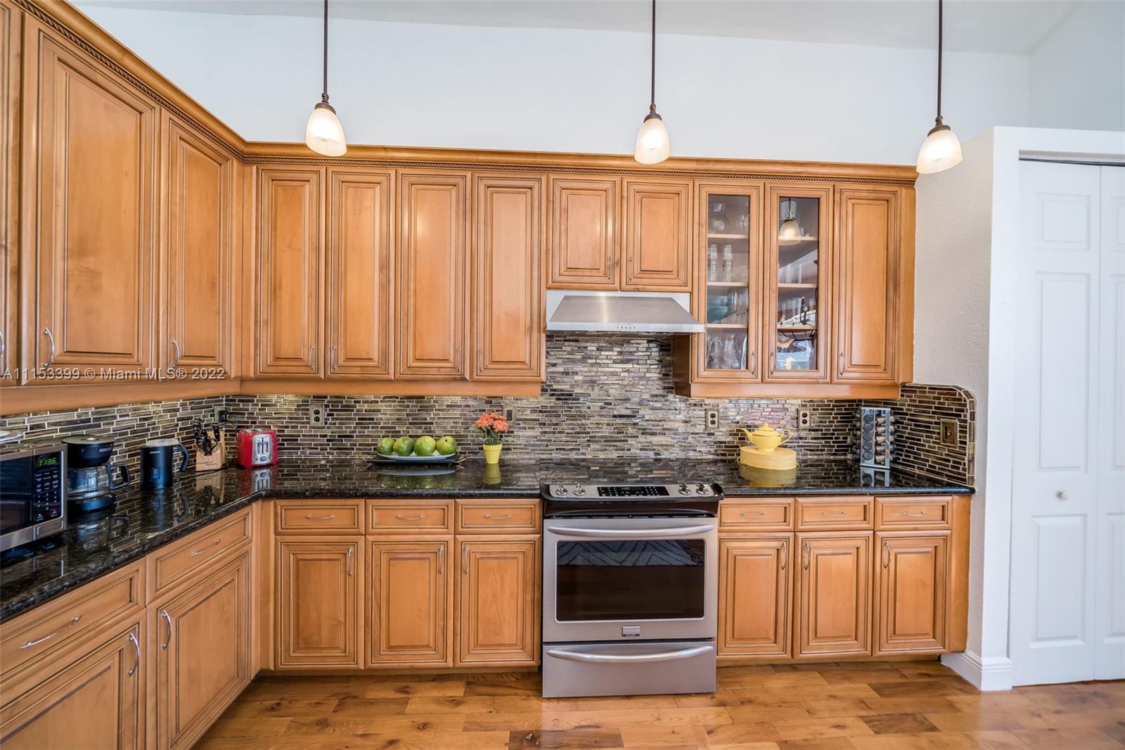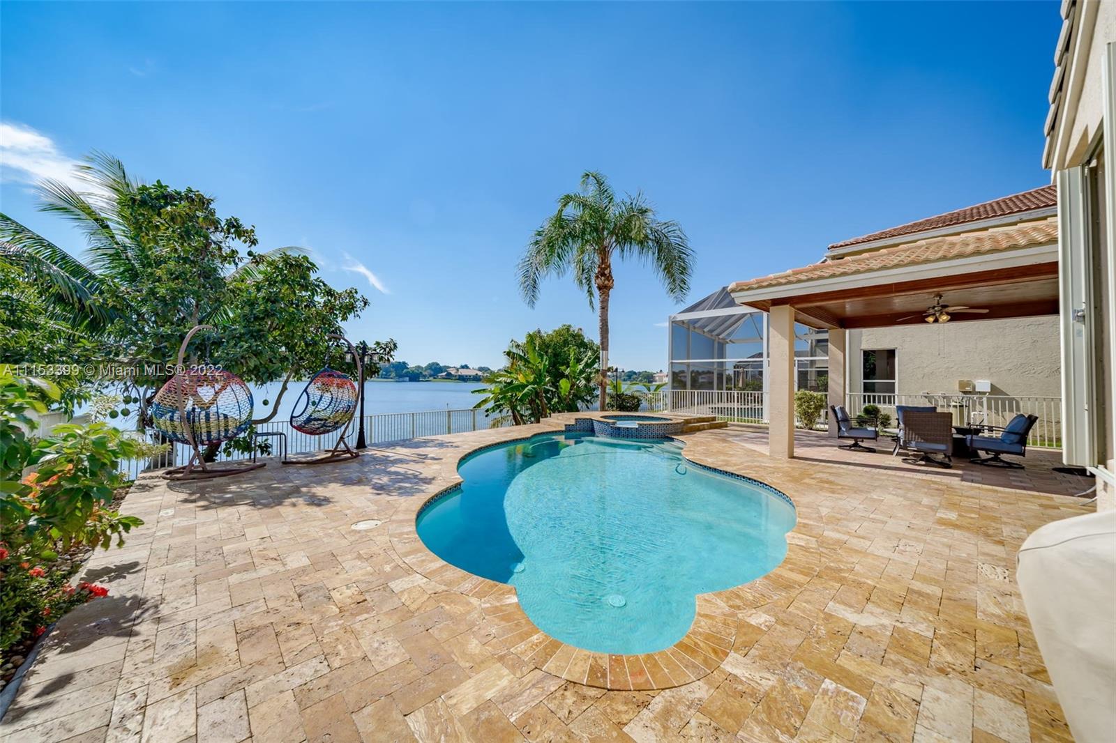 A TRUE GEM AWAITS YOU! This beautiful home is everything you've been looking for. From the moment you walk in you are mesmerized by the volume ceilings, open space, solid wood flooring and breath taking panoramic views of the lake. The Master Suite is massive with a sitting area and a "True" His & Hers Master Bathroom. Enjoy the sunrise and sunsets from your backyard or soak the sun in your salt water/ Heated pool with a spillover spa. Other features include: Natural Lighting, Upgraded Kitchen, SS Appliances, Walk In closets, Upgraded Bathrooms, Garden Tub, Jack & Jill Bedrooms, Downstairs bedroom for guests, teens or in Laws, Full size laundry room with sink, LOW HOA fees, Paved driveway, 2 Car Garage, Complete Accordion shutters, Fruit Trees, Gated Community & Community Amenities.