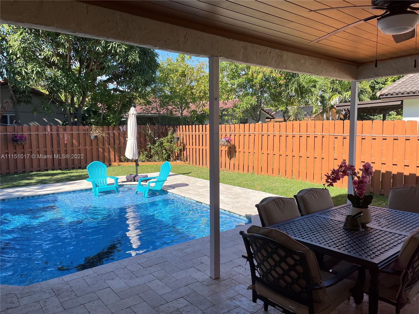 Beautifully Updated 3 BedRoom 2 Bath with Pool. Home features travertine Marble through out home, Granite Kitchen Counters with lots of cabinet Space, huge Island,Gas Cook top Stove and all Stainless Steal appliances. Home has double open French doors that lead's right out to back yard that Features a Beautiful Salt water Pool with special LED lighting and Features sun shelf for sitting/relaxing water bubbler for that soothing water sound and built in umbrella holder. Backyard deck also featured marble pavers, and room for backyard activity or Swing Set. Newer (roof, a/c, pool ) all redone within the last 5 years. This is a must see ! Home is also close to shops and dining. Great schools and Beautiful Parks.NO HOA!! Located Right across Coral Springs THE WALK.