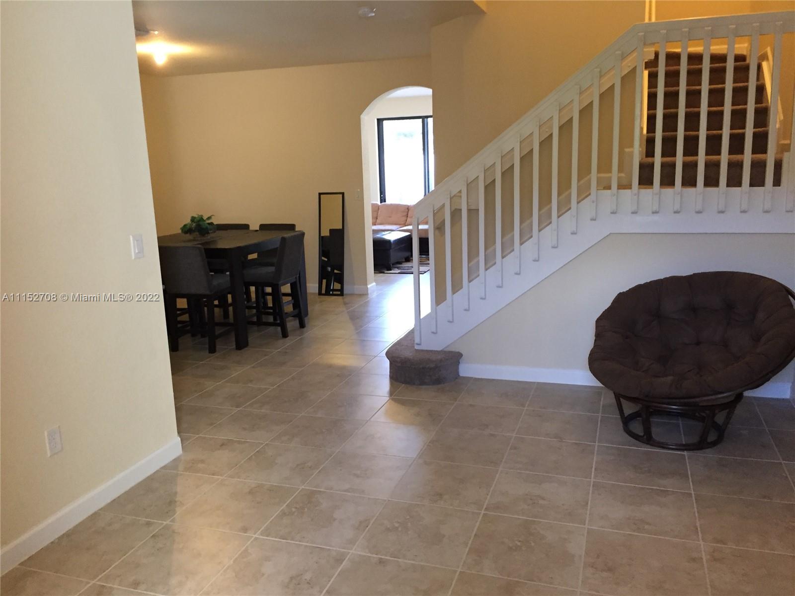 ONE OF FEW 4 BED/2.5 BATHS Great Floor Plan in Aragon New Development Community. Easy access to Highways, close to schools, supermarkets, convenience stores and much more. Tiles in the first floor, carpet in stairs and second floor. Washer/Dryer in unit. Very nice kitchen with stainless steel appliances. Master bedroom with plenty of space, beautiful bathroom and spaciously walking closets. Fenced 37' X 22' Half paved Patio to play and enjoy. 1 car garage with plenty of visitors parking. Beautiful community pool, gym and recreation area. No contingency to appraisal, best offer will be considered on 2/10/22.