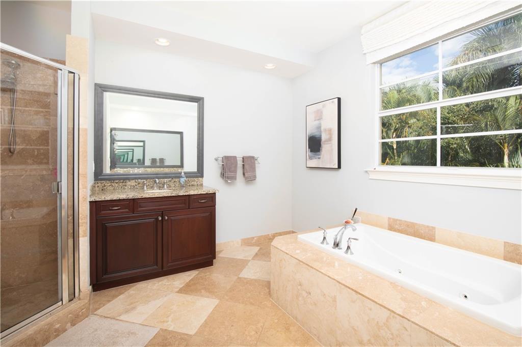 Highly upgraded home in gated East Boca boutique community of Royal Poinciana! This 4-bed/ 3-bath unit is move-in ready, offering the most private yard in the community. The list of features include hardwood and tile flooring, private marble-finished patio, high end window treatments and draperies, upgrades lighting/ fixtures, and dual walk-in master closets with outdoor sitting area off of master suite. Just move right in to this beautiful home and enjoy! Gorgeous & tastefully decorated, it is ideally located minutes from Downtown Delray and Boca Raton. The backyard is fully fenced, there is a two car garage, and 2007 construction with impact windows and doors. The HOA fee covers roof maint., ext. insurance, landscaping, and more. The community has a gated entrance and pool area as well.