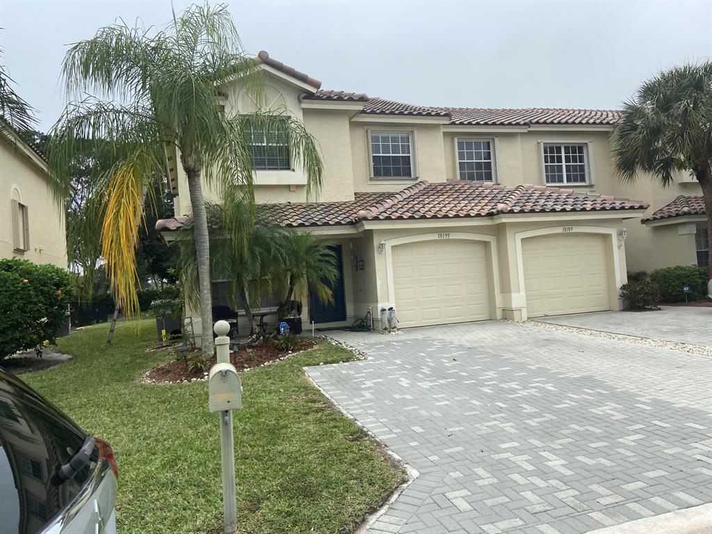 .LARGEST MODEL! PERFECT LOCATION! CORNER TOWNHOME ON CUL-DE-SAC! Across from the swimming pool! Wonderful 3 bedroom townhome with great floorplan. Separate living room, plus dining room & family room. Enormous kitchen. Luxurious master bedroom with huge walk-in closet & spacious bathroom. Large 2nd bedroom & bath. Lovely tile & wood-laminate floors. Patio with large yard & private view. Accordion Shutters. New 2021 Barrel Tile Roof. Shows beautifully! Community Pool & Tennis! Lovely West Boca area. Excellent Schools. Close to The Reserve Plaza, Delray Marketplace, shopping, dining, & major thoroughfares. 2 pets welcome !HOA covers roof repairs, replacement, pool (directly across the street) tennis courts, lawn maintenance. 2020 A/C
