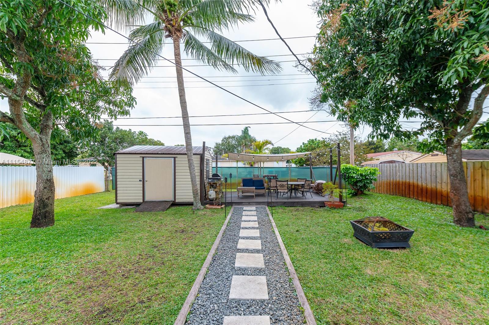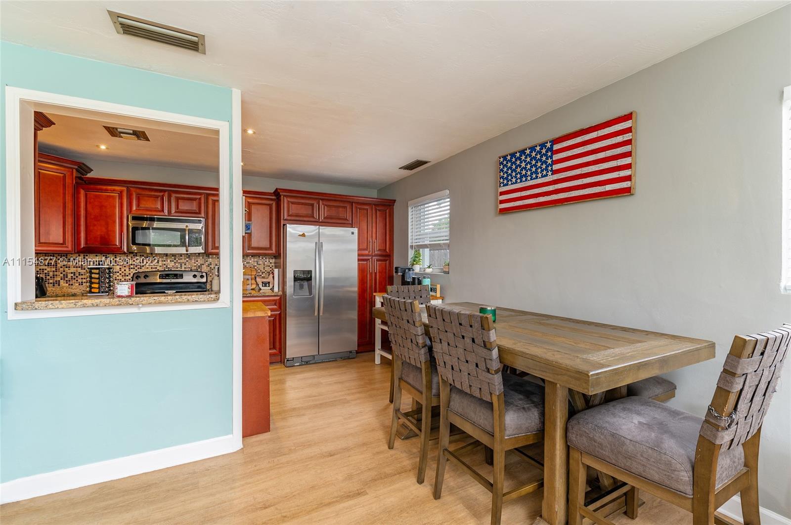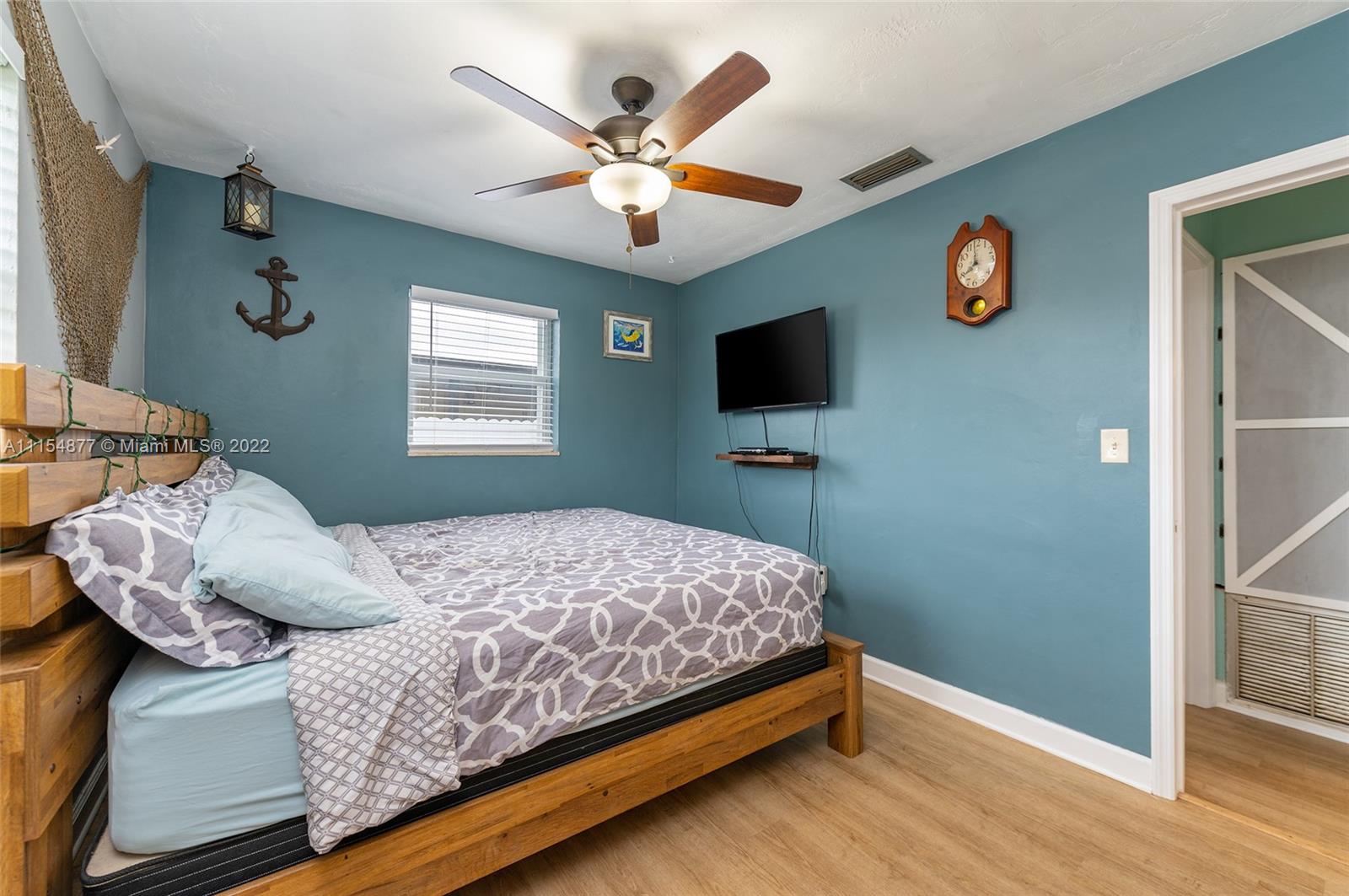 Beautiful 3/1 converted to a 2/1 to create a larger living room space/family area. New closet doors in bedrooms. Roof is 1 year old, accordion shutters throughout home and AC is 2 years old. Kitchen includes granite countertops with mosaic tile backsplash and stainless-steel appliances. Bathroom just remodeled this year, with brand new tile shower. Home was freshly painted 3 years ago, laminate flooring throughout. Large fenced in backyard with enough room to park vehicle or boat on either side. Stone walkway leading to large deck perfect for outdoor seating and BBQ. Full size washer/dryer in laundry room. This home also features security camera surveillance system for the next buyer.
