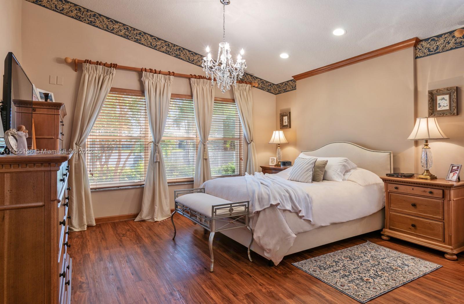 Your Future Home Awaits! Breathtaking views of lake welcome you as you step into this beautiful turn key home in the desirable Encantada community. Immaculate 4-bed/2-bath split floor plan features paved driveway & walkway leading to front door. High ceilings & wood moldings create an elegant & warm feel. Master with relaxing view of lake/garden/patio; 2 walk-in closets, new engineered hardwood floors, bath with walk-in shower, tub & double sinks. Kitchen w/granite, newer appliances, island, see-through cabinets & pantry. Sliding doors lead to gorgeous backyard with 1,000 sqft of beautiful pavers, garden, & waterfront creating an oasis perfect for relaxing & entertaining. Newer washer/dryer, storage, utility sink. Garage with storage space. Accordion shutters. Central vacuum, Carrier A/C.