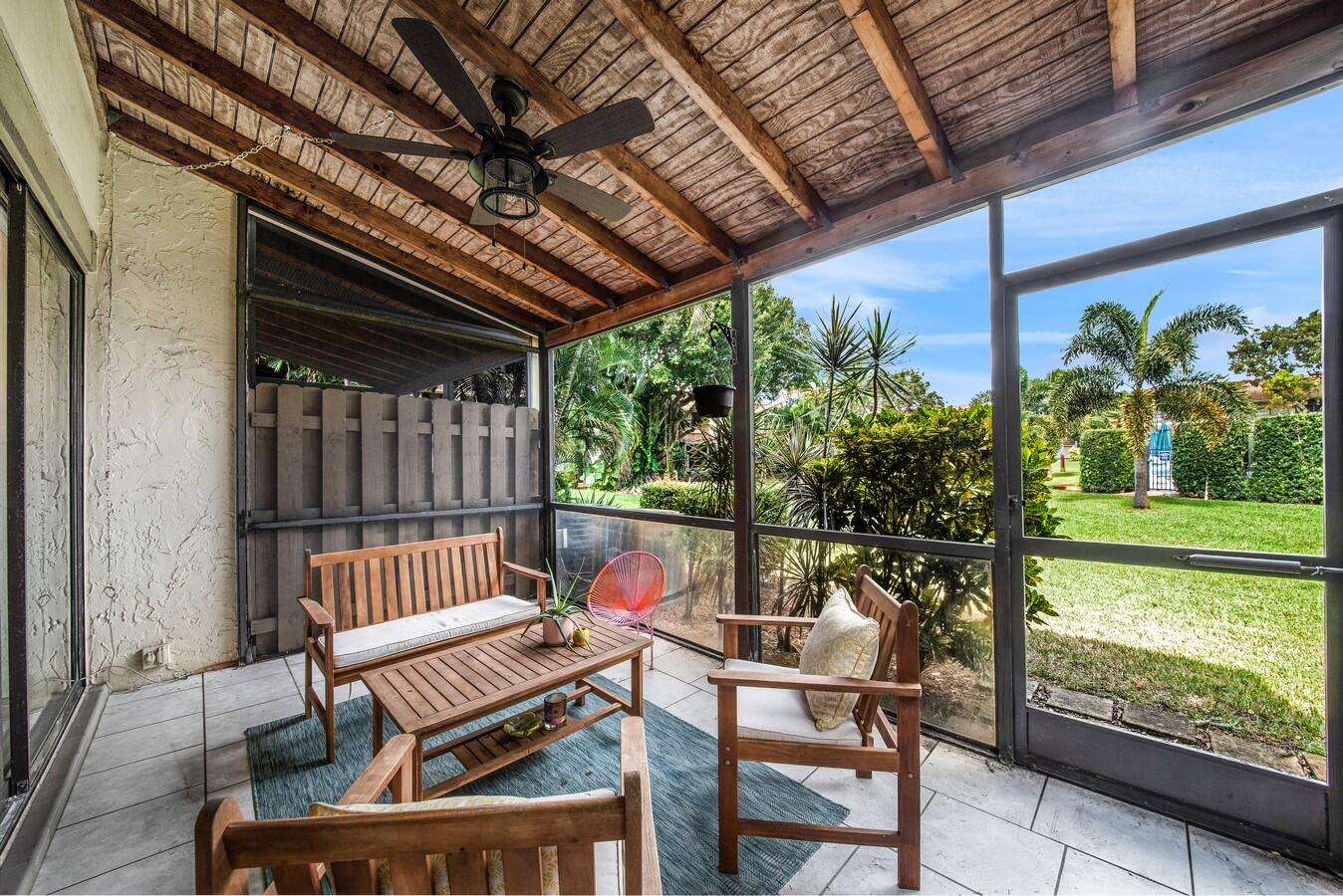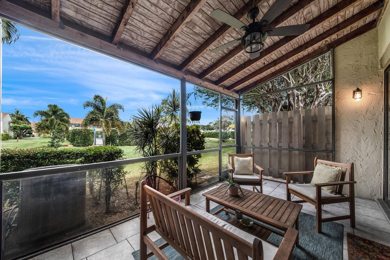 This magnificent townhome features a spacious open floor-plan for today's busy lifestyles. This home offers plenty of space for entertaining with a living room, dining area and a screened enclosed patio. The luxurious master suite boasts a walk in closet, vaulted ceiling and a walk in shower. The 2nd bedroom features a vaulted ceiling, his and hers closets and an en-suite bath. Enjoy your own tropical paradise on the screen enclosed patio that overlooks the yard. Neutral flooring, a spacious floor-plan, a long driveway and close location to the community pool are just a few highlights of this home. Boca Pinar provides first class amenities that include a resort style pool and spa. Located close to shopping, dining, entertainment, ''A'' rated schools, major highways and airports.