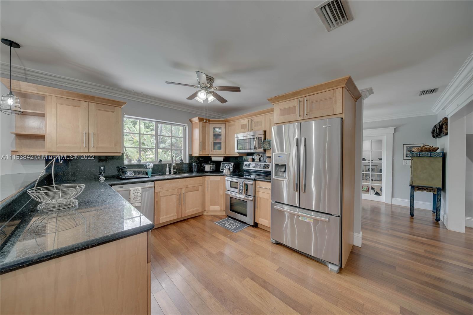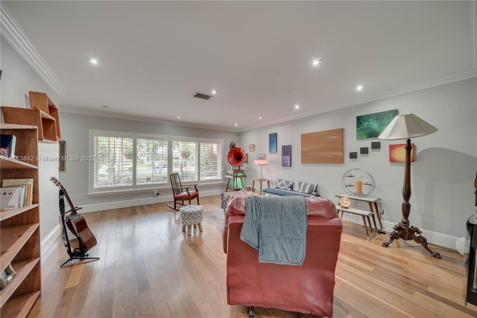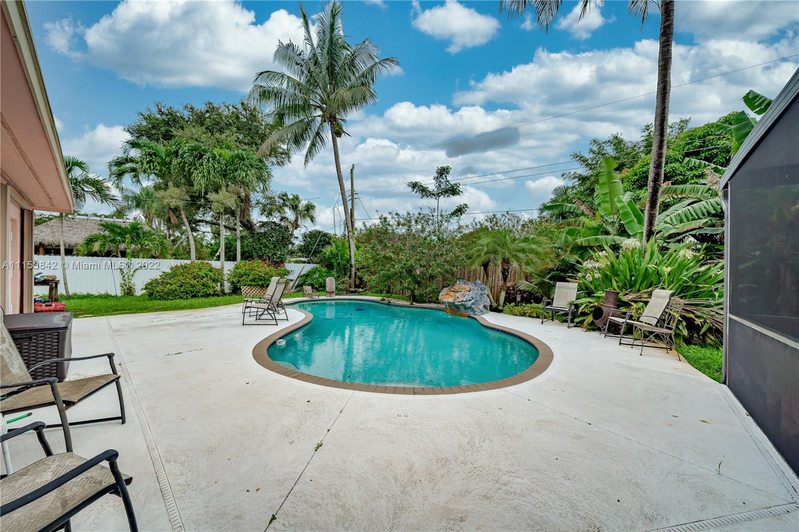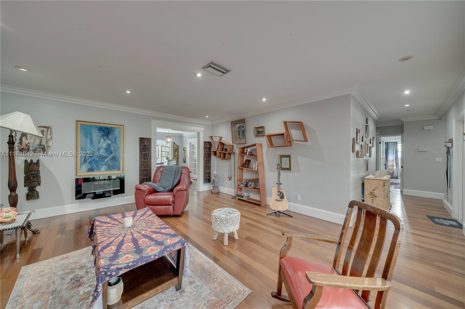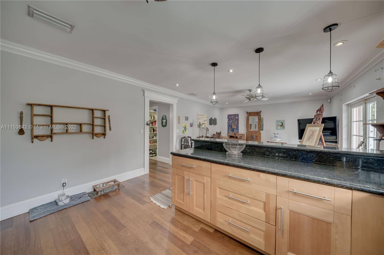 Beautiful 3 bed 2.5 bath pool home in Plantation Park!! BRAND NEW Flat roof just permitted/installed in 2022!! Stunning Brazilian Brown/Cherry Hardwood flooring. Ornate crown molding, casing & deep baseboards throughout the home. Plantation shutters across front of the home. Renovated kitchen features wood cabinetry, granite counters & stainless steel appliances. Oversized bonus room w/ travertine marble floors. Large fenced in lot w/ coconut palms, banana, jacaranda flower, moringa & papaya trees. Pool has a waterfall. Screened in patio area. Walking distance to elementary school & parks. Centrally located, minutes to 595, Ft Lauderdale Int Airport, Las Olas, Beaches, & more. Updated windows/french doors. Accordion shutters, tankless water heater. 2013 AC. Murray Elect Panel. No HOA!