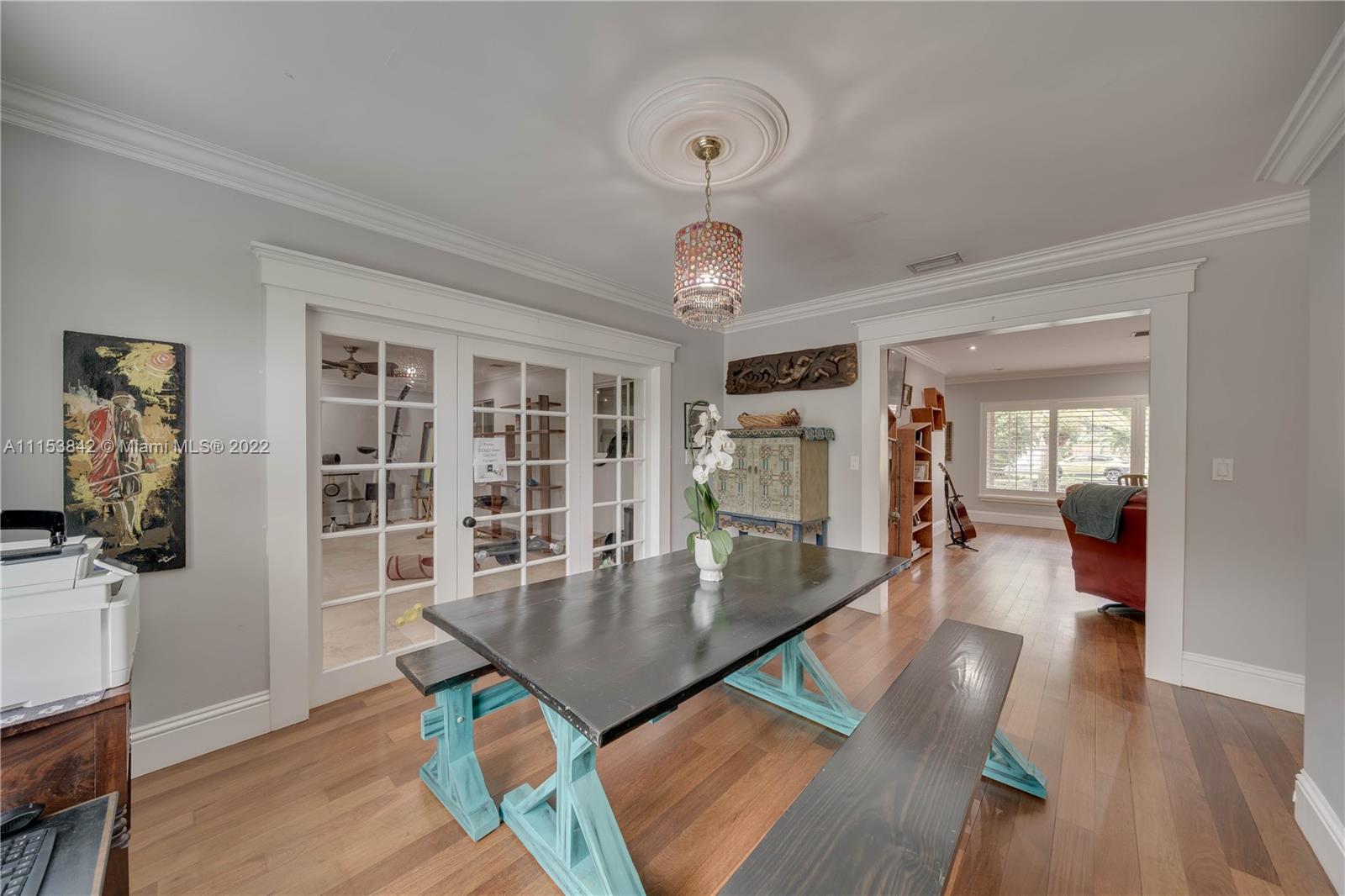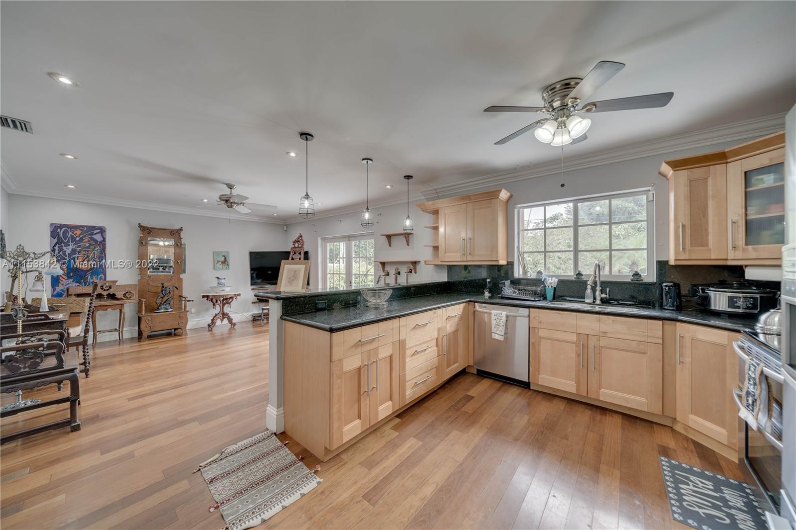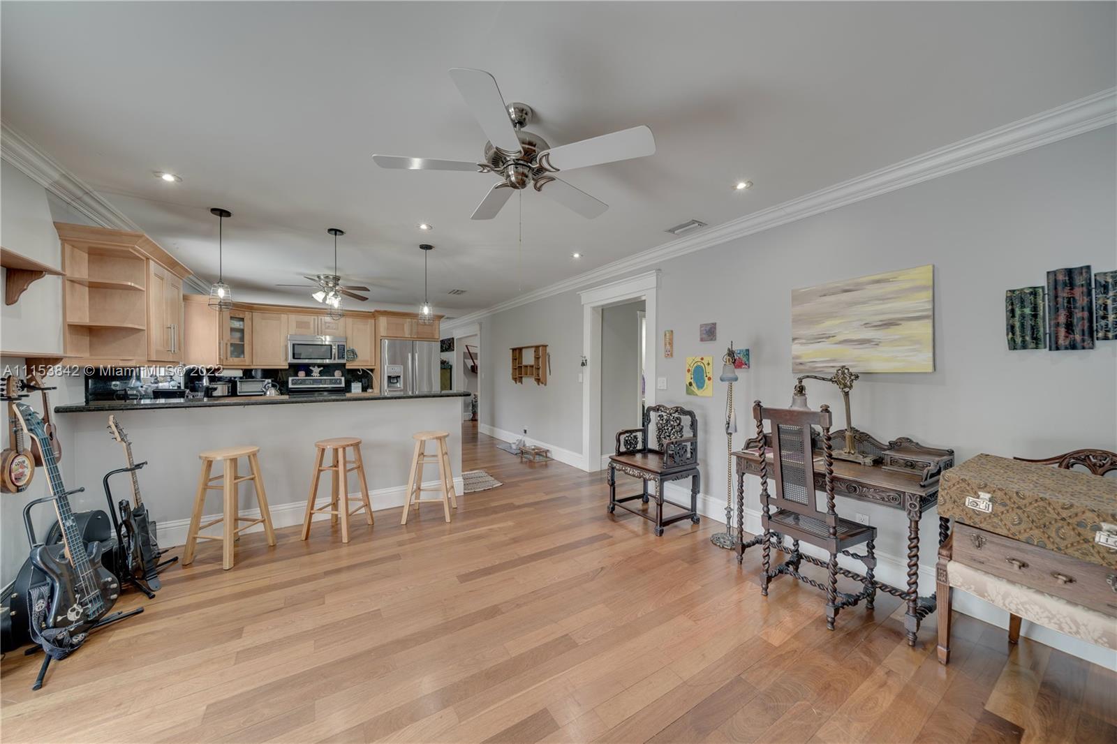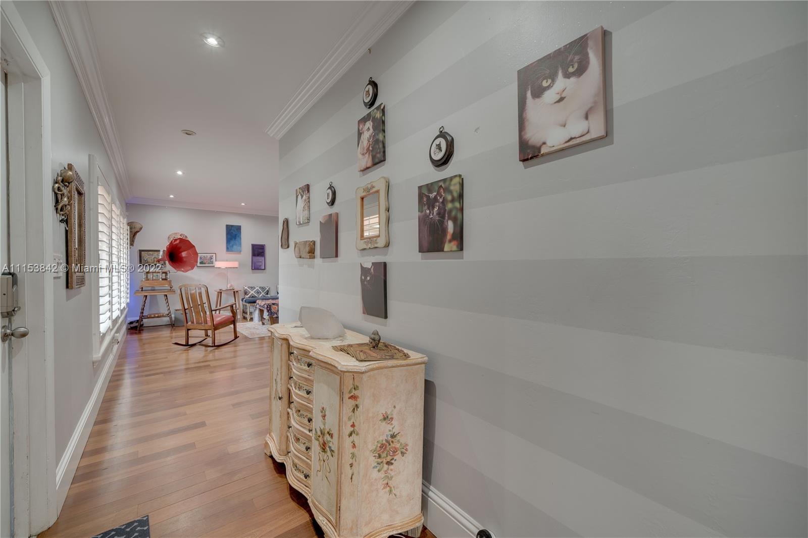 Beautiful 3 bed 2.5 bath pool home in Plantation Park!! BRAND NEW Flat roof just permitted/installed in 2022!! Stunning Brazilian Brown/Cherry Hardwood flooring. Ornate crown molding, casing & deep baseboards throughout the home. Plantation shutters across front of the home. Renovated kitchen features wood cabinetry, granite counters & stainless steel appliances. Oversized bonus room w/ travertine marble floors. Large fenced in lot w/ coconut palms, banana, jacaranda flower, moringa & papaya trees. Pool has a waterfall. Screened in patio area. Walking distance to elementary school & parks. Centrally located, minutes to 595, Ft Lauderdale Int Airport, Las Olas, Beaches, & more. Updated windows/french doors. Accordion shutters, tankless water heater. 2013 AC. Murray Elect Panel. No HOA!