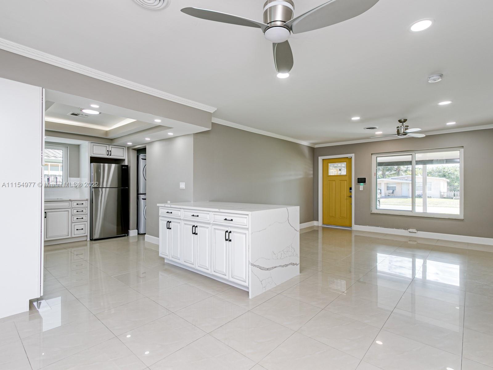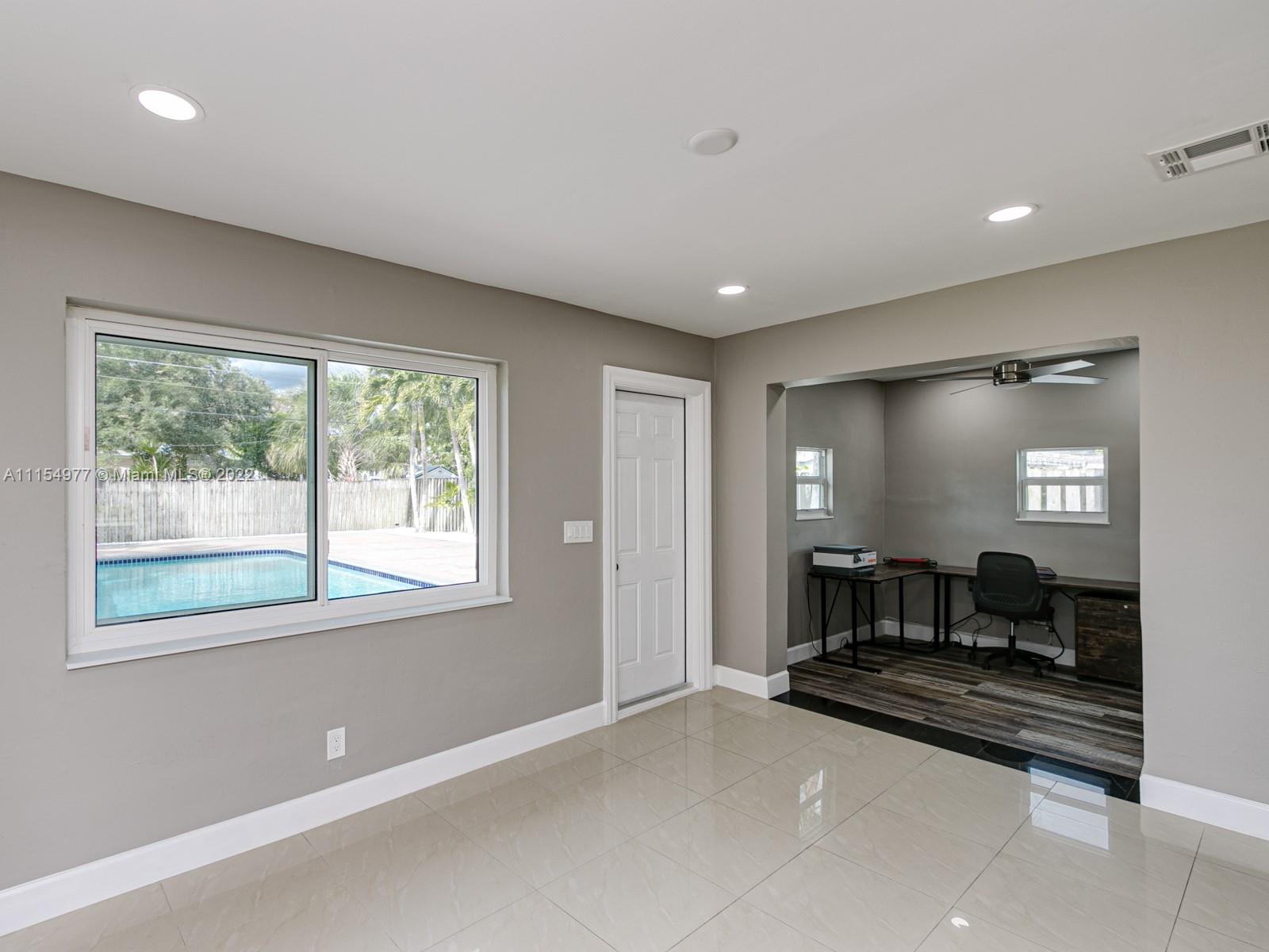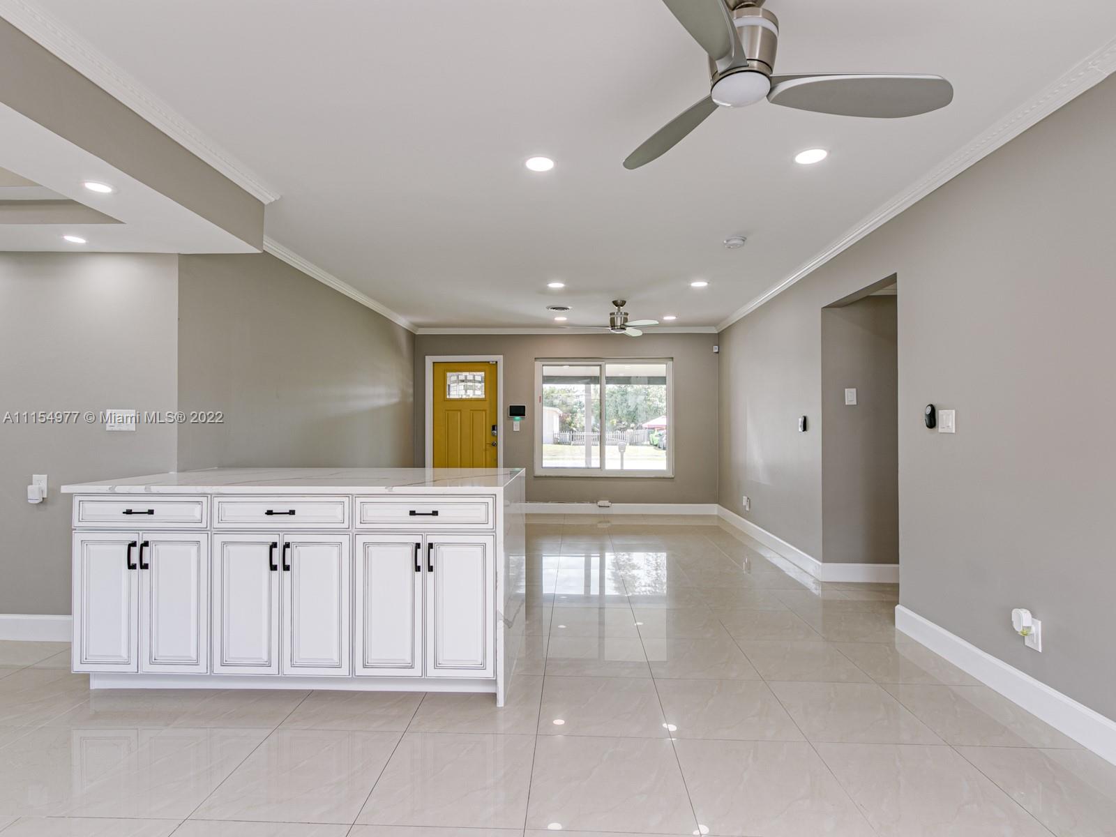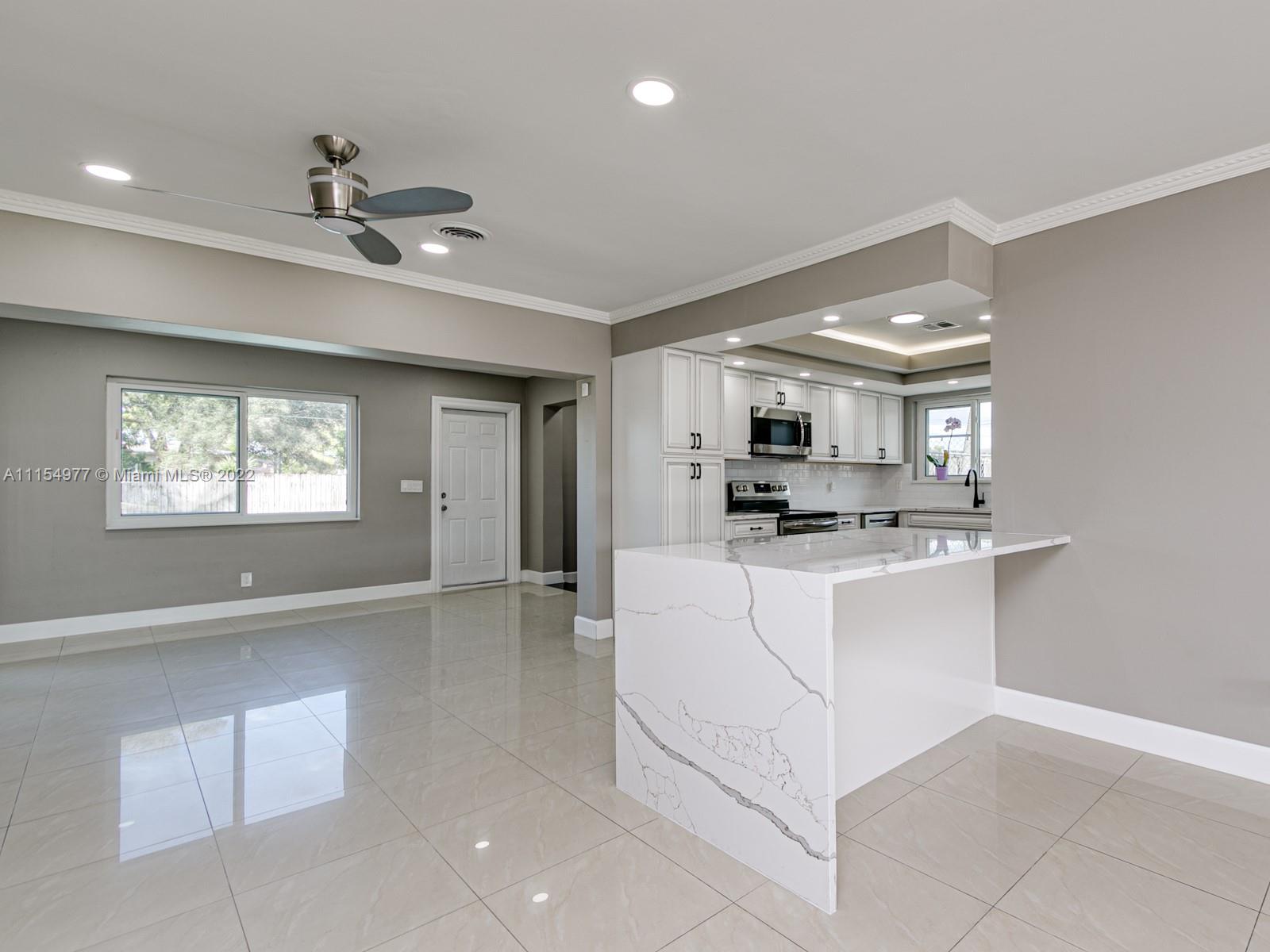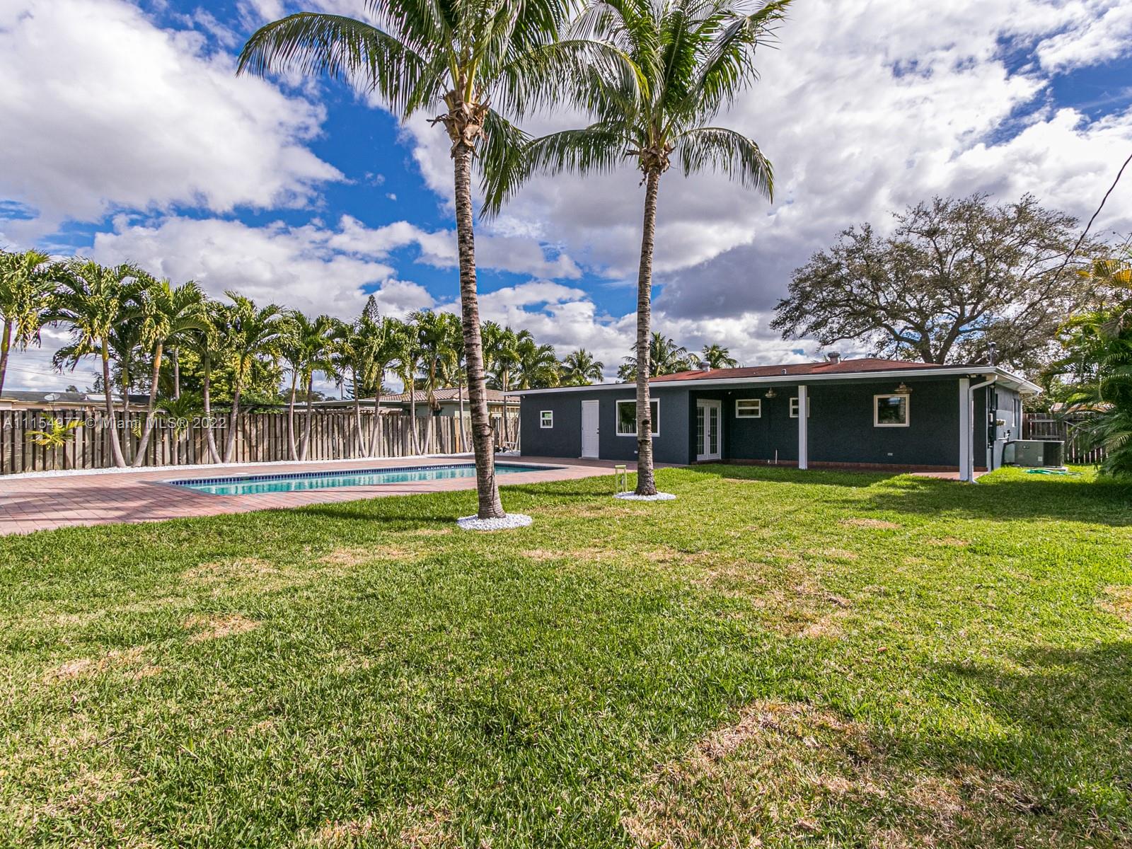 Wow! What a transformation on this Beautiful 4 Bed/2 Bath home w/ pool and large backyard. This home has a great open floor plan and meticulously updated with the most gorgeous finishes beginning with the top of the line kitchen cabinets and quartz counter tops with waterfall edge as well as new S/S appliances. New high end vinyl flooring, and bathroom updates as well. Hurricane windows and doors throughout property. New resurfaced pool and new deck as well! All new recessed lighting in home along with brand new electrical panel and rewiring. New tankless water heater, new washer/dryer. Security system with cameras surround the property, smart home. Home features a second entrance for MIL quarters or a future tenant. Move in Ready! The work has been done, just bring your furniture.