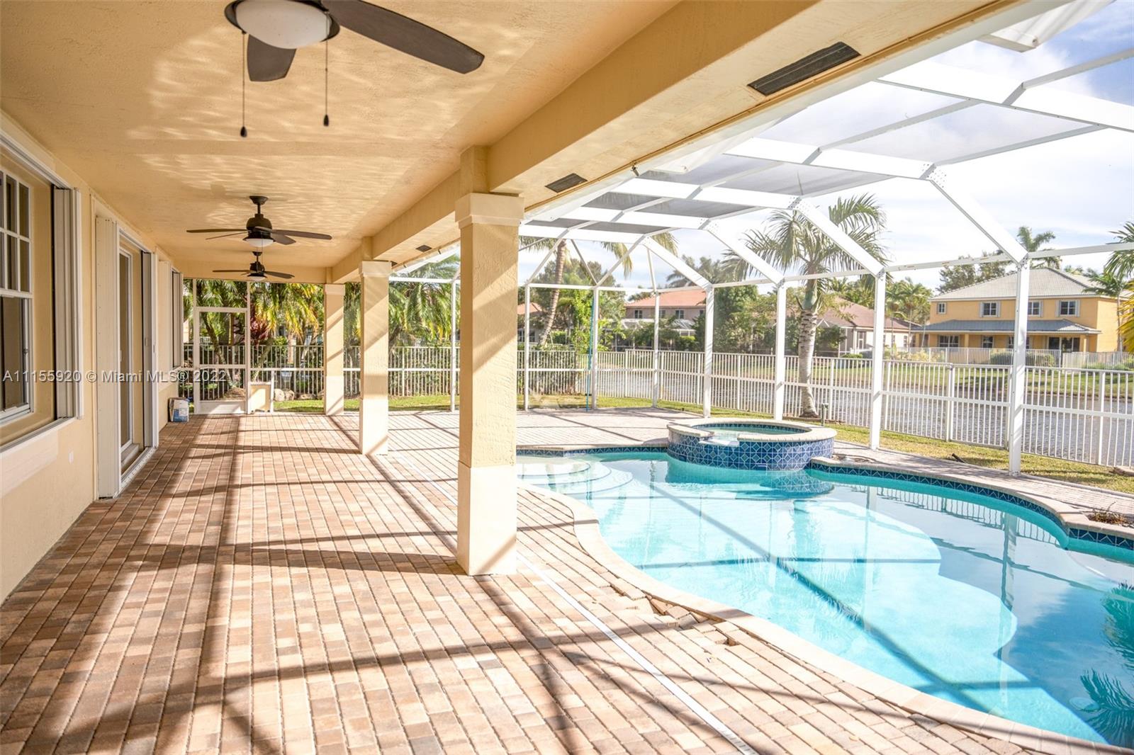 This fantastic 6 bedroom 4 bathroom home is located in the highly sought after city of Weston, FL in the Savanna Community. A beautifully remodeled home awaits you with a spacious floor plan giving you endless options to make it yours! As an added bonus, the home has a large backyard with a screened in pool, and is a waterfront property giving you stunning lake views. (Spec Sheet): Stainless Steel Appliances - Two AC Units - Upgraded Kitchen - Large Utility/Laundry Room - Waterfront Views - Oversized Master with Seating Area - Screened In Pool - Accordion Shutters