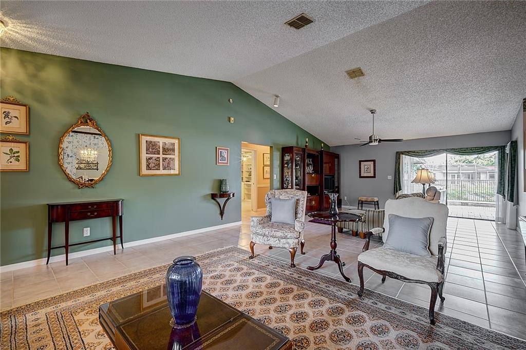 Elegant single family three-bedroom, two-bathroom pool home with den in the highly desirable Boca Raton Square. Feel your spirit rise in this charming ranch with soaring vaulted ceilings & spacious rooms. Open Living & kitchen design complete with a formal dining area, tile throughout. Wake up & enjoy coffee on your covered front porch, screened back patio or in front of the bay window. Entertain guests in your expansive backyard, complete with metal fence, stone pavers and large pool on a serene canal. Master bedroom boasts an impressive bathroom, with double vanity, and incredible walk in closet. Metal roof, accordion shutters, generator and plenty of space in the oversized garage. Incredibly well maintained quality home in an exceptional east side neighborhood. Make this one you own!