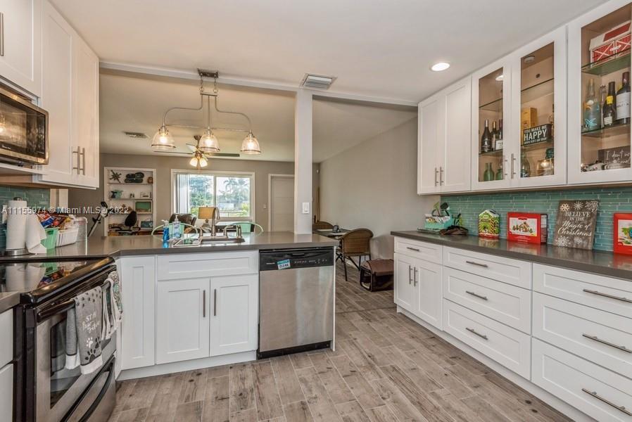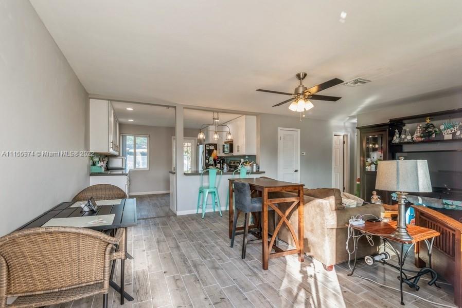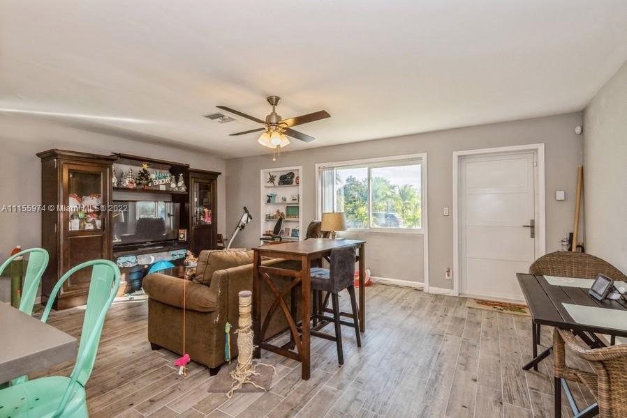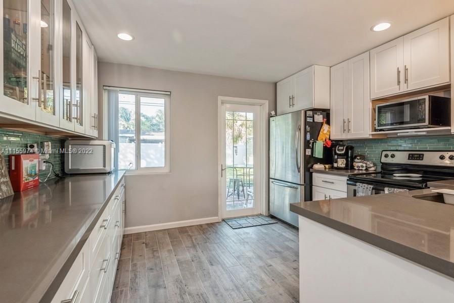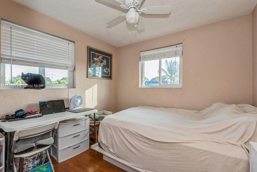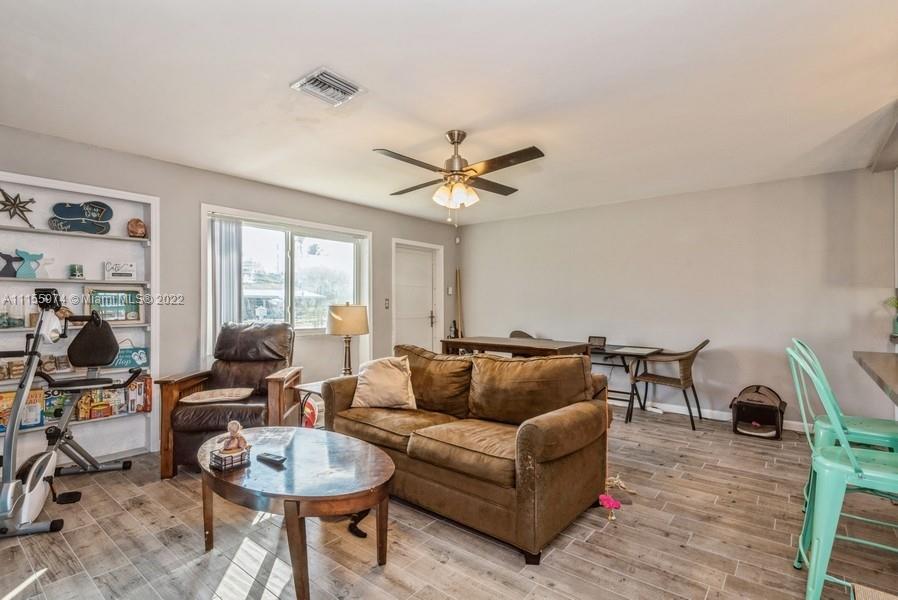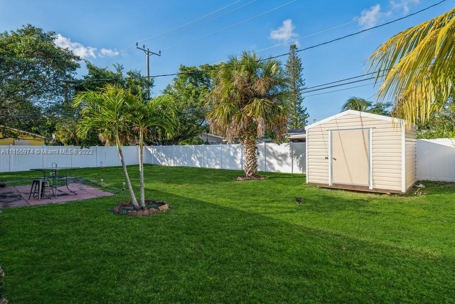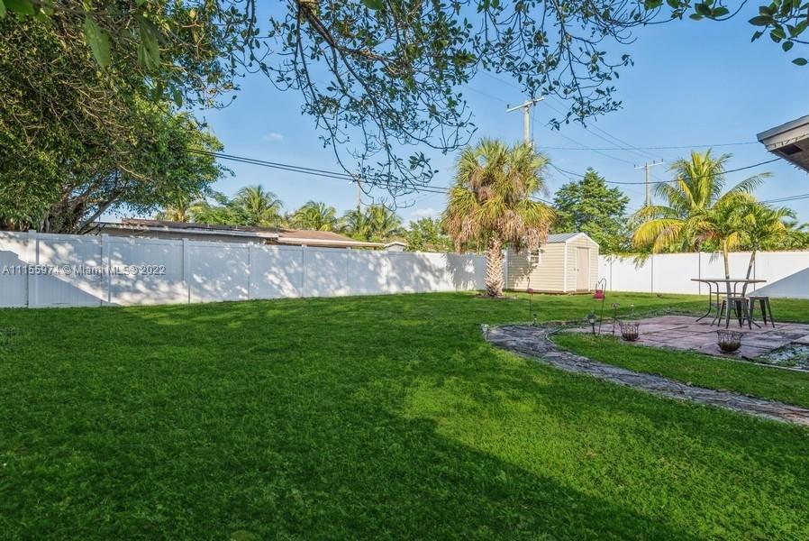 This 3 bedroom, 2 bathroom home will give you generous space to make all your own. Feel instantly welcome when you enter the lovingly well-kept living room. Look forward to meals in the quaint dining area after lingering in the pristine and stylish kitchen. Each bedroom is roomy, featuring premium flooring. Head outside during the summer and you can relax on the patio or have your pets run around throughout the broad fenced yard, this beautiful yard is the largest in the area and perfect for entertaining. A perfect blend of efficiency and charm, this gem won’t last long. Master Bedroom has potential to be efficiency***Updates include: Remodeled kitchen & redone wiring 2021, and hurricane impact doors/windows, new roof 2016, new fence, shed, water heater, washer, and dryer in 2021***