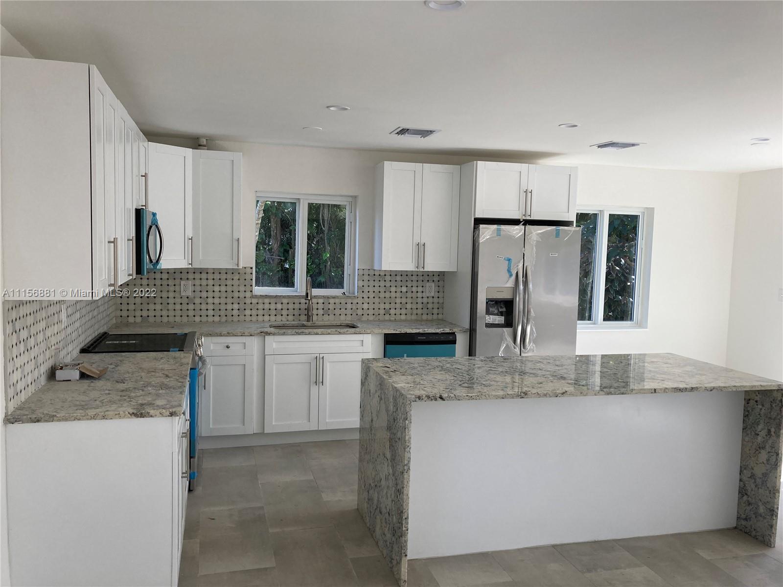 Freshly renovated home with large enclosed porch. New roof, impact windows and doors, AC, updated electrical, open style kitchen and island with granite countertops w/s/s appliances, tankless water heater, bathrooms and tiled floor throughout the house. Separate laundry room with new washer/dryer included. Quiet neighborhood a couple of miles from the beach and Las Olas Blvd. Minutes from NE 13th St and Wilton Manors.