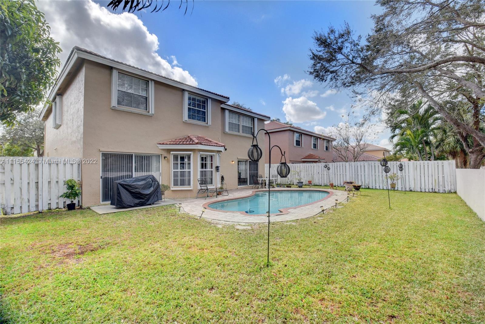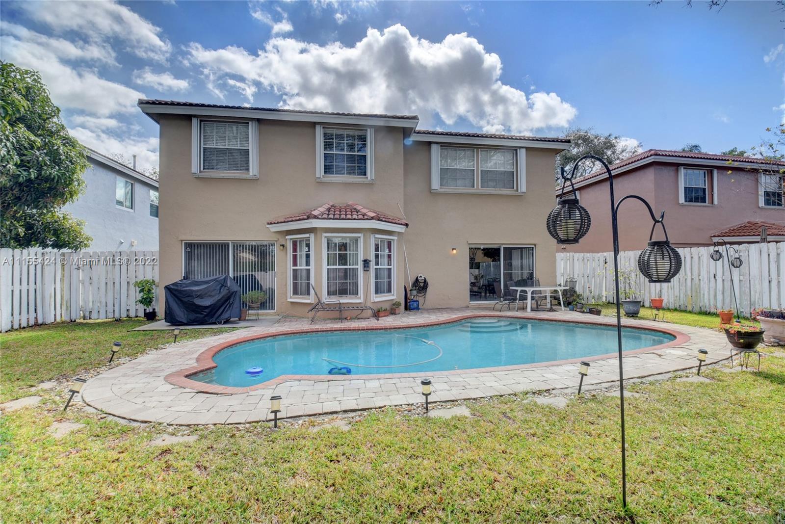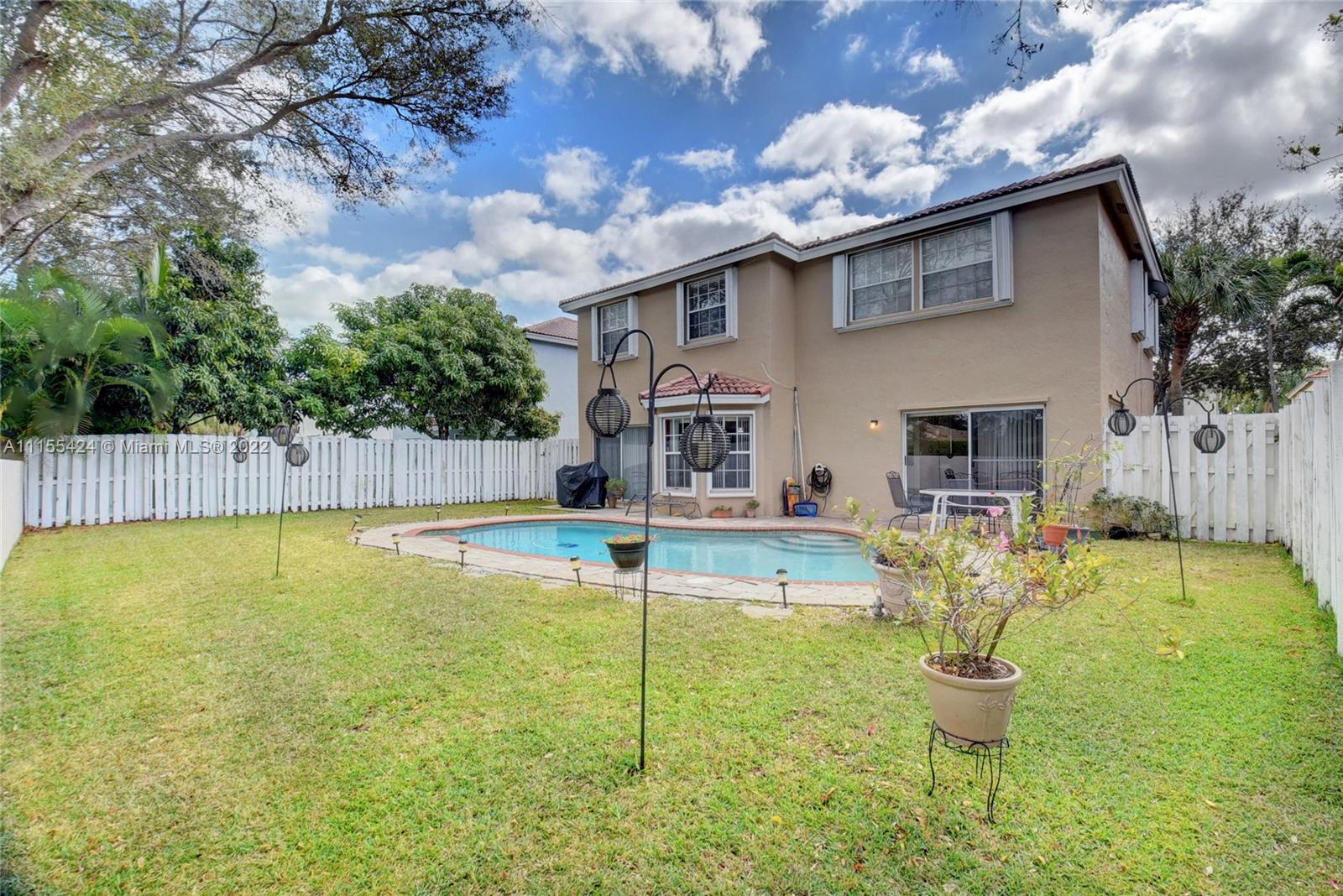 Look no further! Enjoy this beautiful two story pool home from the minute you lay eyes on it. Situated in the highly desirable community of Sawgrass Plantation. Drive up to your pavered driveway with a two car garage. Exterior has recently been painted. Accordian shutters on 2nd level and hurricane panels on the 1st. You will want to entertain your friends and family with all the space. The interior 1st floor boasts two separate living areas with eat in kitchen and formal dining room. All SS appliances, no carpet, and tons of light. Great views out to the pool. Large master bedroom with 2 walk in closets. Updated master bath. All new flooring upstairs. AC 5 yrs old. Pet friendly community and low HOA! Close to Flamingo Park, Sawgrass Mall and Highways.