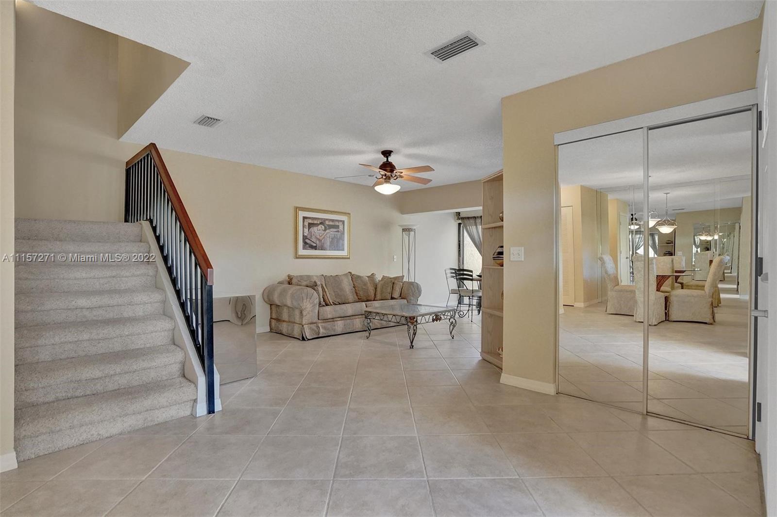 New on market, two-story townhome with large front and back private patios, spacious in-door living space is located in popular guard-gated Mariner Village on the Aventura Waterways marina. The kitchen has stainless steel appliances, modern lighting, granite countertops and opens to front patio. Larger than tax rolls living room per owner opens to large back patio. Flooring is tile downstairs, carpet upstairs. Spacious main bedroom has high ceilings, walk-in closet. Second bedroom upstairs has its own full bath. Guest bath downstairs. Washer/dryer downstairs. High speed Internet, cable with DVR, premium movie channels, and water all included. Walk to dining, parks, shops, houses of worship. Near Aventura Mall, Gulfstream Park. A-rated schools. Pet welcome. Dog park nearby. Okay to lease.