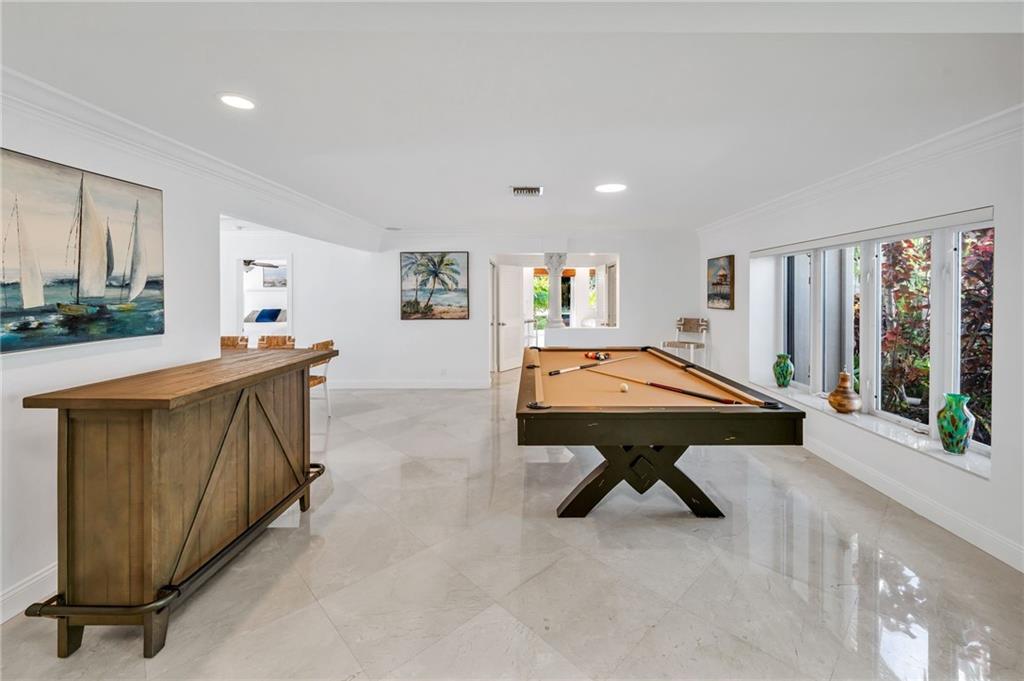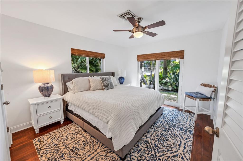 Spectacular, Lush, One of a Kind Waterfront Estate property w/ Tropical expansive decks surrounding Pool and poolside Tiki Hut, short walk to beautiful Beaches, Restaurants and LBTS Town Square. Contemporary style w/ 4 lg bedrooms /3 lovely baths, triple split plan. 2 amazing Master Suites: #1 = 1000sqft w/ 2 huge California walk-ins / Royal Master Bath, #2 = Large, en-suite w/ Pool view. Polished Marble and Wood Floors throughout the home. Stylish Kitchen w/ panoramic property views, open to Spacious Family Room. Whole house Generac w/warranty. Impact Windows / Doors, Custom Front Door, Garage impact door, new Level 2 Charging Station. Point lot, 240 ft of waterfront, 55 ft dock w/ electric & water, a Boater's Dream! Located on a cul-de-sac in The Landings, ULTIMATE Privacy, A RARE FIND!